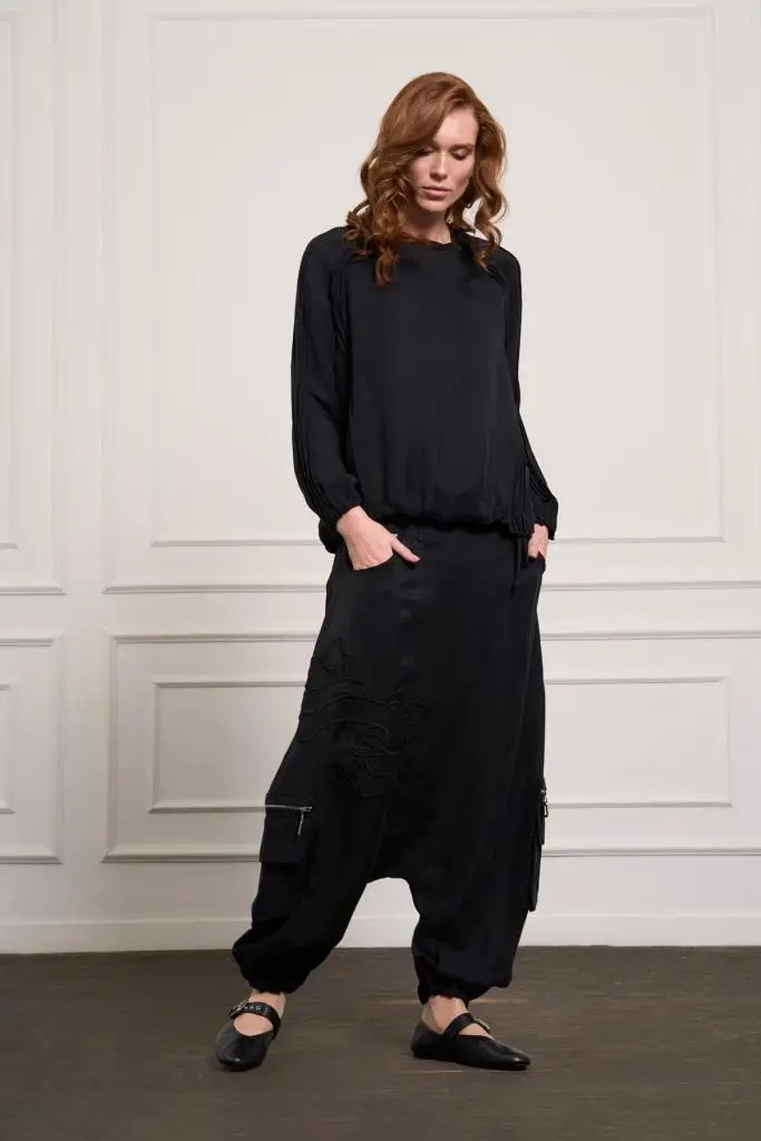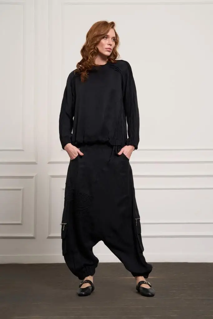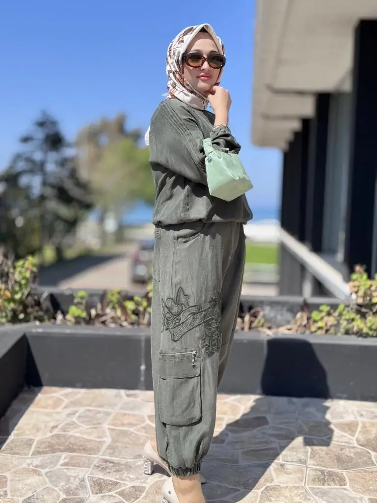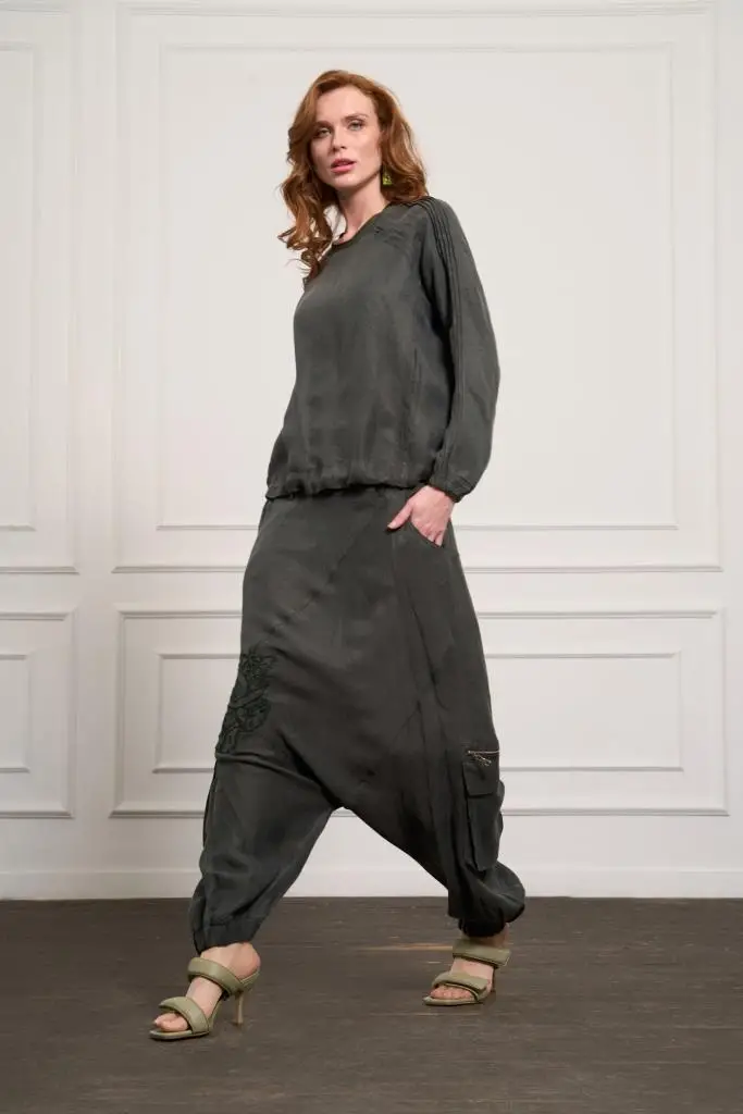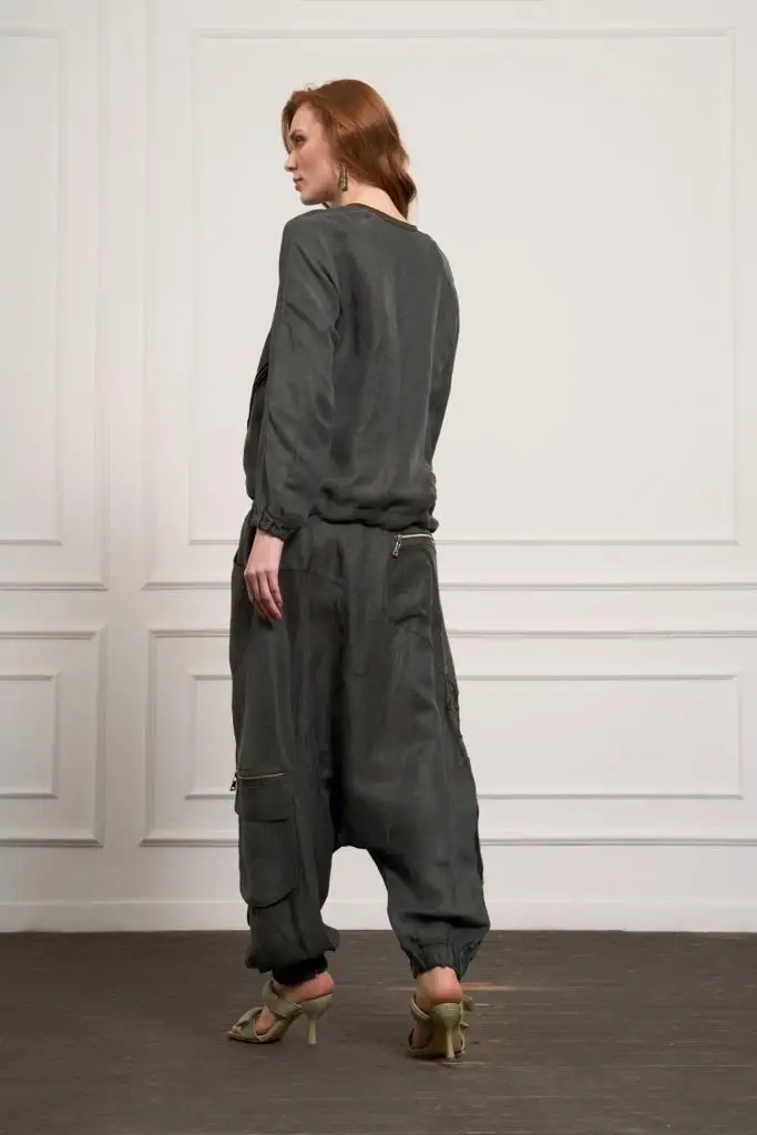 Misswhence İpek Keten Bluz Şalvar Etek Takım 37002