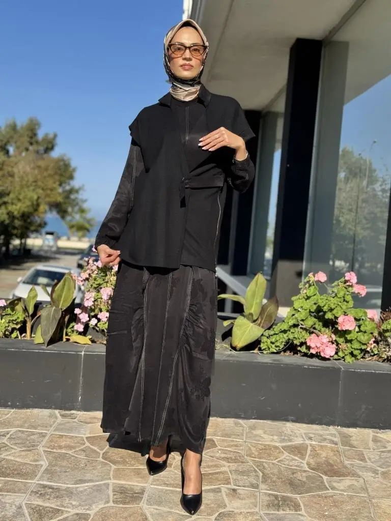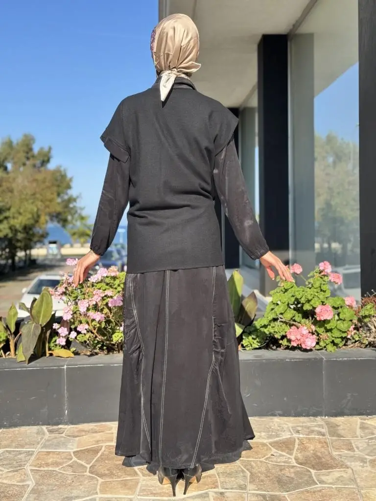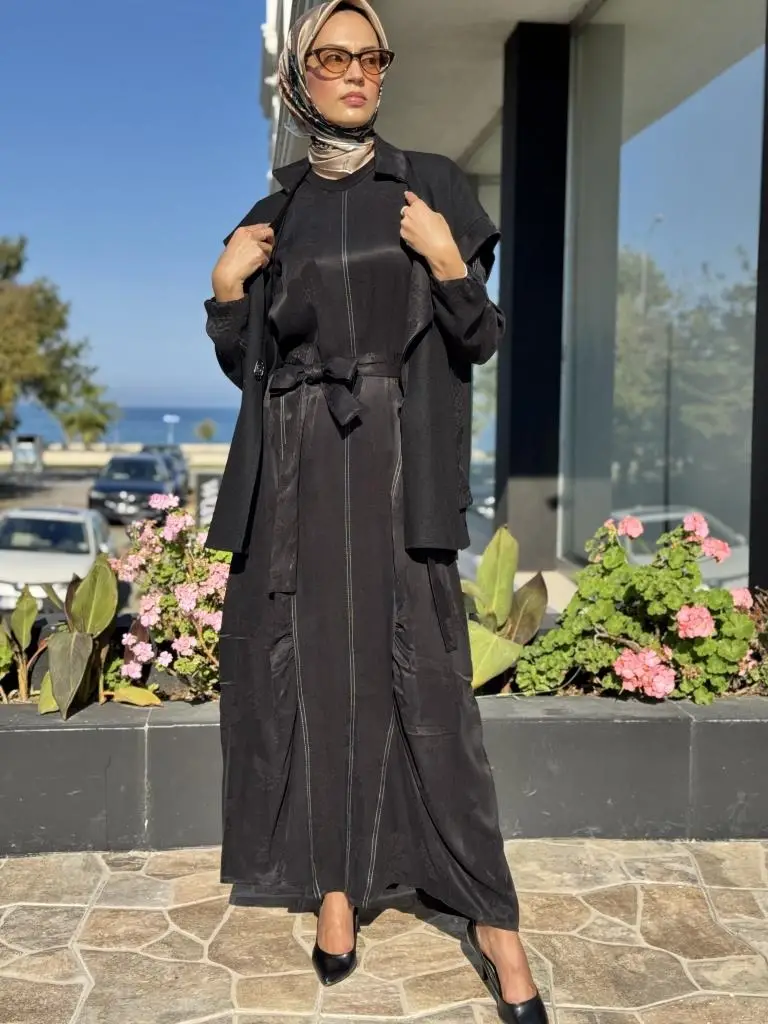 Misswhence Keçe Yelekli Cupra İpek Elbise 36819