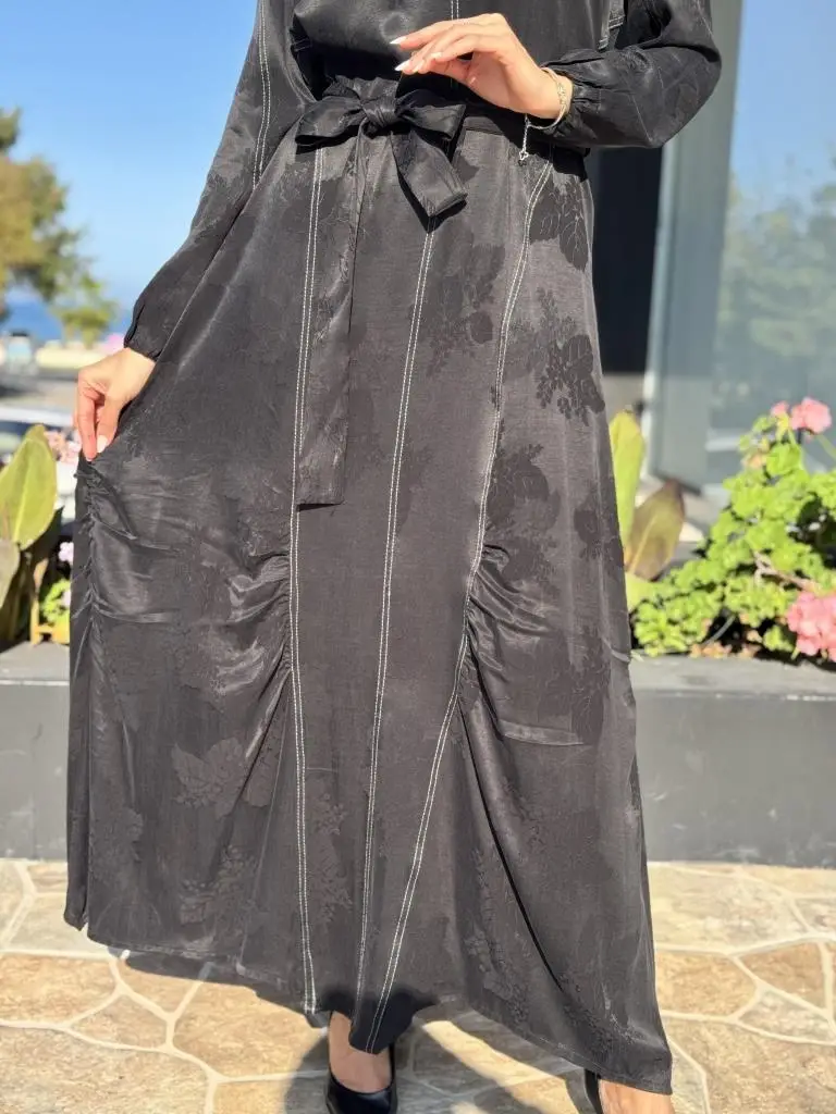 KOLU LASTİKLİ VE BELİ KUŞAKLIDIR