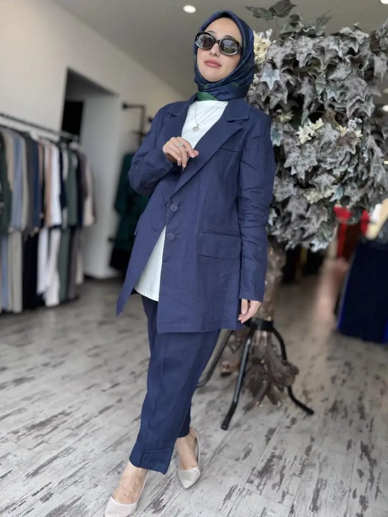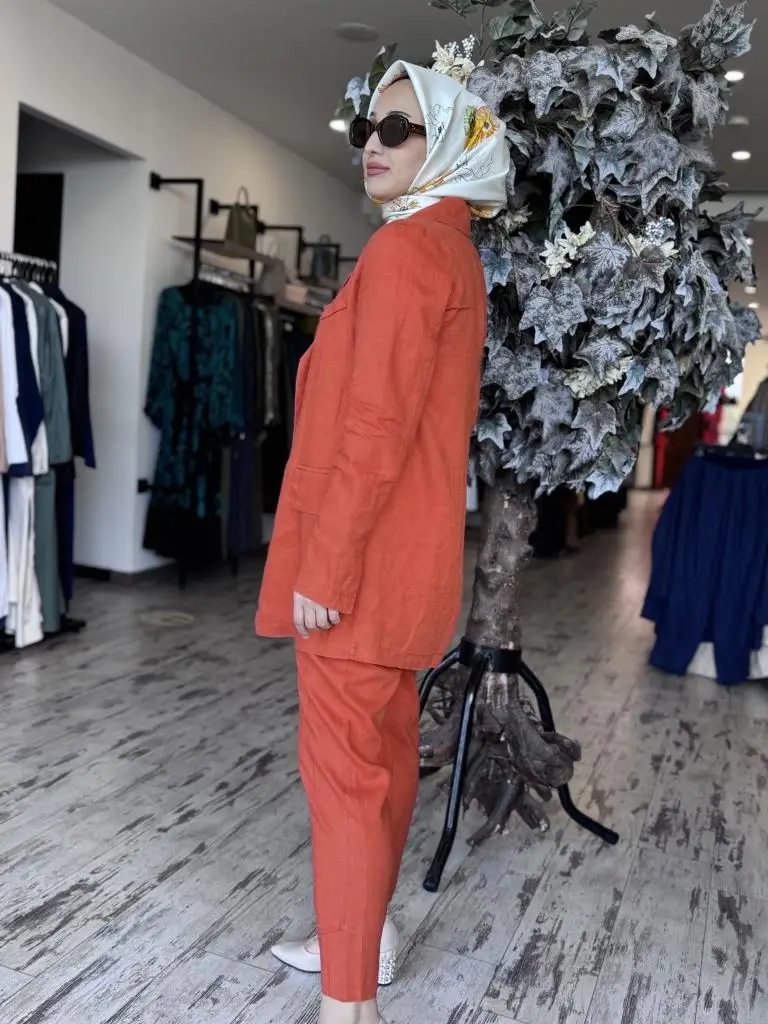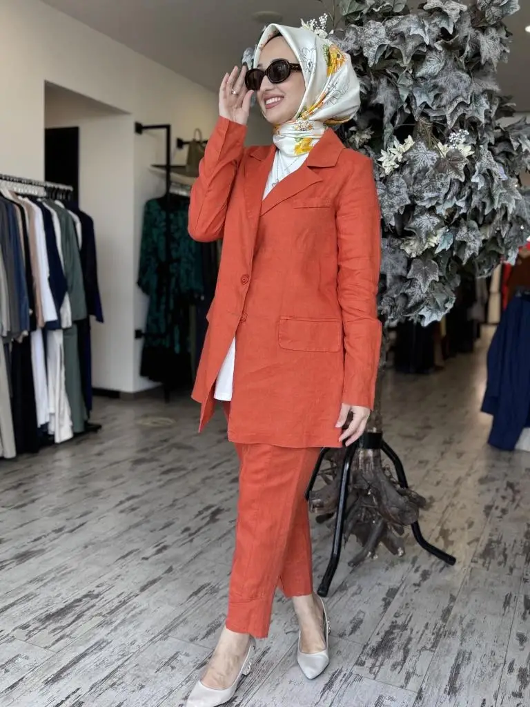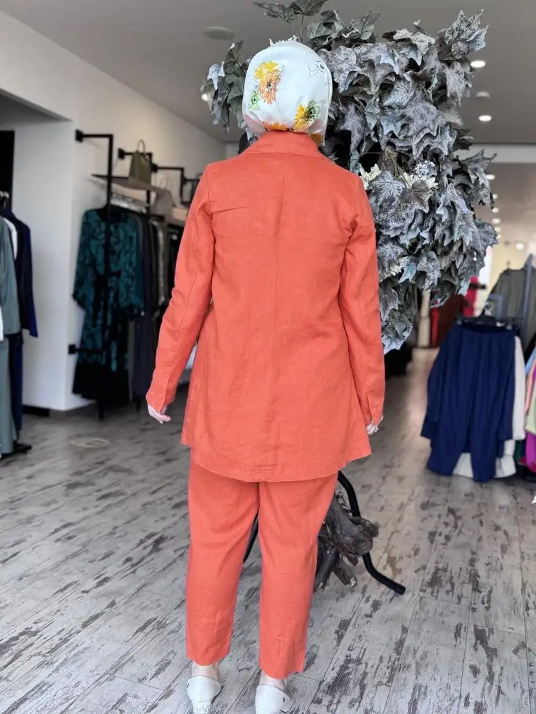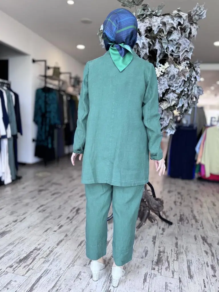 Misswhence Keten Kruvaze Ceket Pantolon Takım 37207