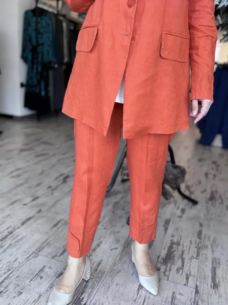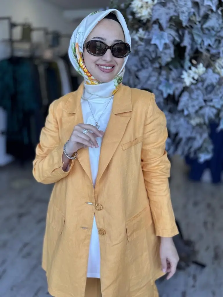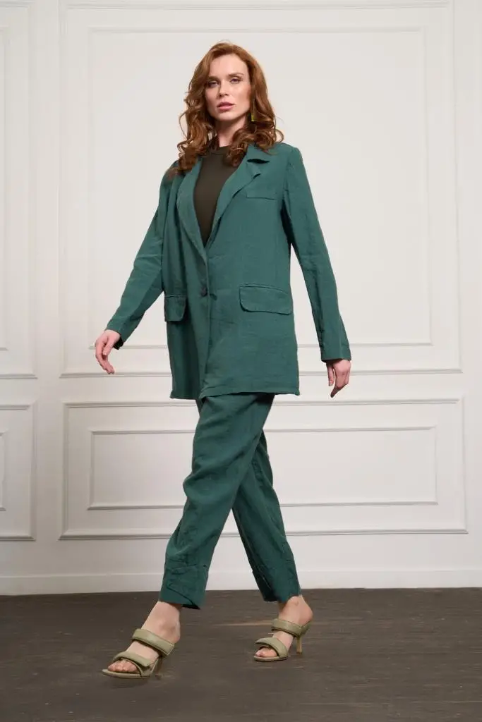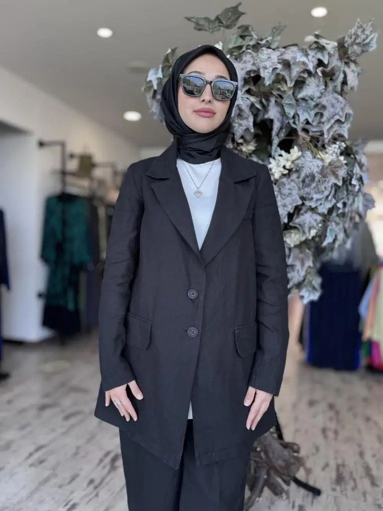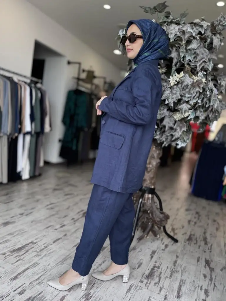 Misswhence Keten Kruvaze Ceket Pantolon Takım 37207