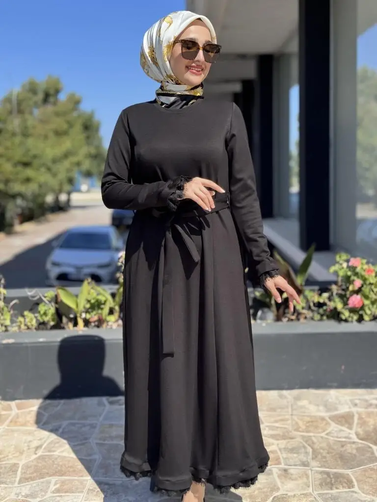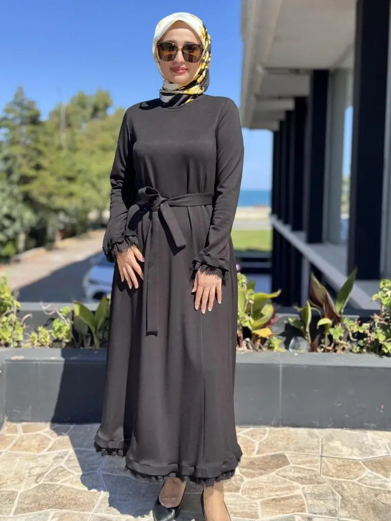 Misswhence Kol ve Etek Ucu Dantelli Elbise 38823