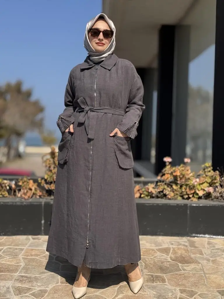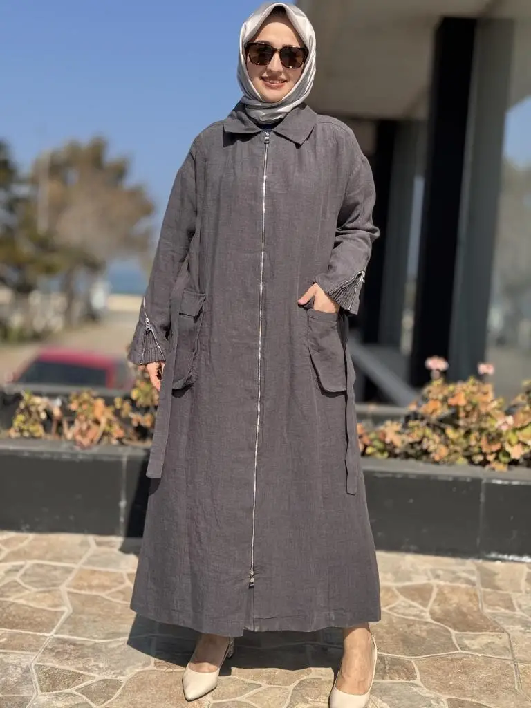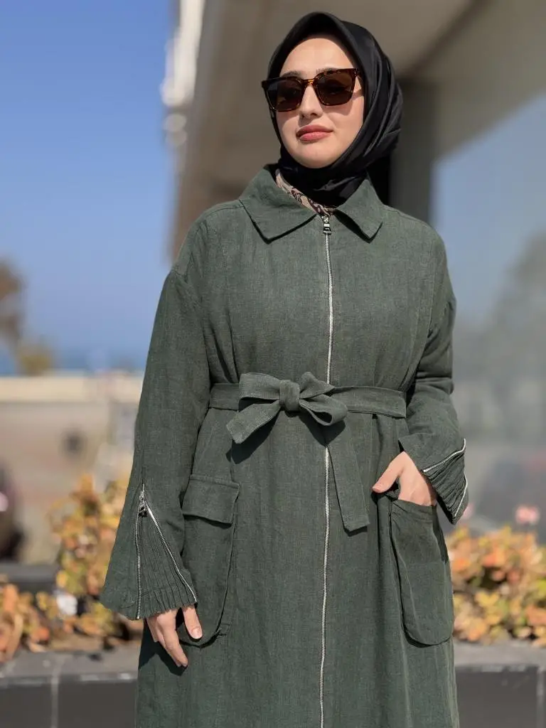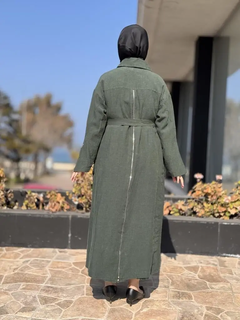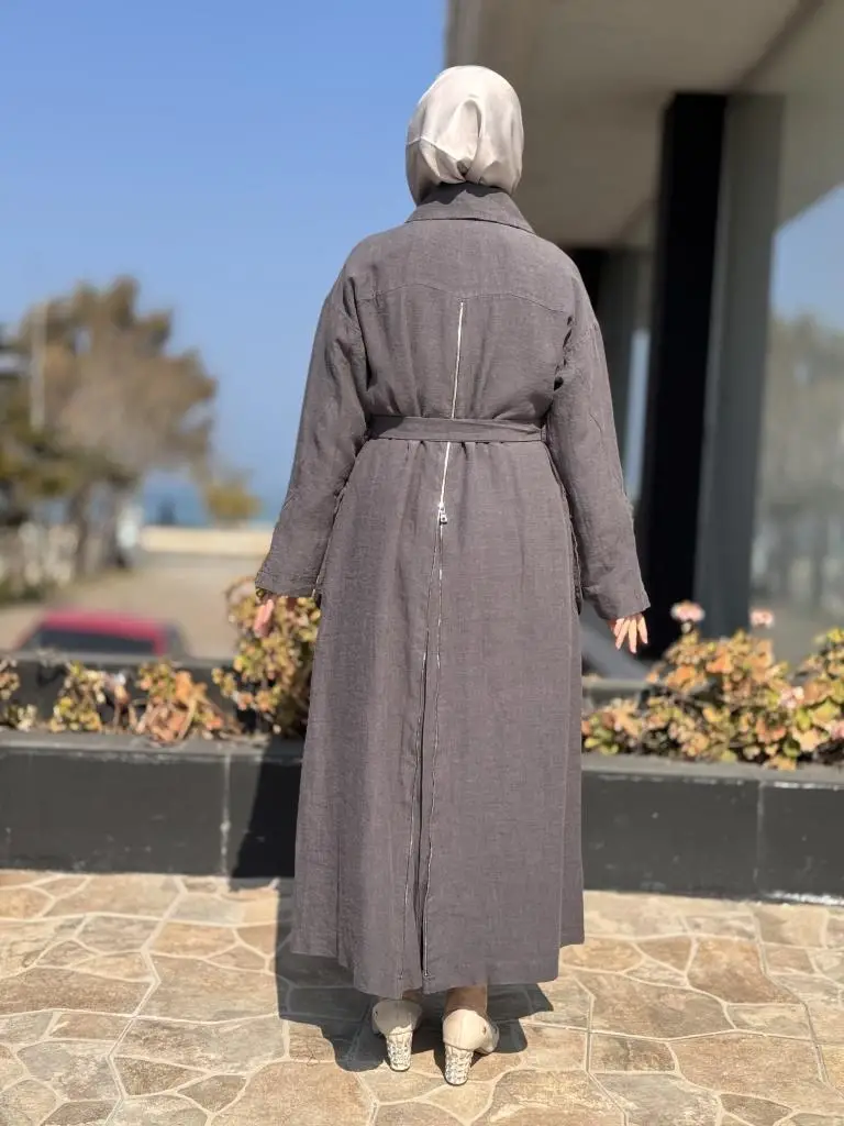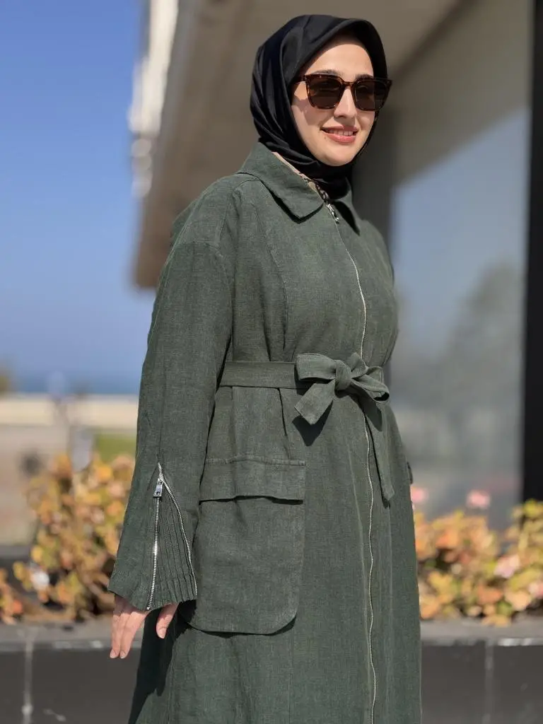Misswhence Ön ve Arkası Fermuarlı Torba Cepli Keten Pardesü 37509