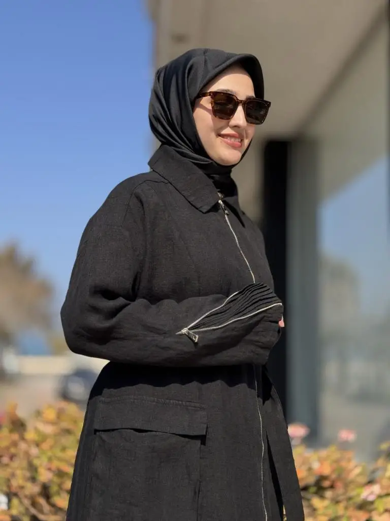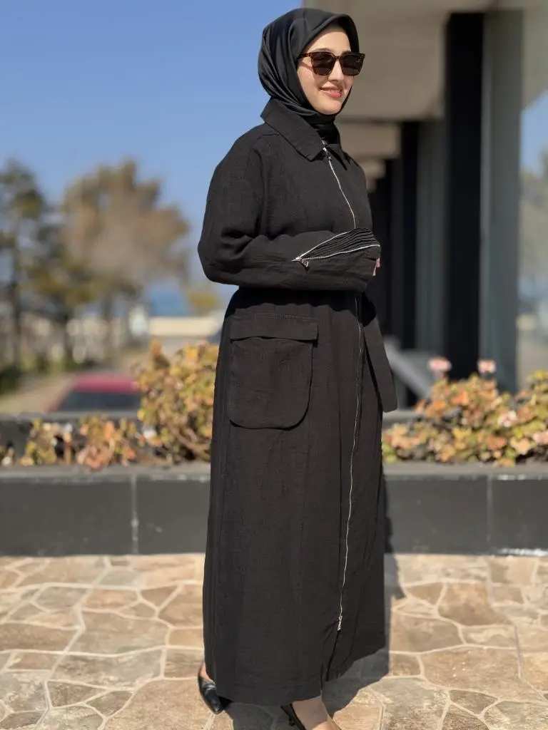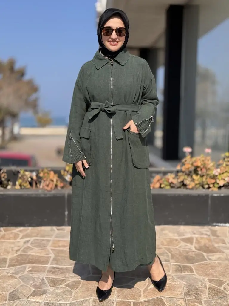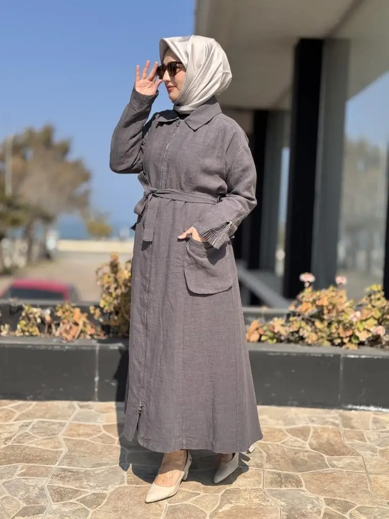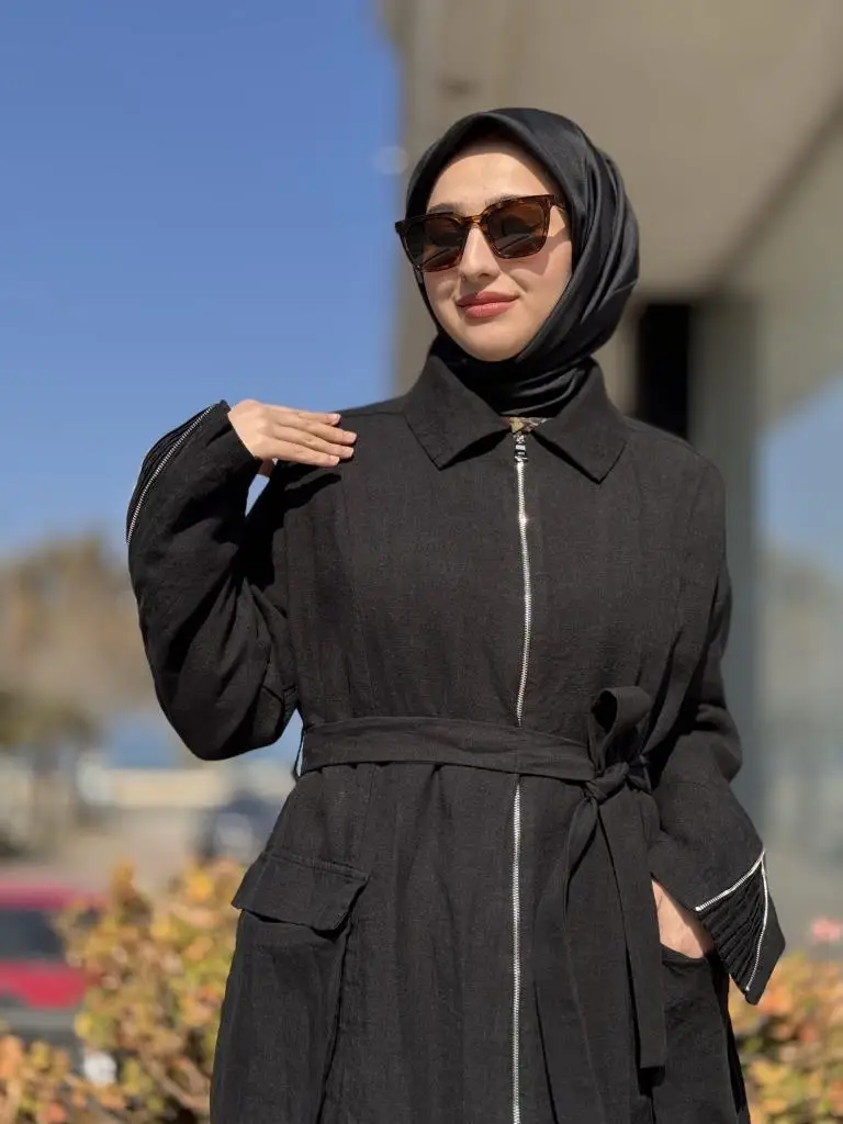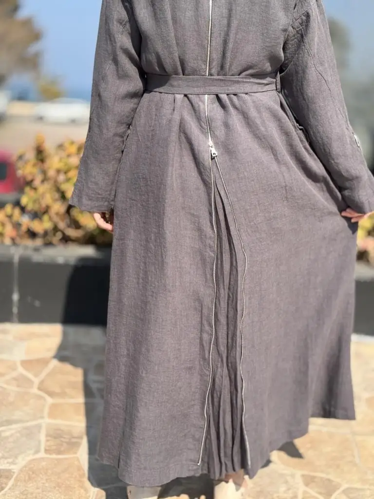 Misswhence Ön ve Arkası Fermuarlı Torba Cepli Keten Pardesü 37509