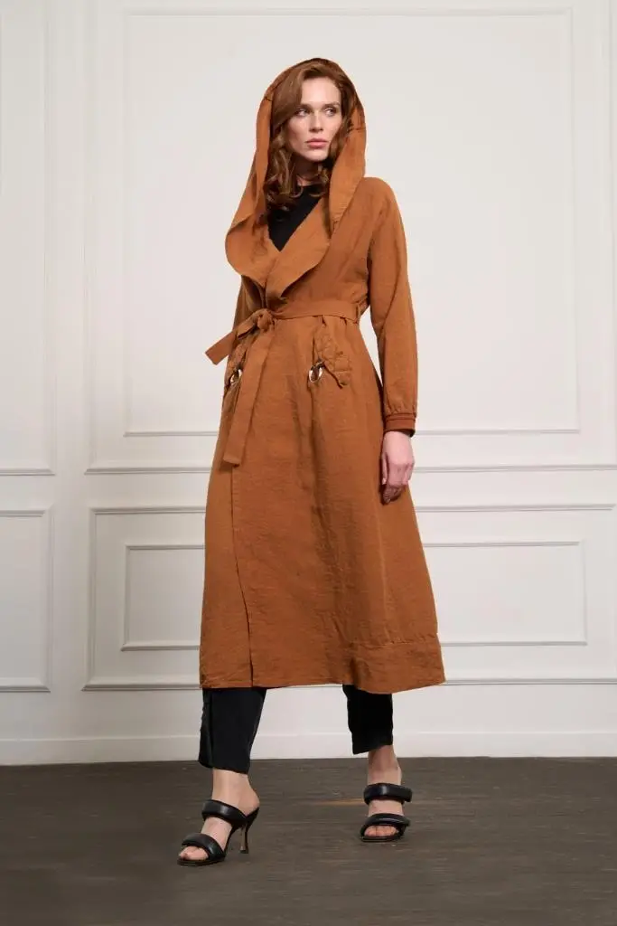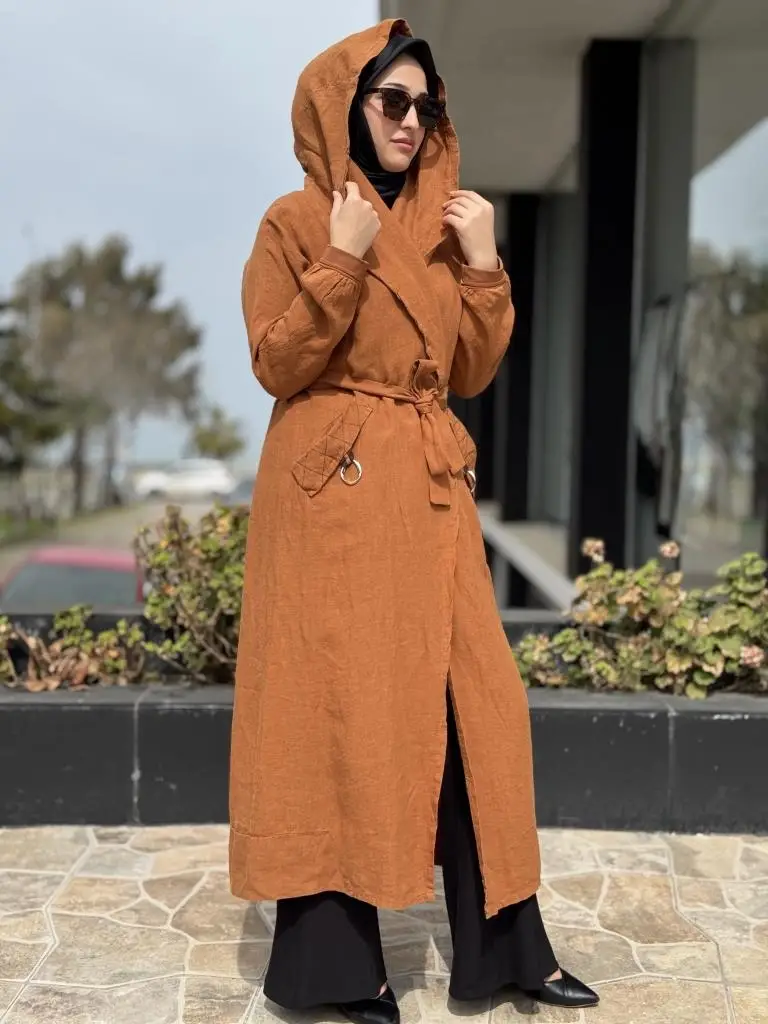 KETEN KAPÜŞONLU ŞAL YAKALI BİR KAPTIR