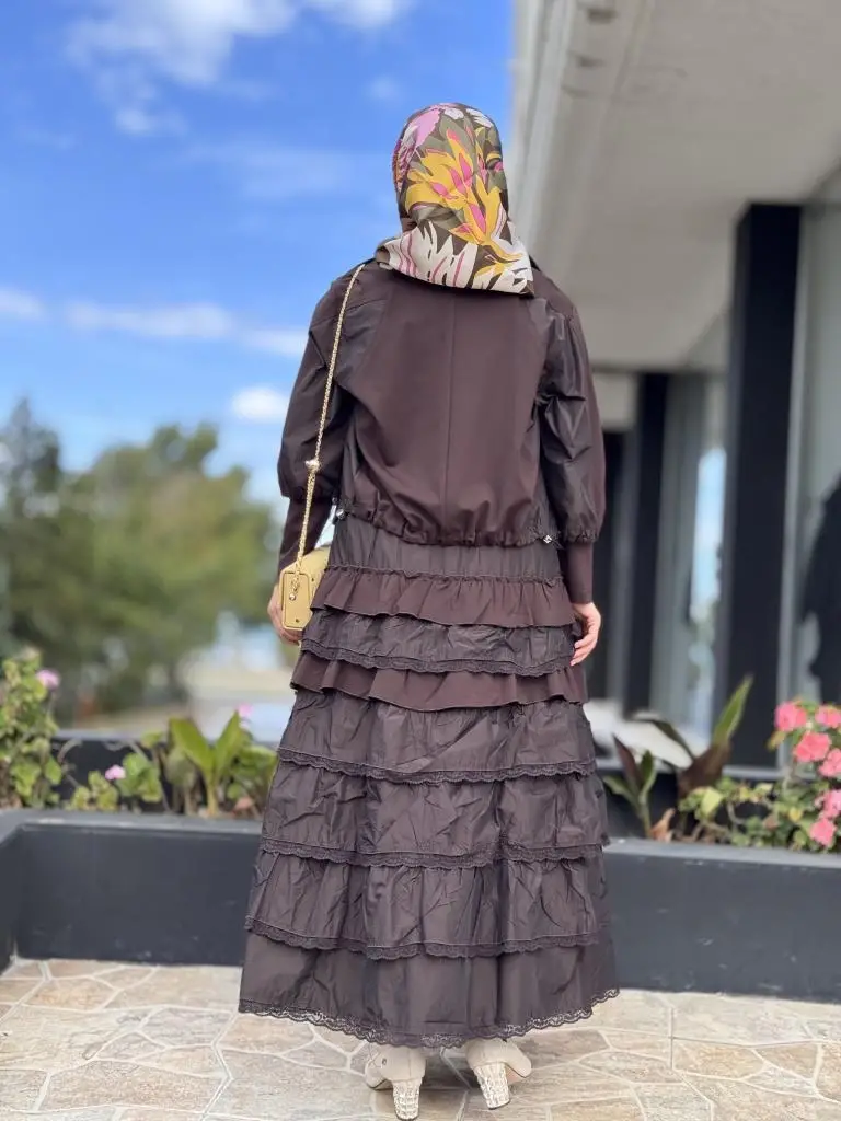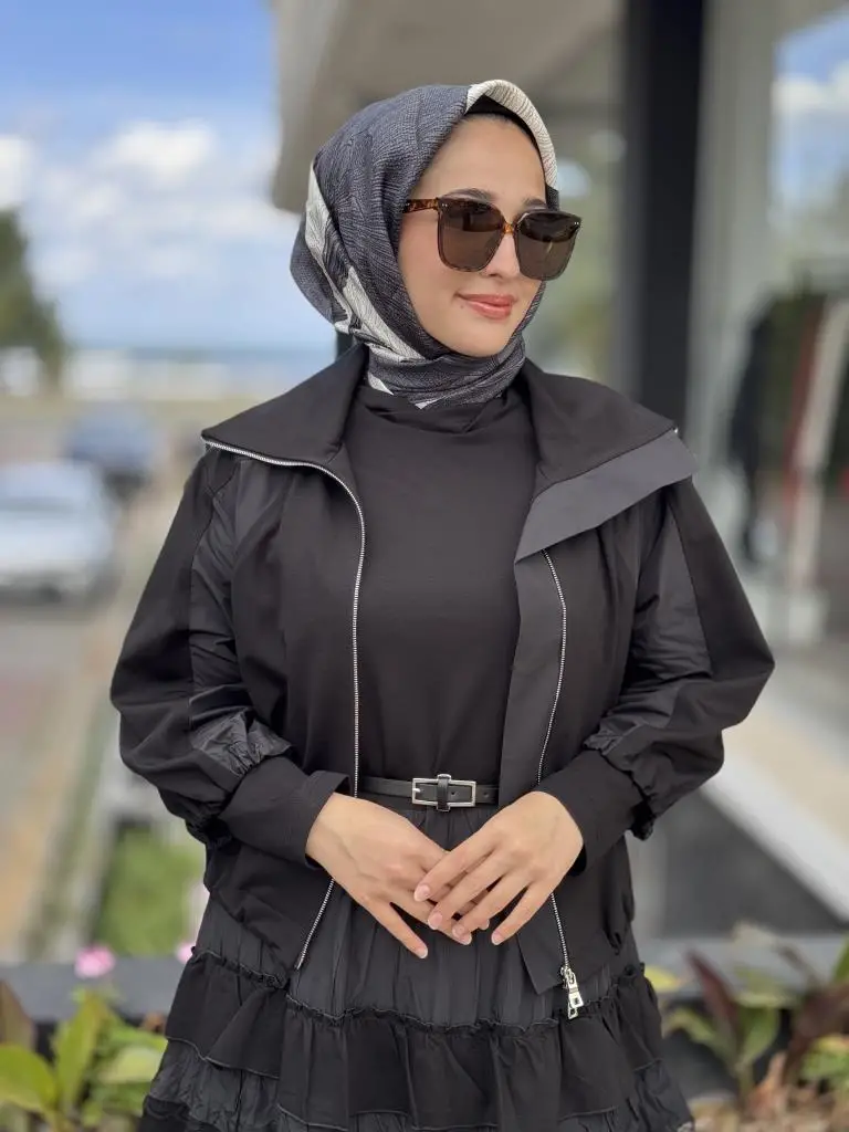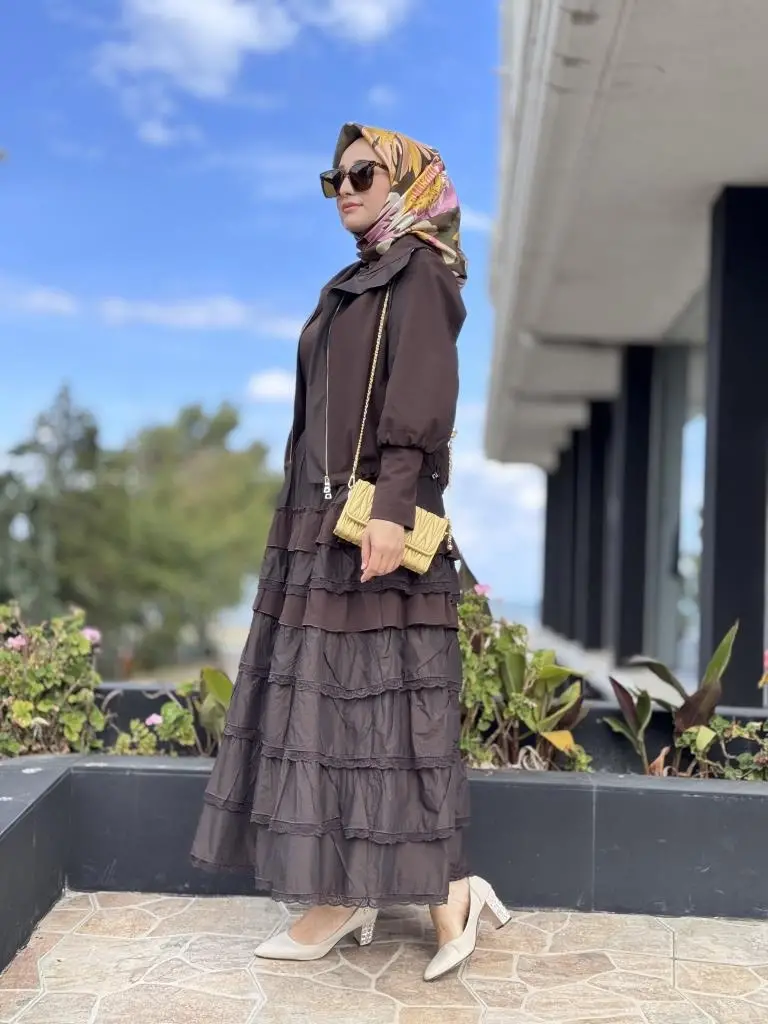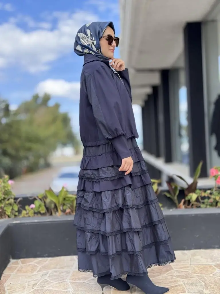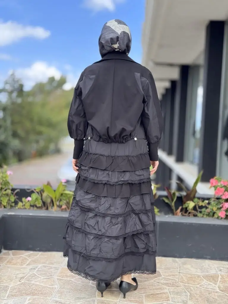 ELBİSE KATLI VE TEKNİK KUMAŞ DETAYLIDIR