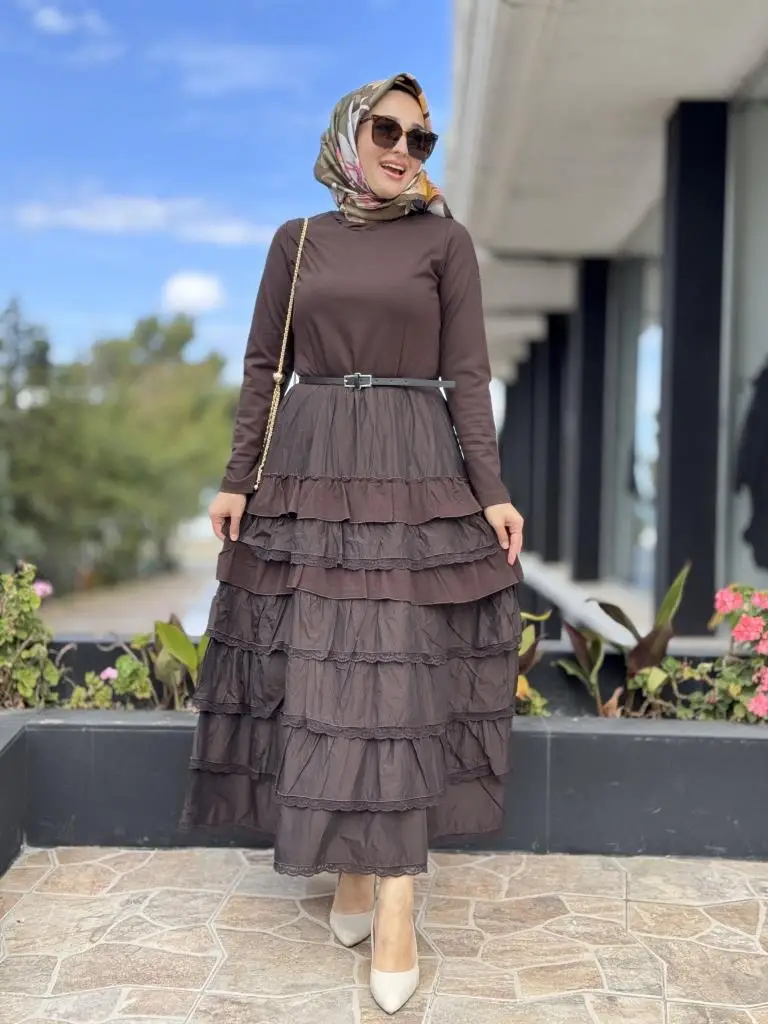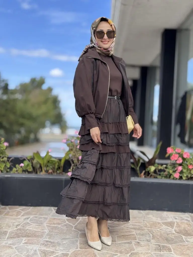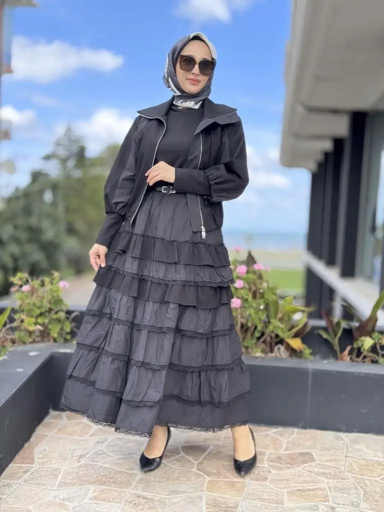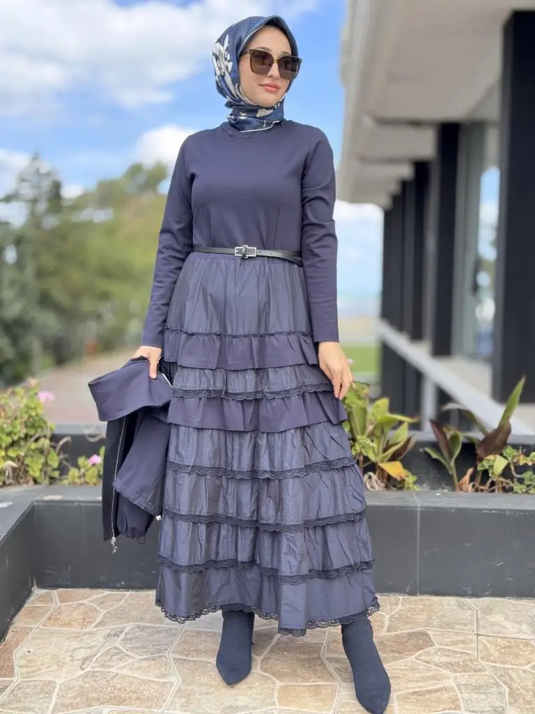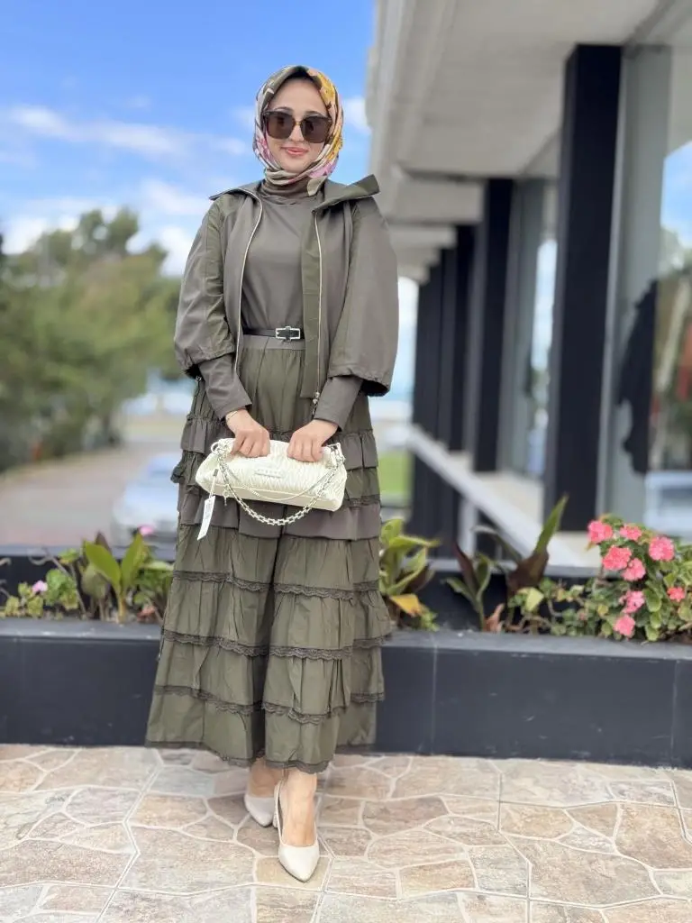 ELBİSE KATLI VE TEKNİK KUMAŞ DETAYLIDIR