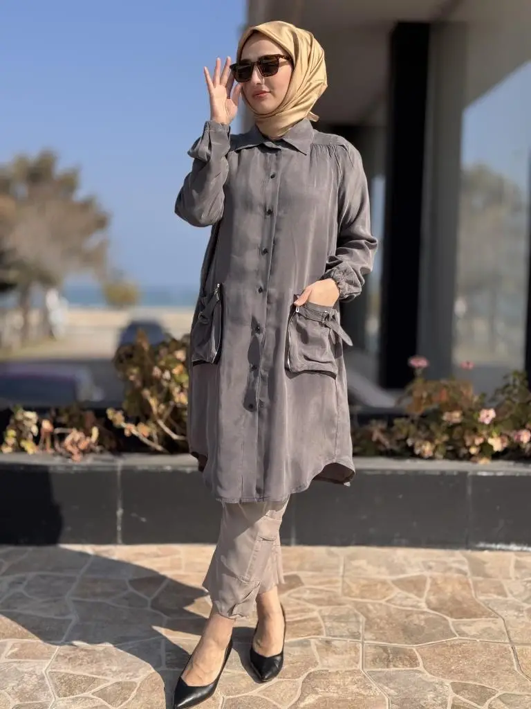 Misswhence Torba Cepli Çıtçıtlı Cupra İpek Gömlek 37302