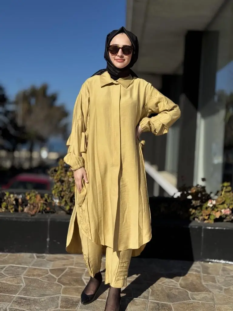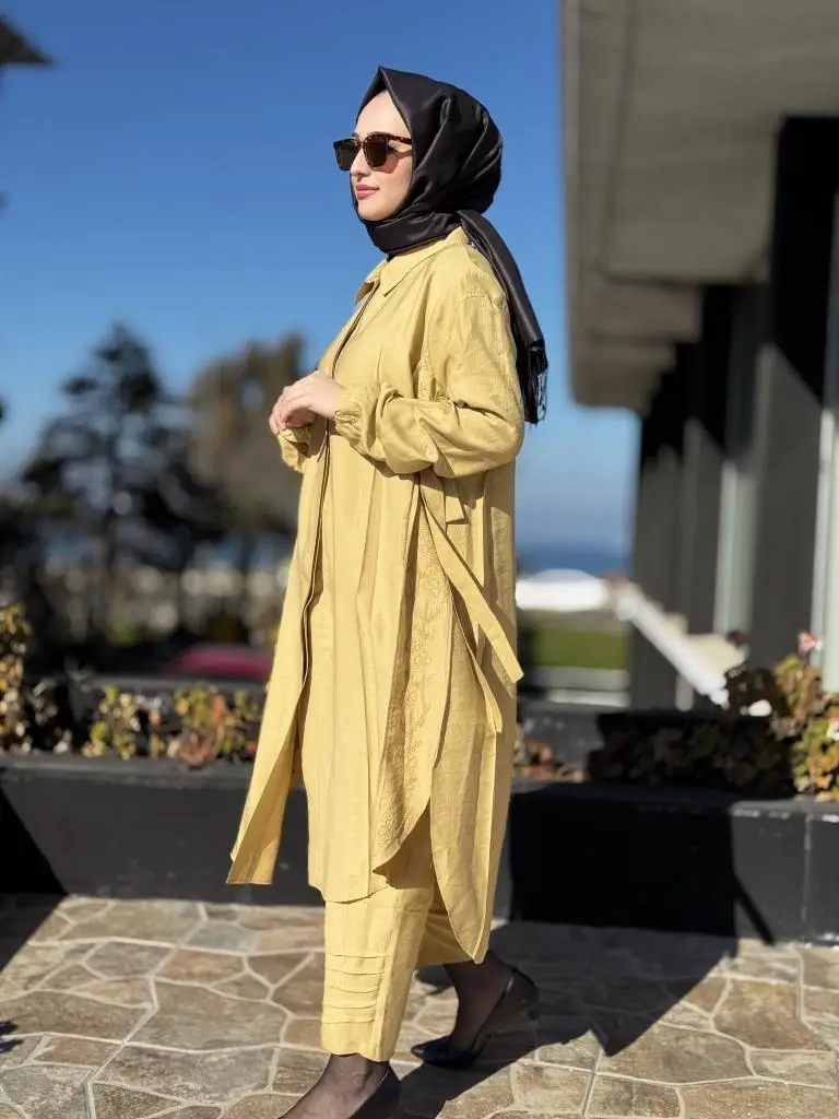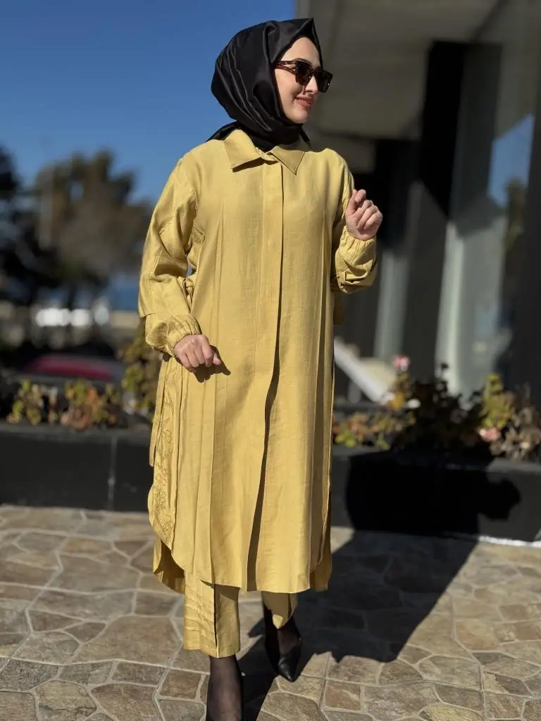 Misswhence Yanları Nakış Detaylı Gömlek Pantolon Takım 37301