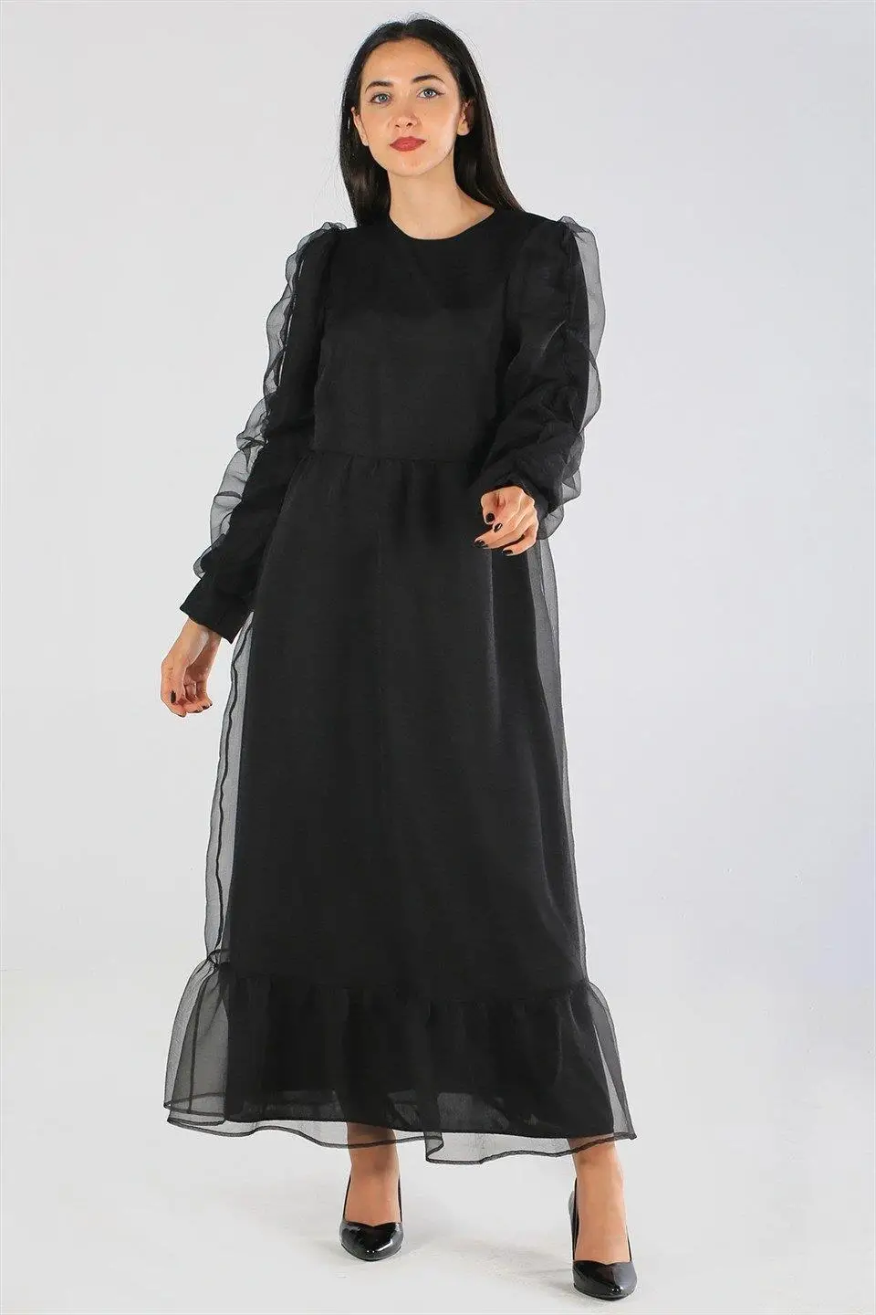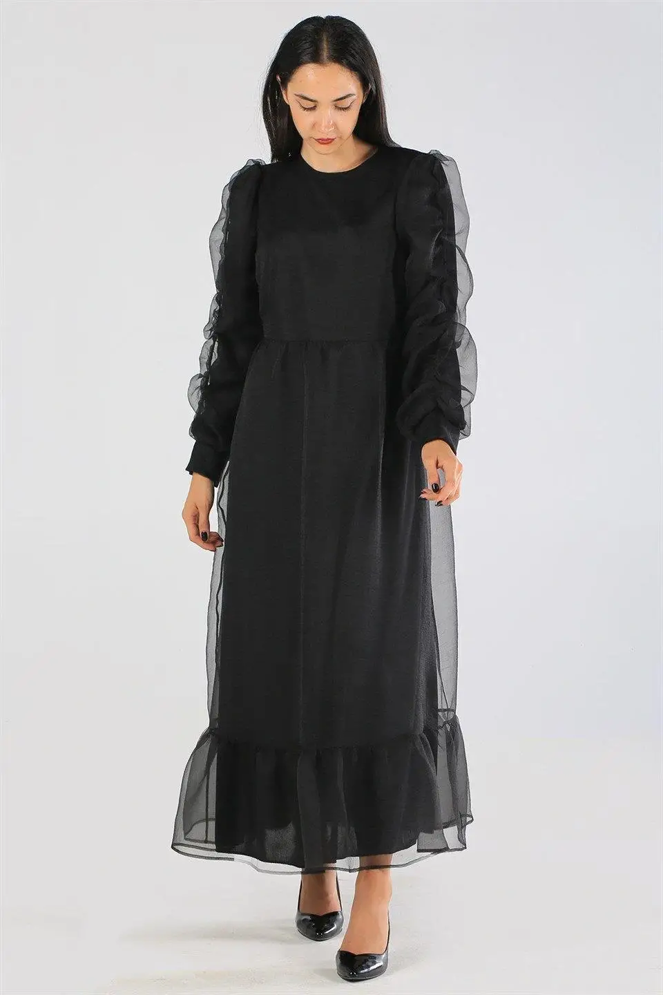 ASTARLI ORGANZE KEMERLİ ELBİSE