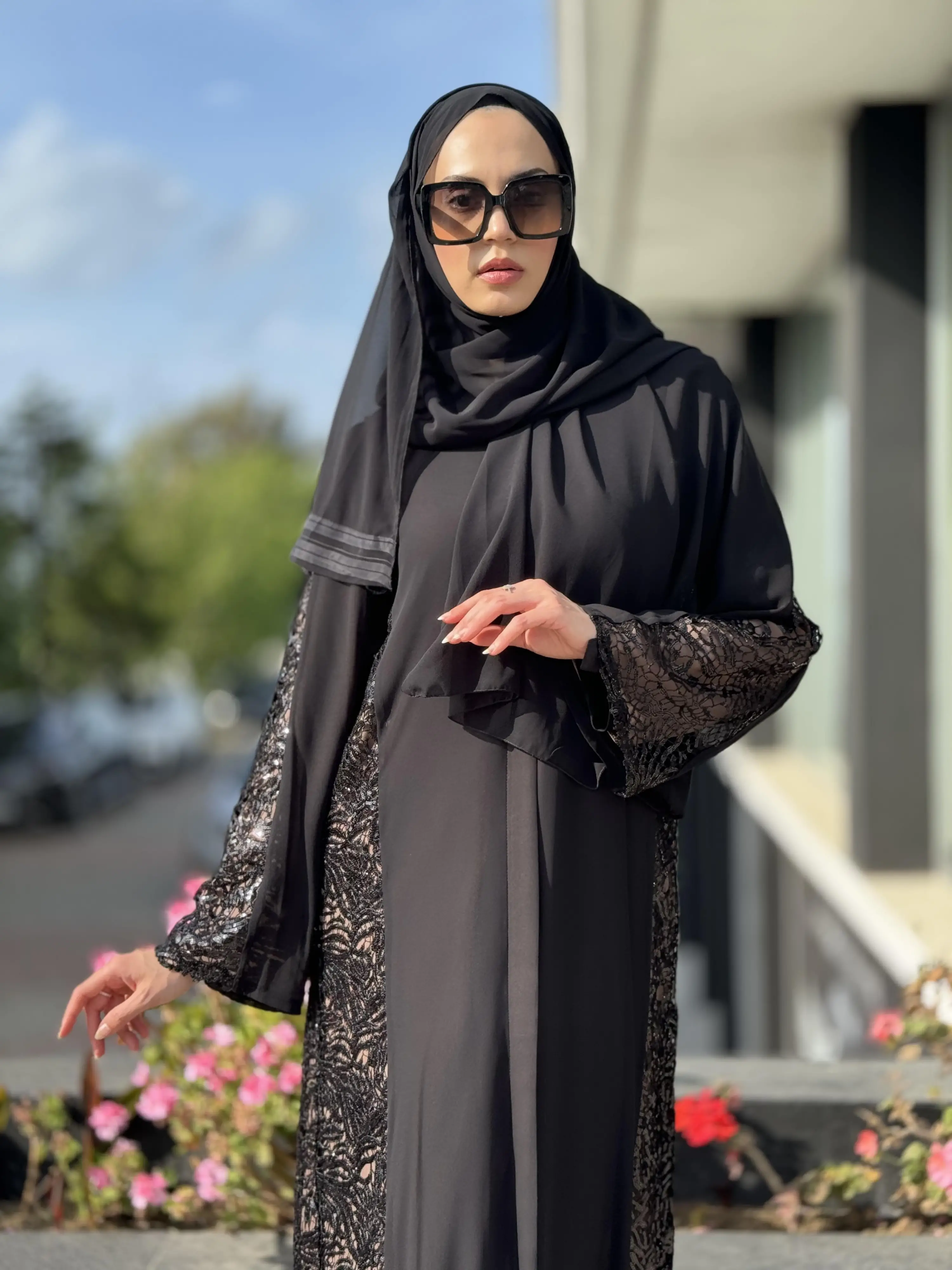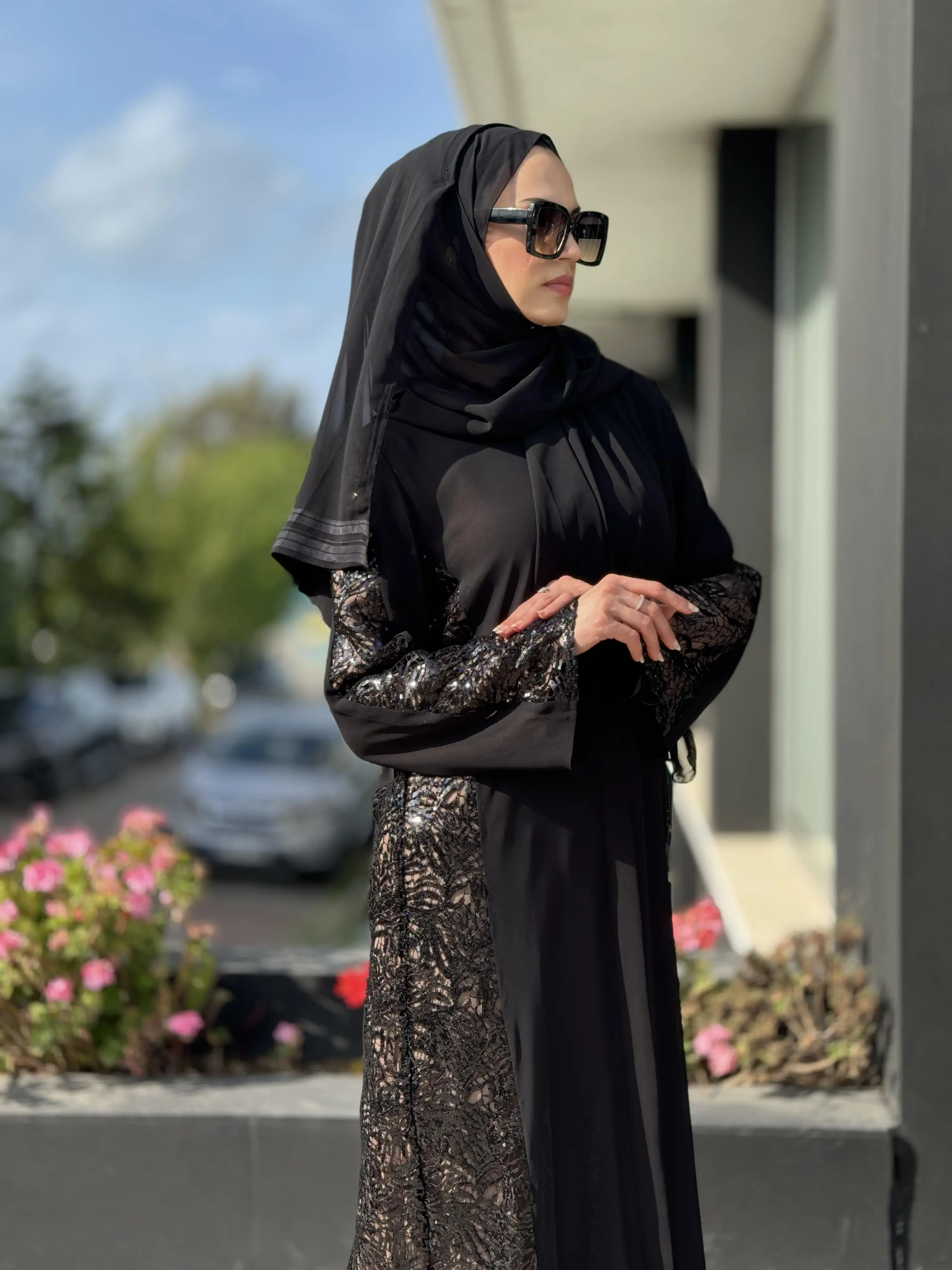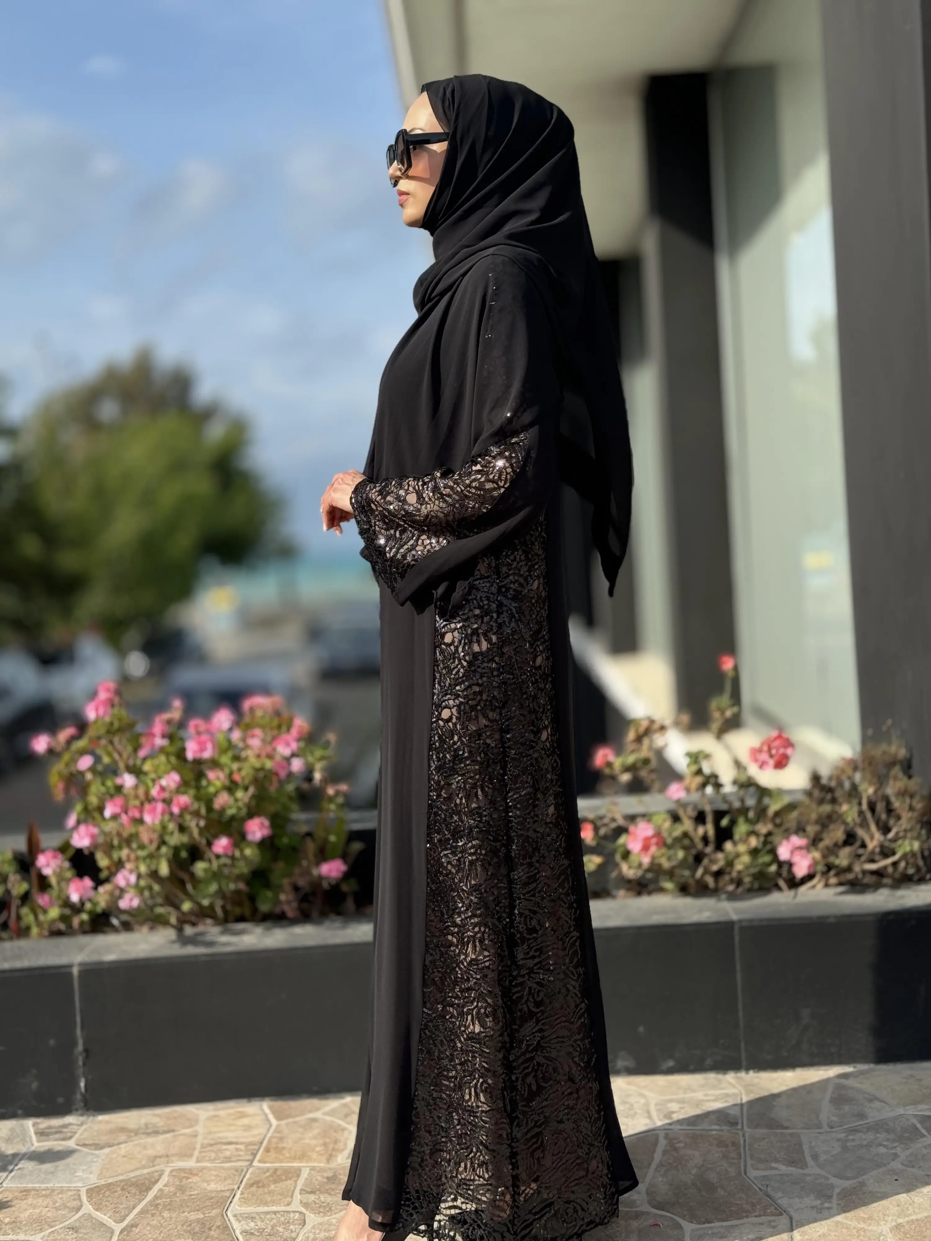 QEFFA Yanları Ve Kolları Dantelli Siyah Ferace / Elbise Q162