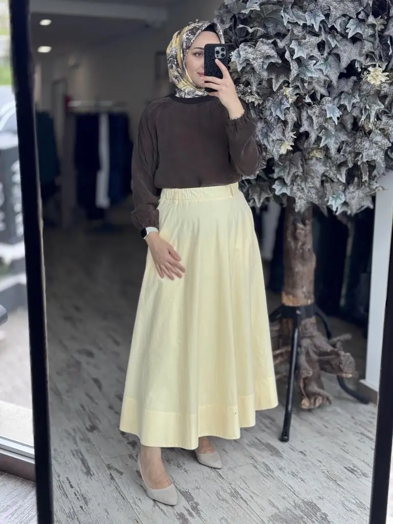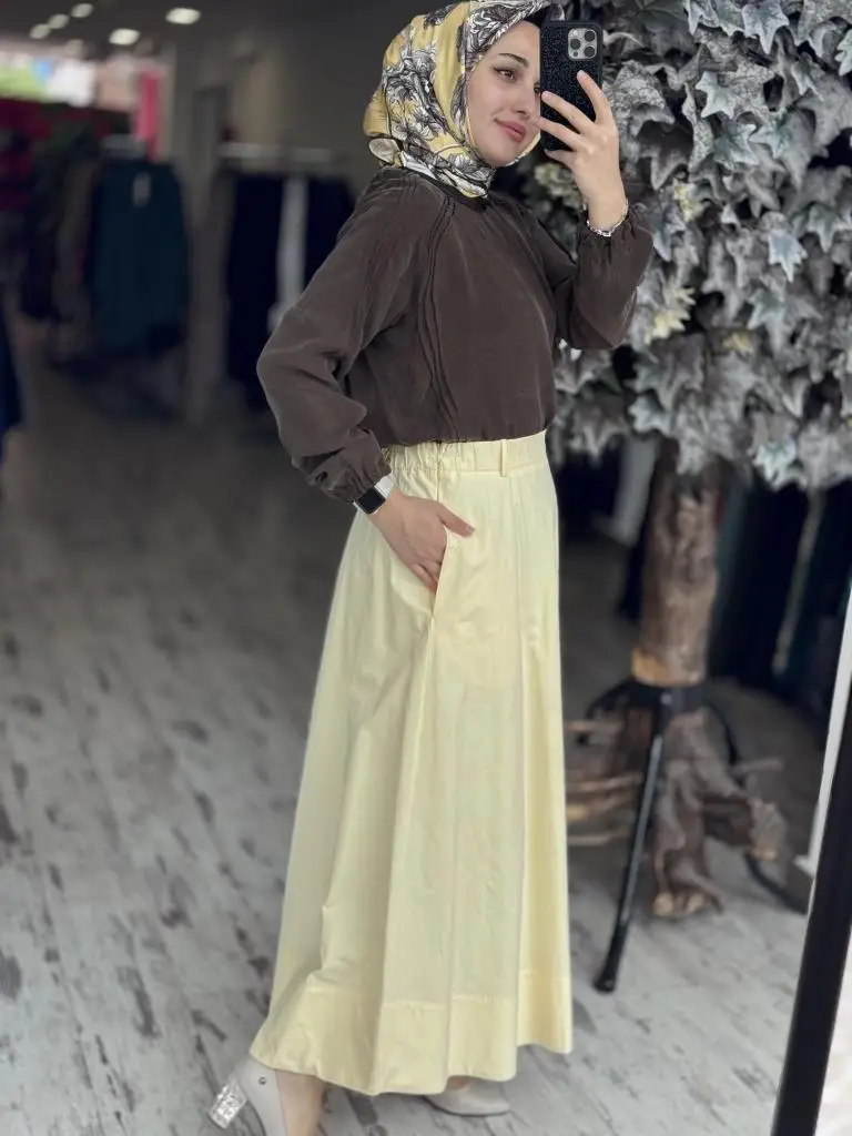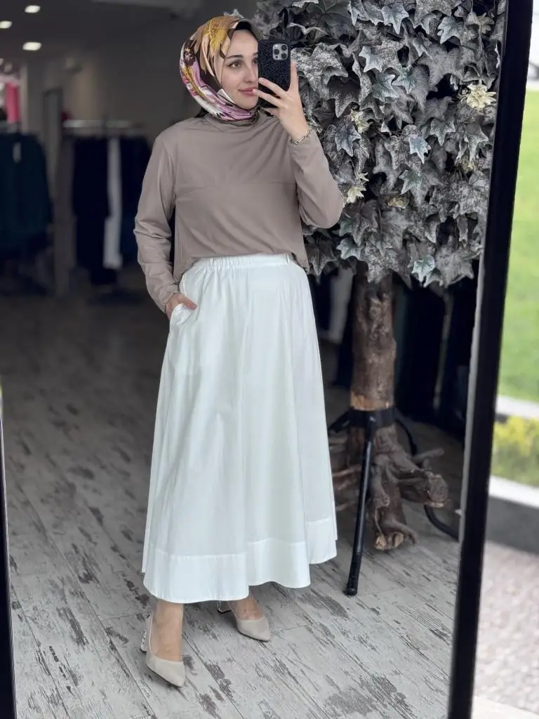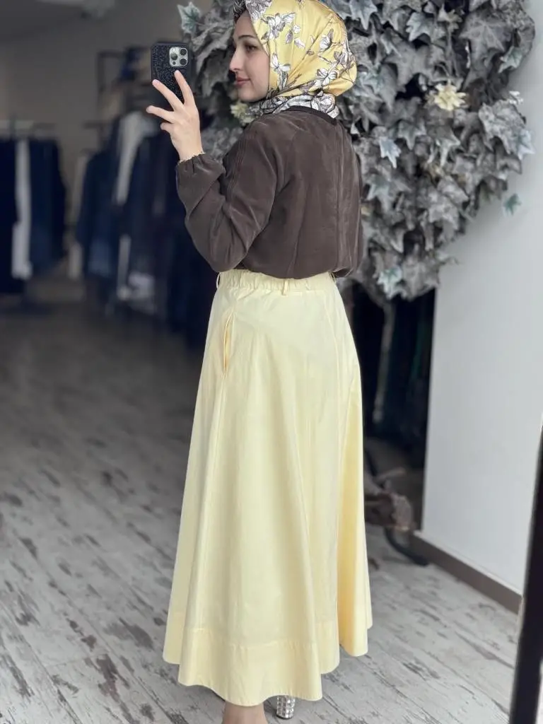 QooQ Store Sar Poplin Cepli Kloş Etek 25SS537