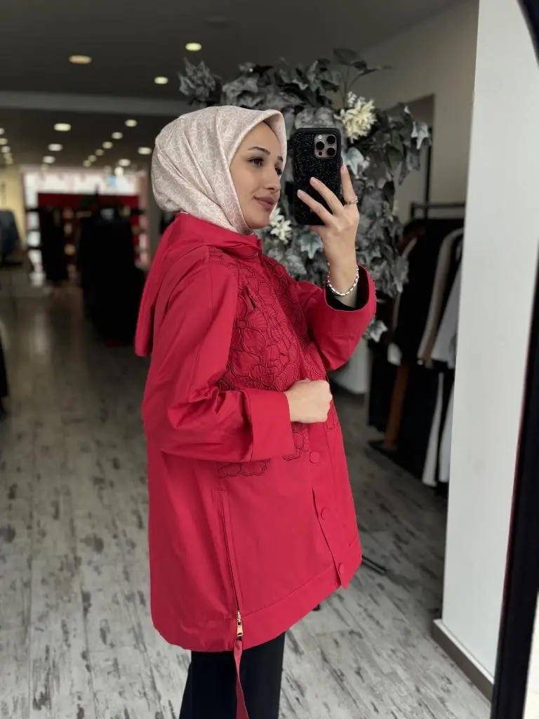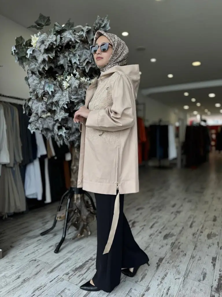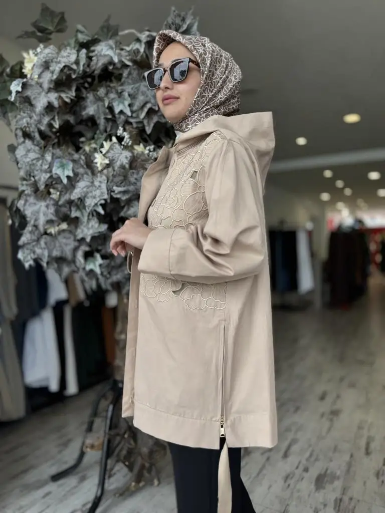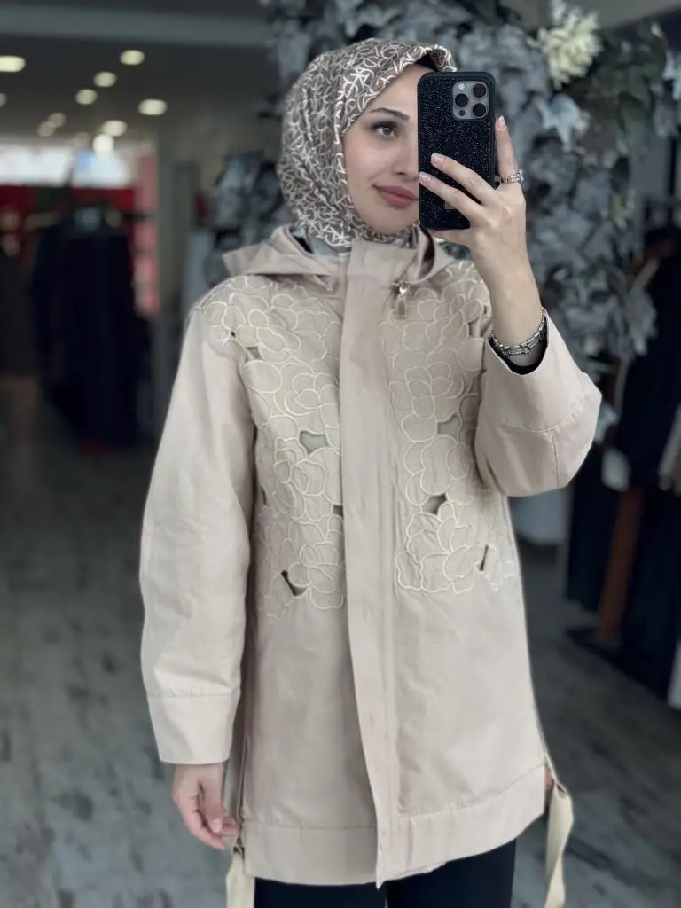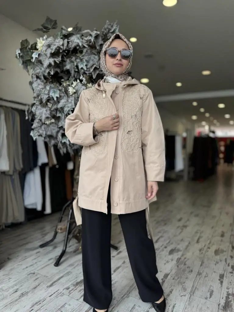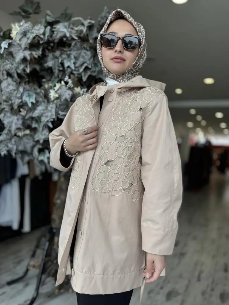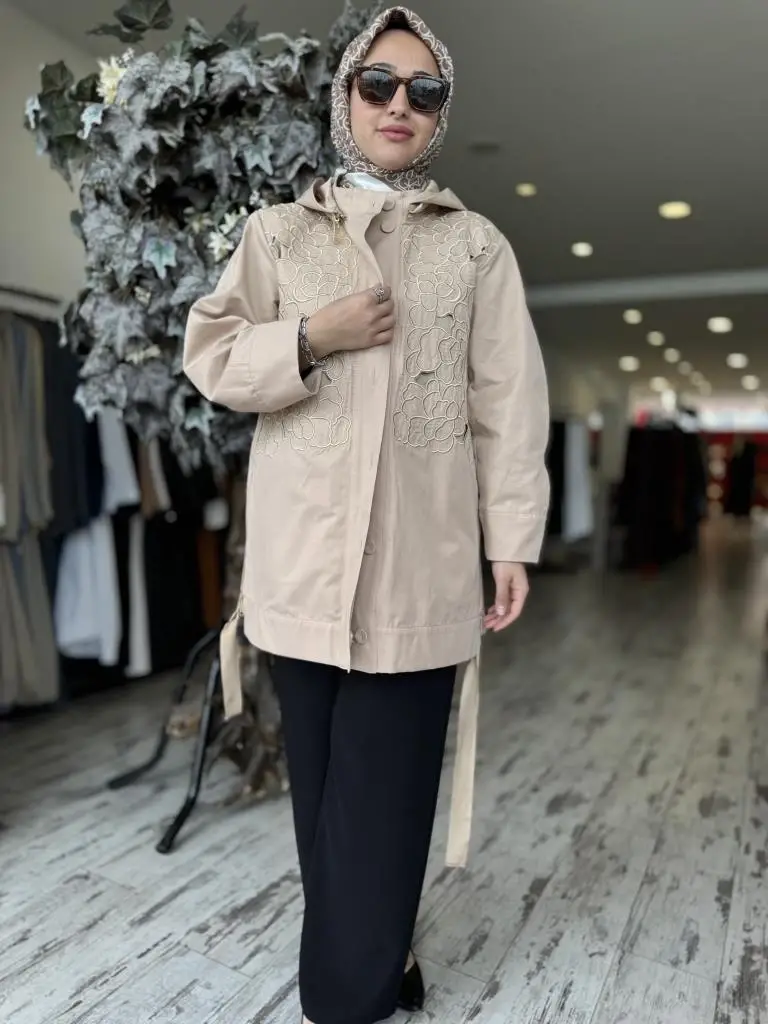 Qupra Kapüşonlu Nakış Detaylı Lazer Kesim Kap WAB81002