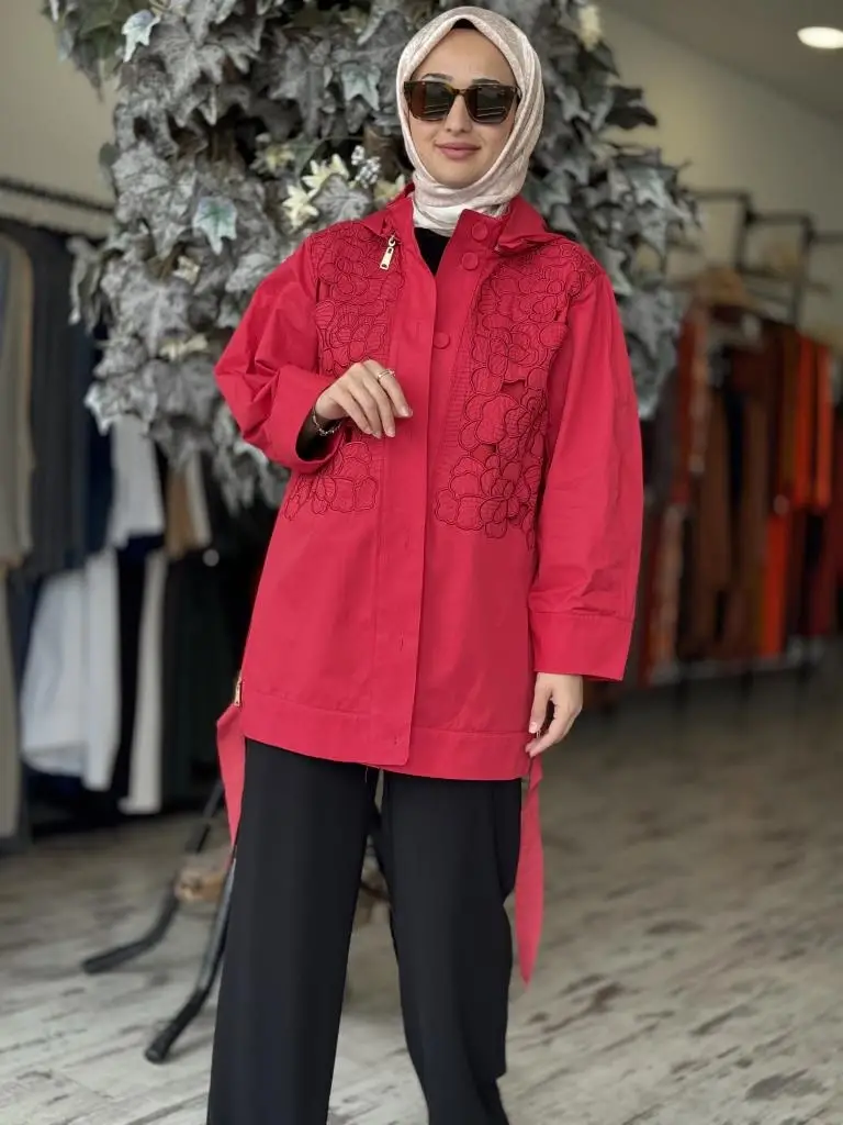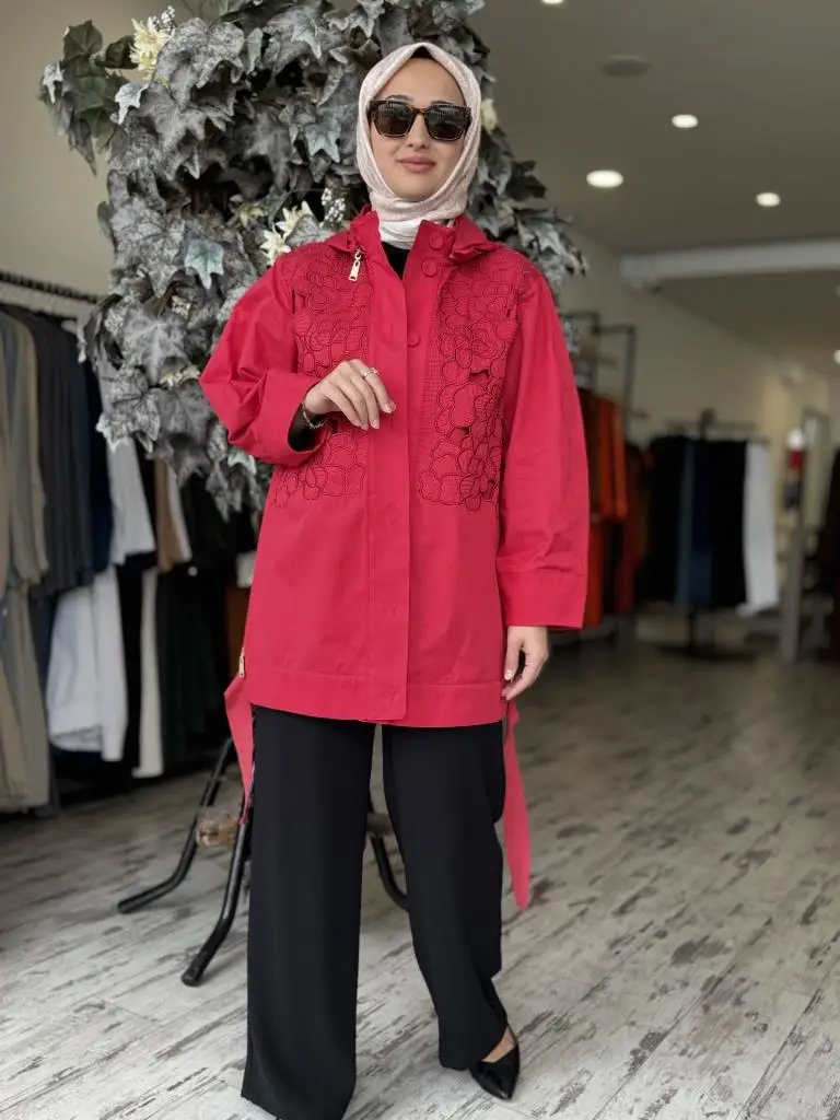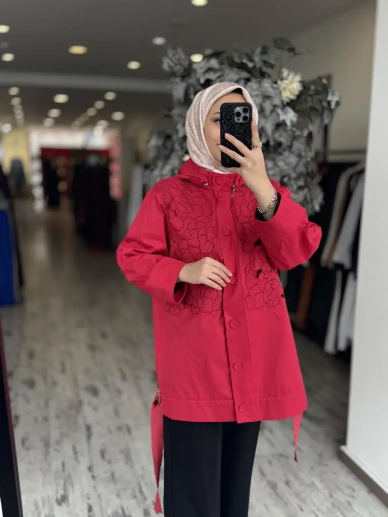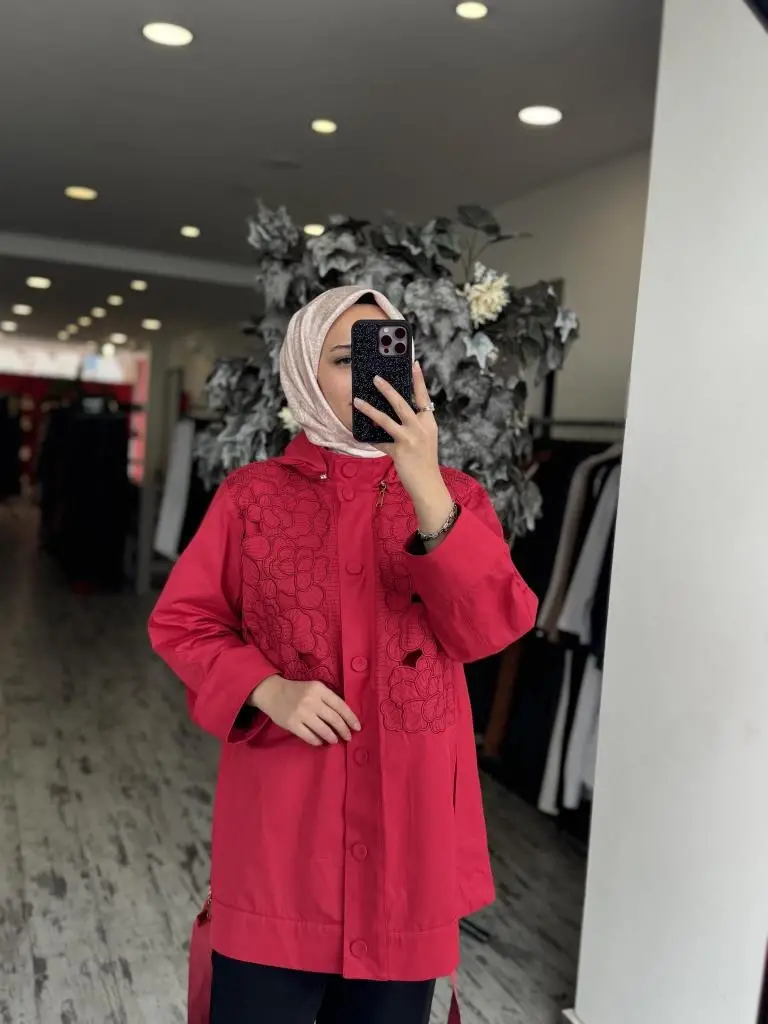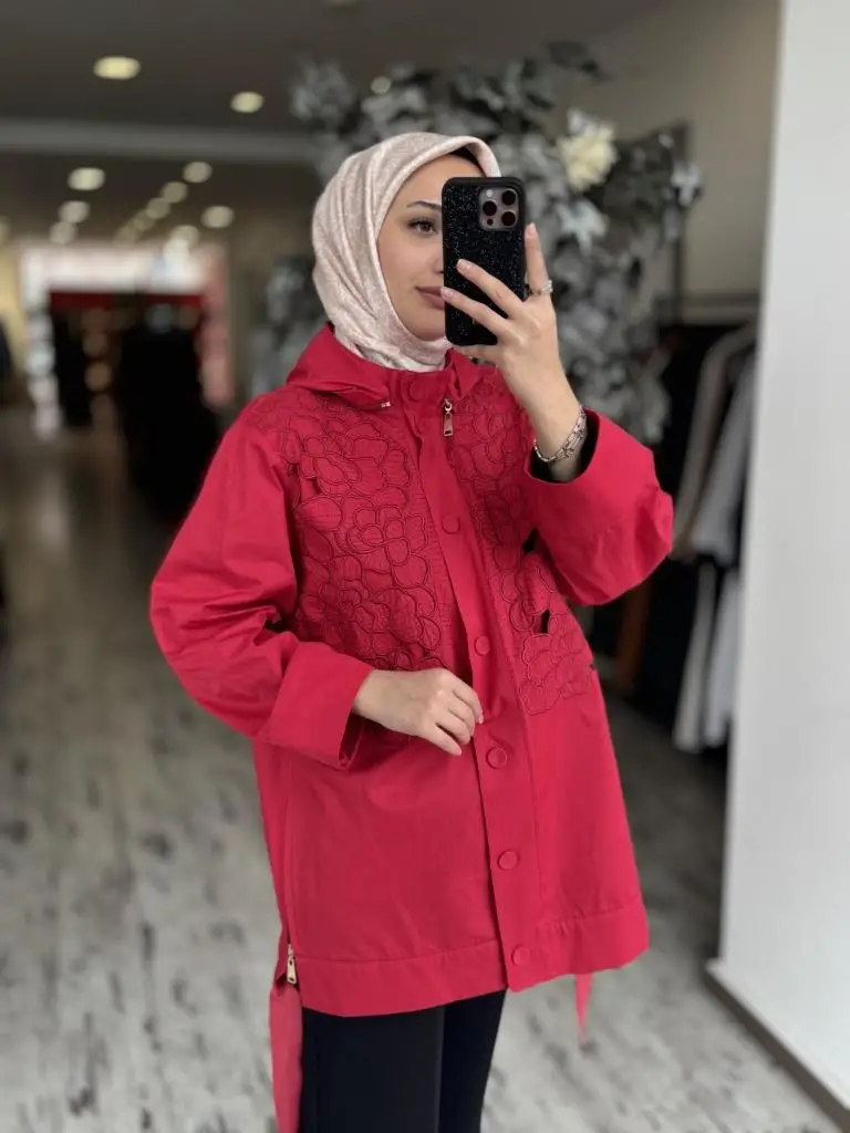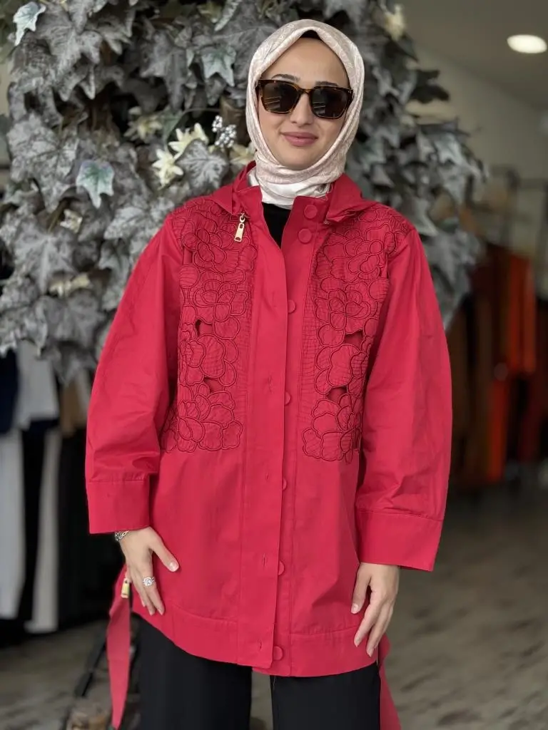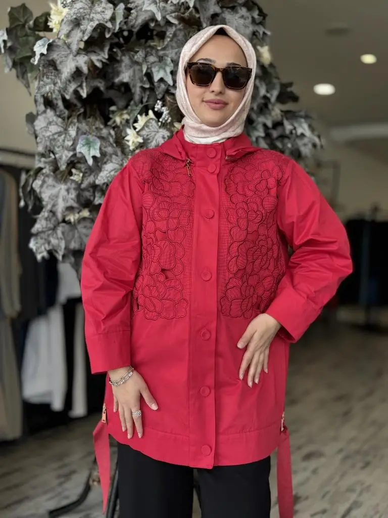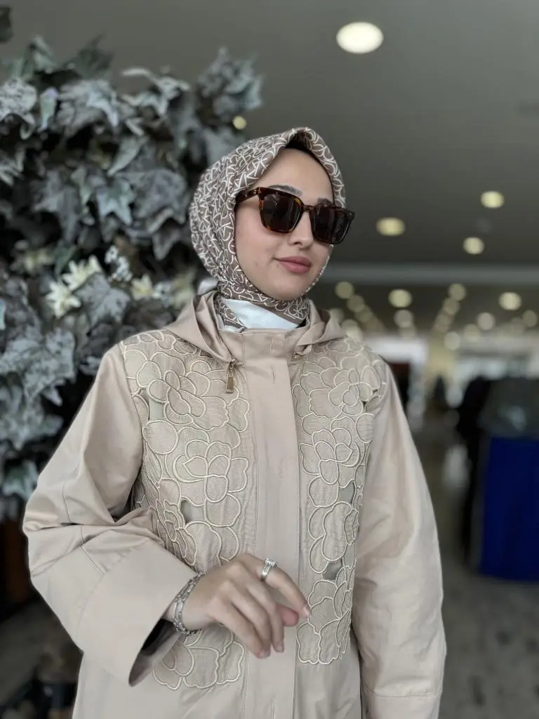 Qupra Kapüşonlu Nakış Detaylı Lazer Kesim Kap WAB81002