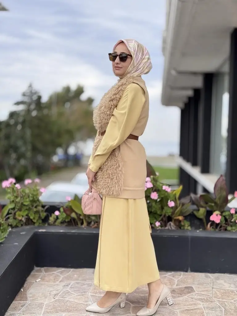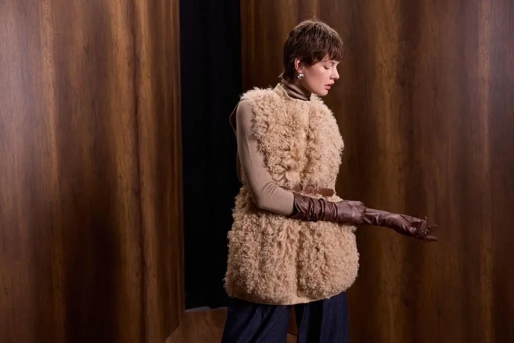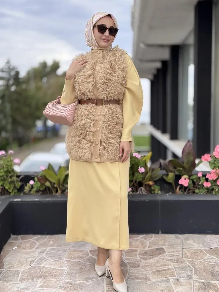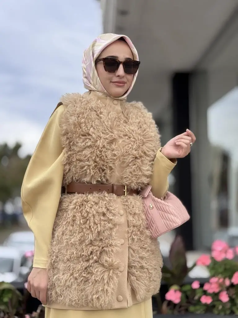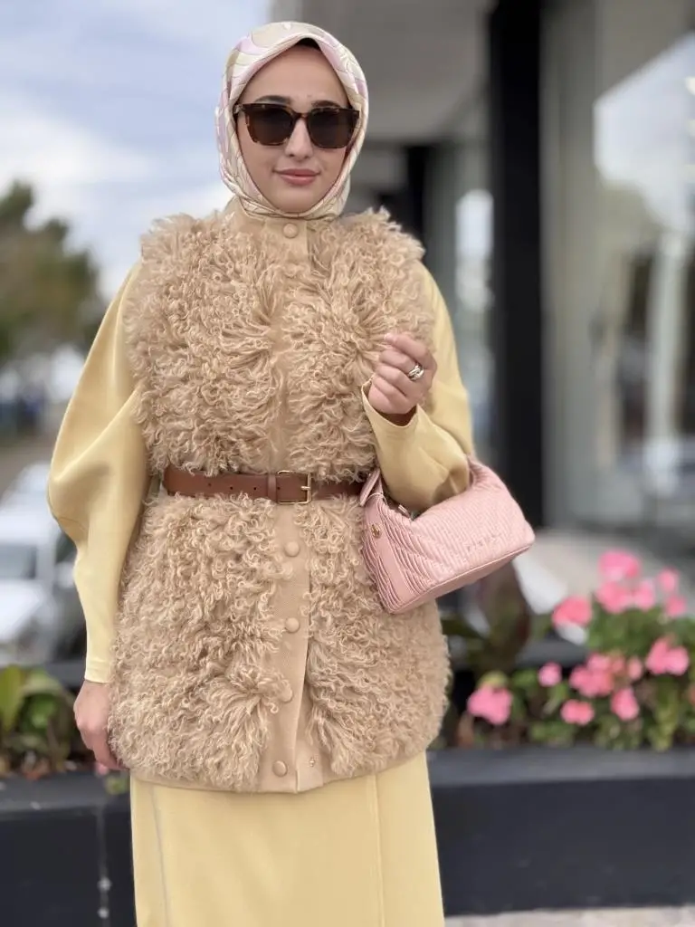 Qupra Önü Orjinal Yün Detaylı Kemerli Yelek WAC91029