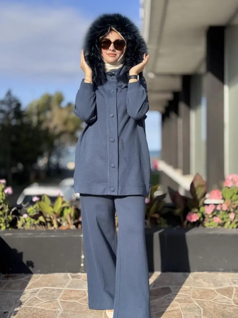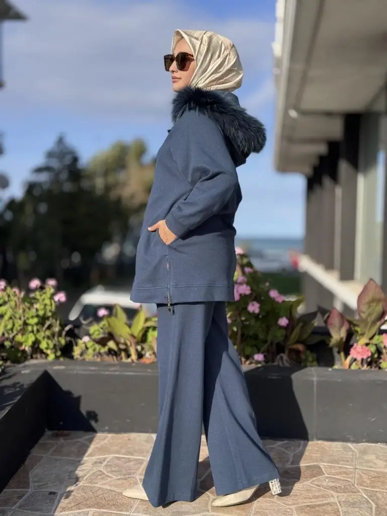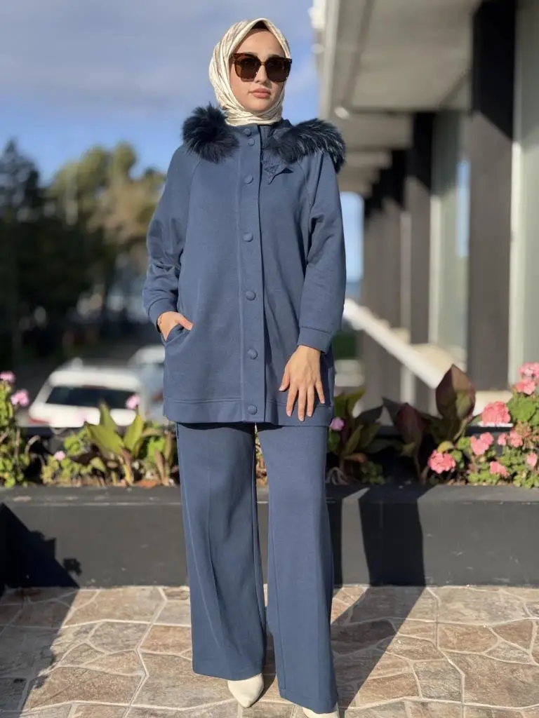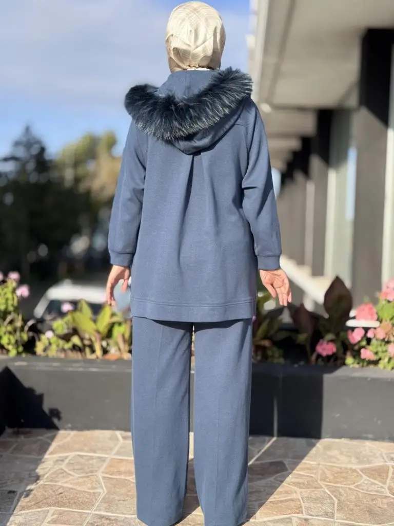 Qupra Yanları Fermuarlı Seyyar Kürk Kapüşonlu Kap Pantolon Takım WAC92000