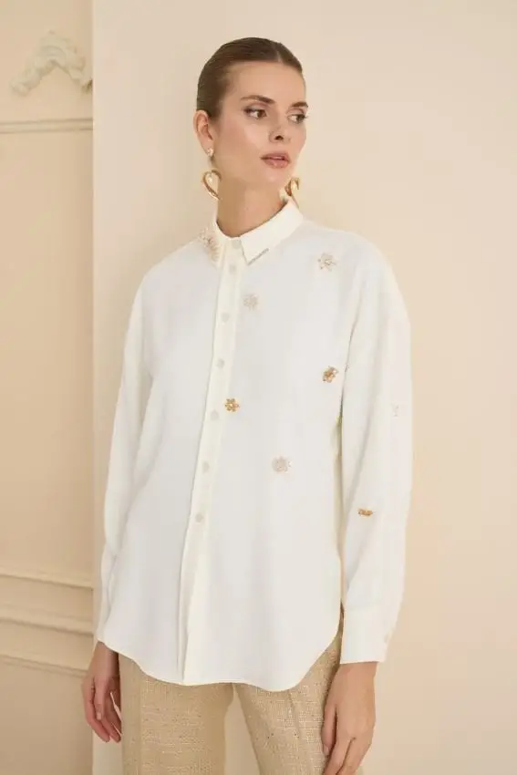 SENNA Gabrielle Boncuk Çiçek Detaylı Gömlek SD21014