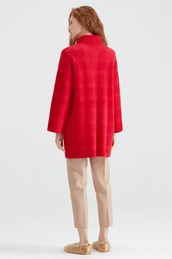 Tığ Triko Broşlu Örgü Detaylı Mink Kaban KBN20862