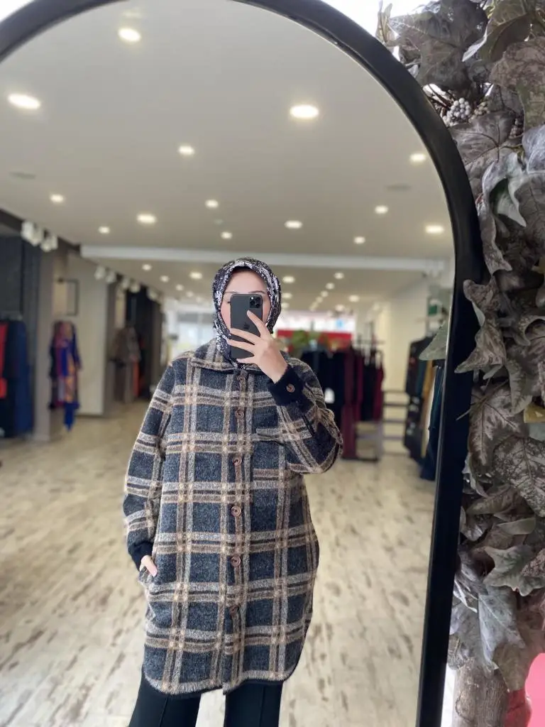 Tığ Triko Ekose Desenli Mink Kaban KBN21625