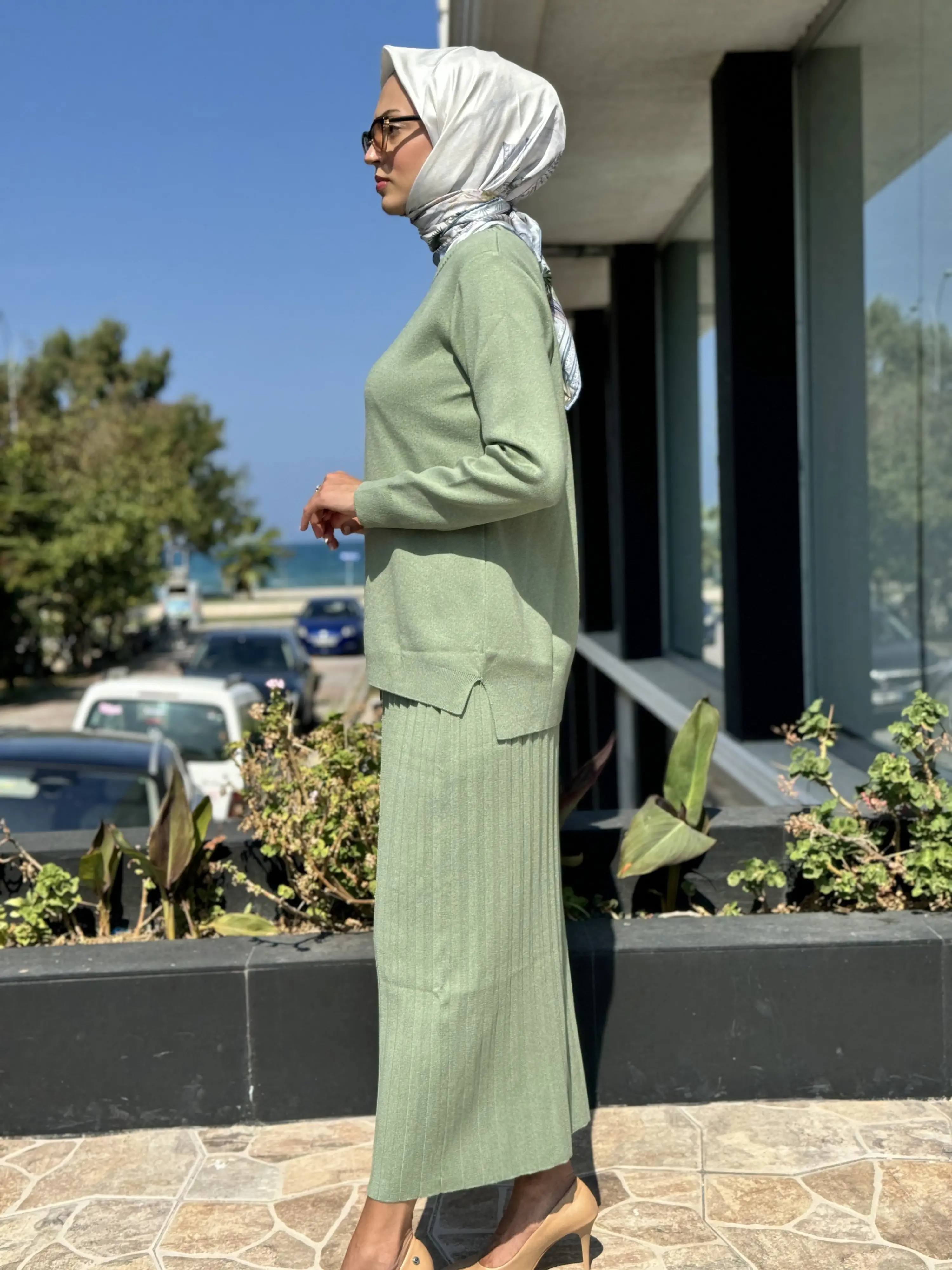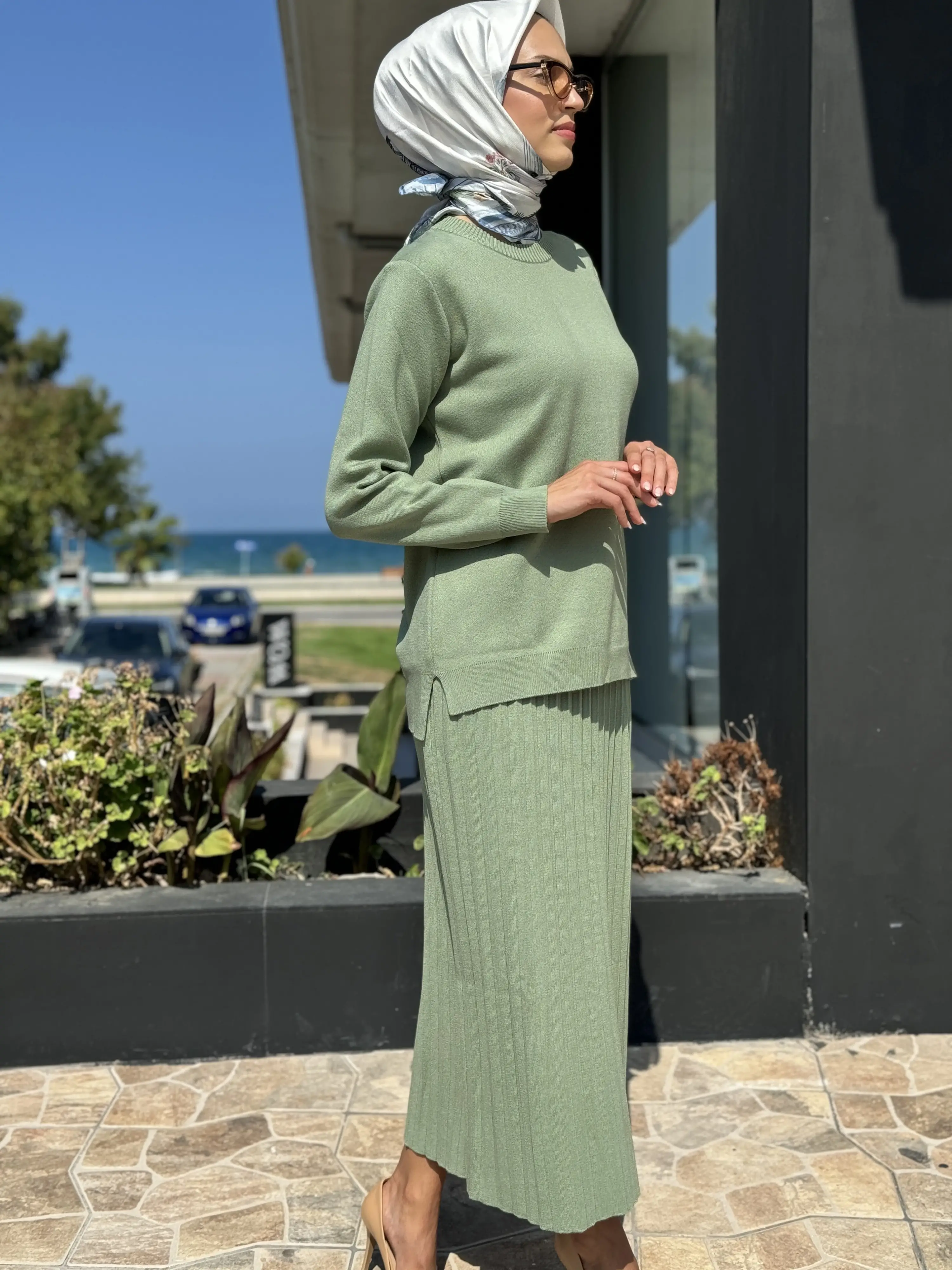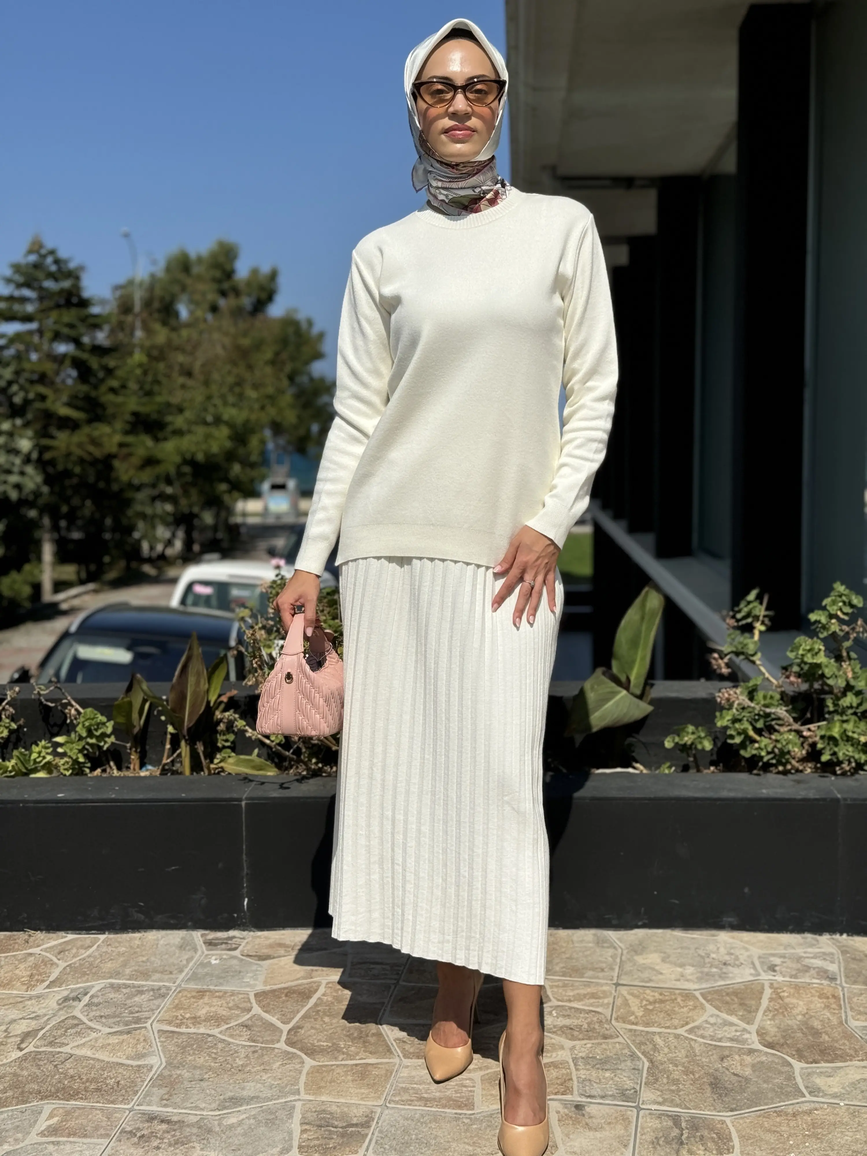 Tığ Triko Tunik Pileli Etekli Takım TKM21623