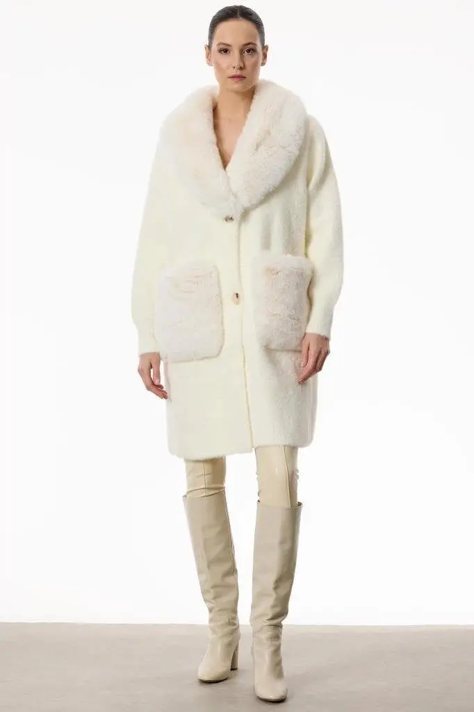Tığ Triko Çoban Düğme Detaylı Triko Kaban KBN21794