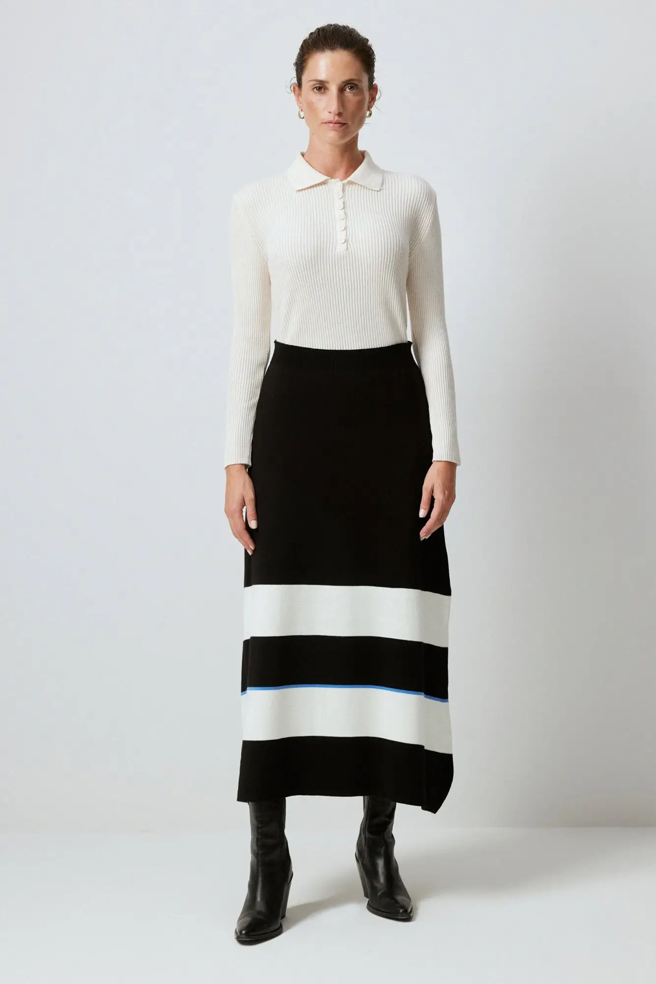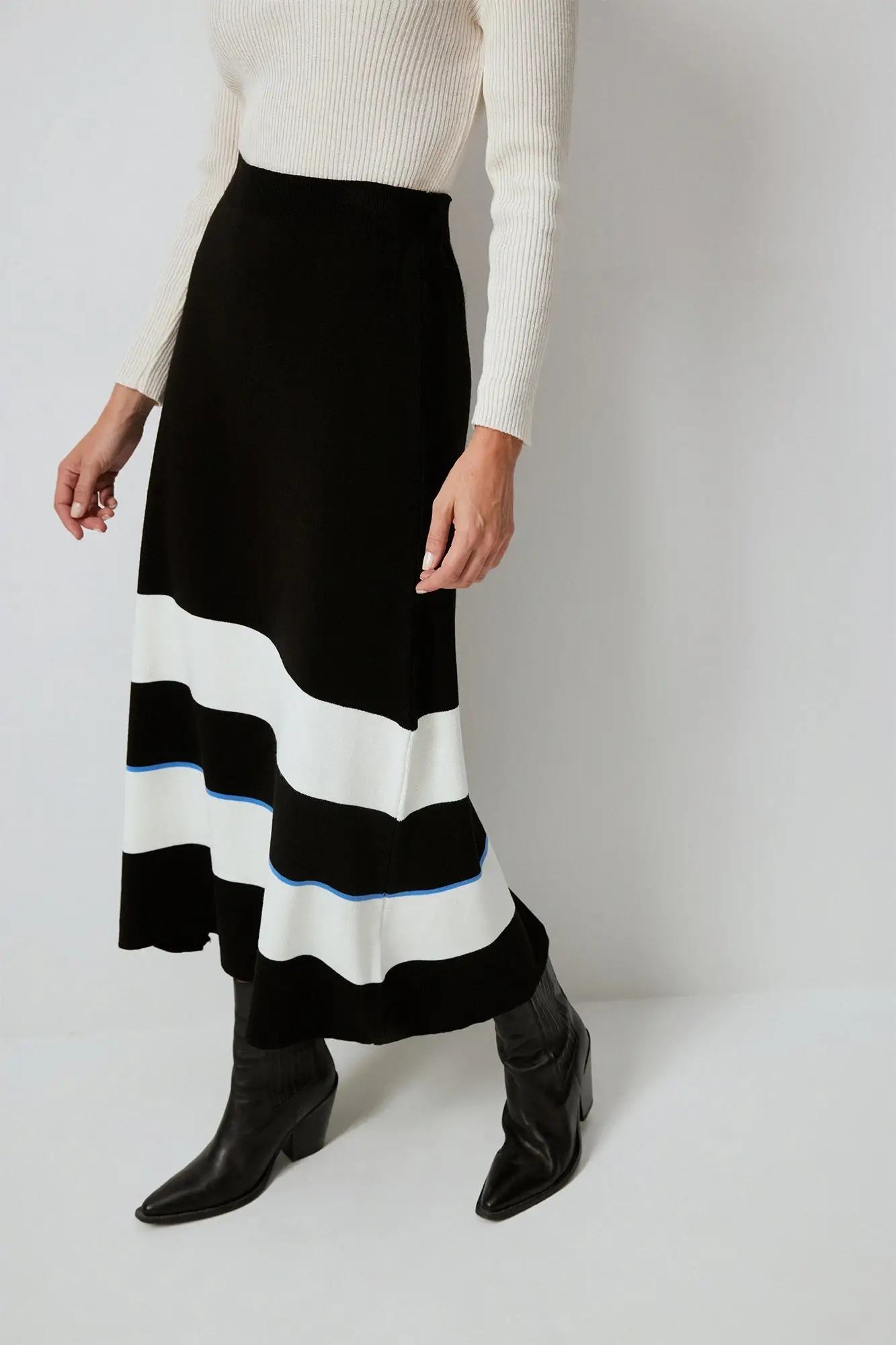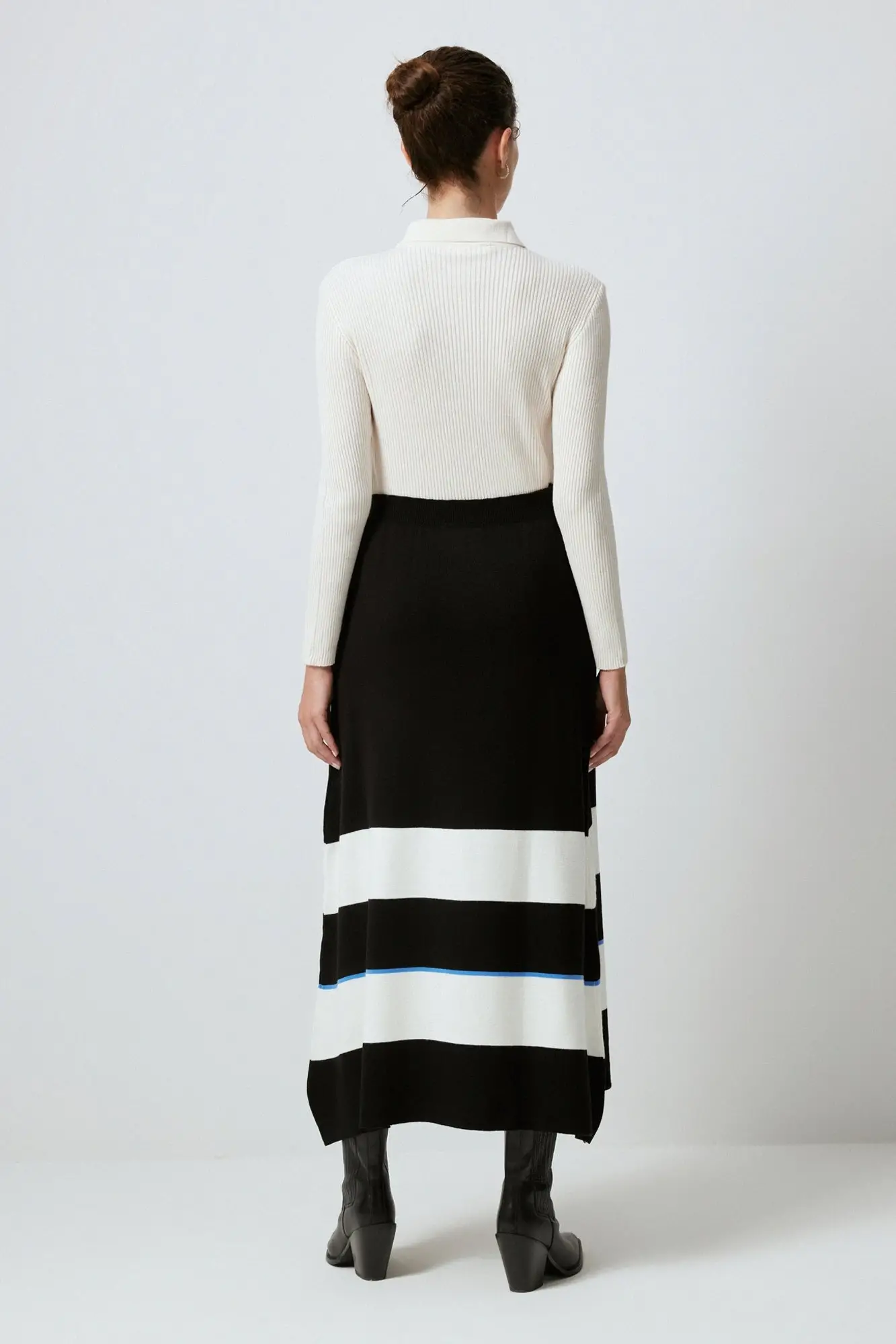 Touche Beli Lastikli Çizgili Triko Etek 23F1XD107