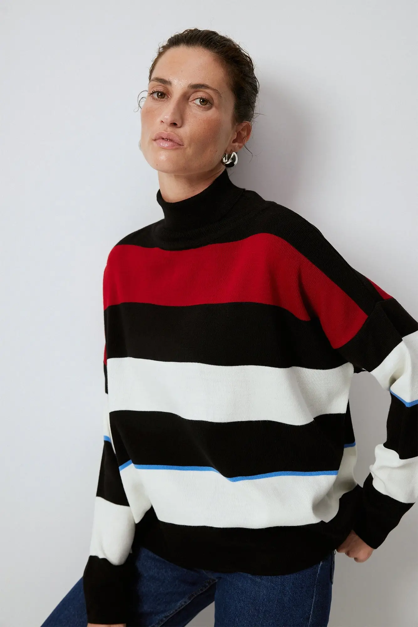 Touche Boğazlı Çizgili Kazak 23F1XD106