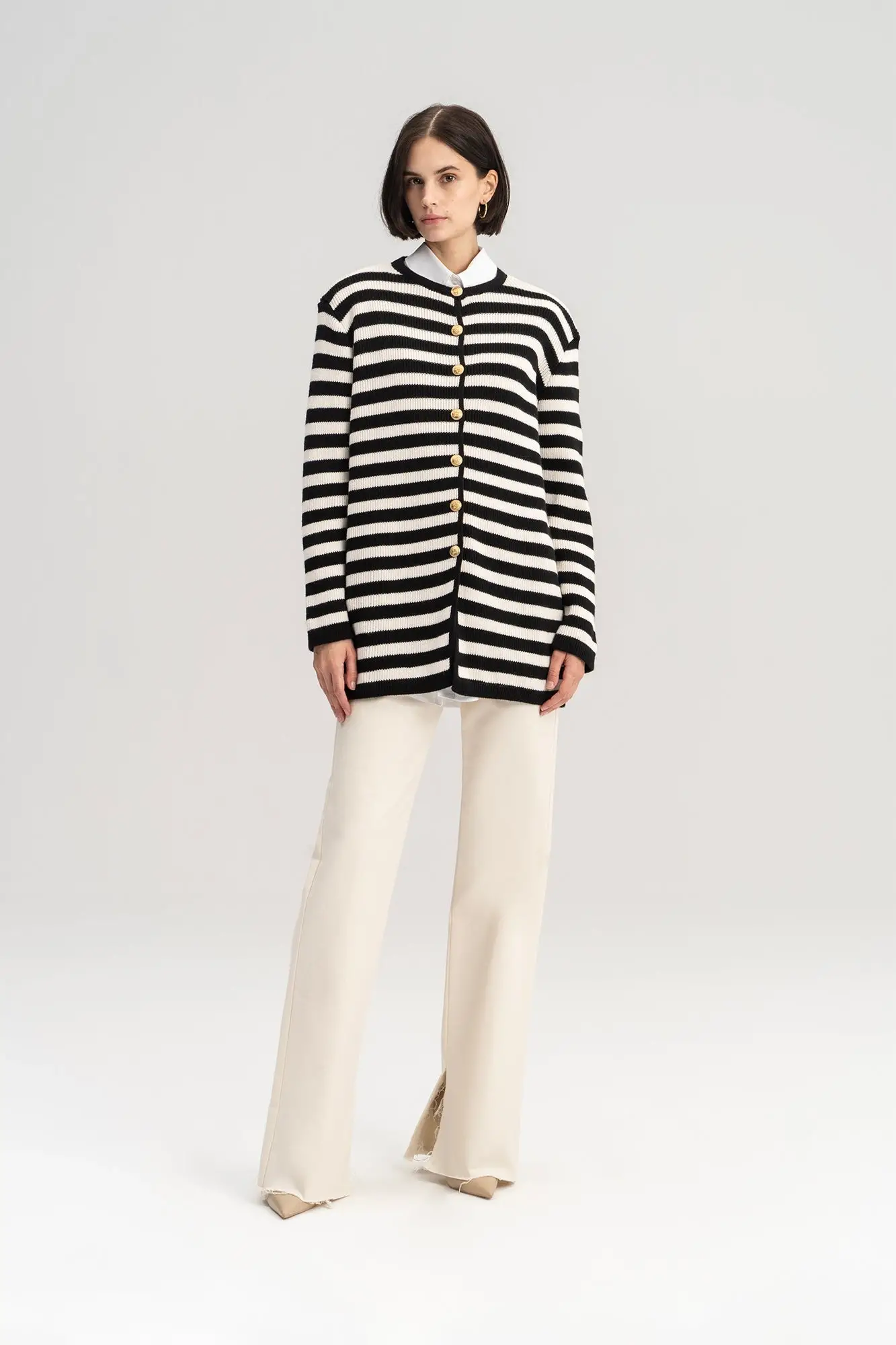 Touche Gold Düğmeli Çizgili Uzun Hırka 23F1XD166