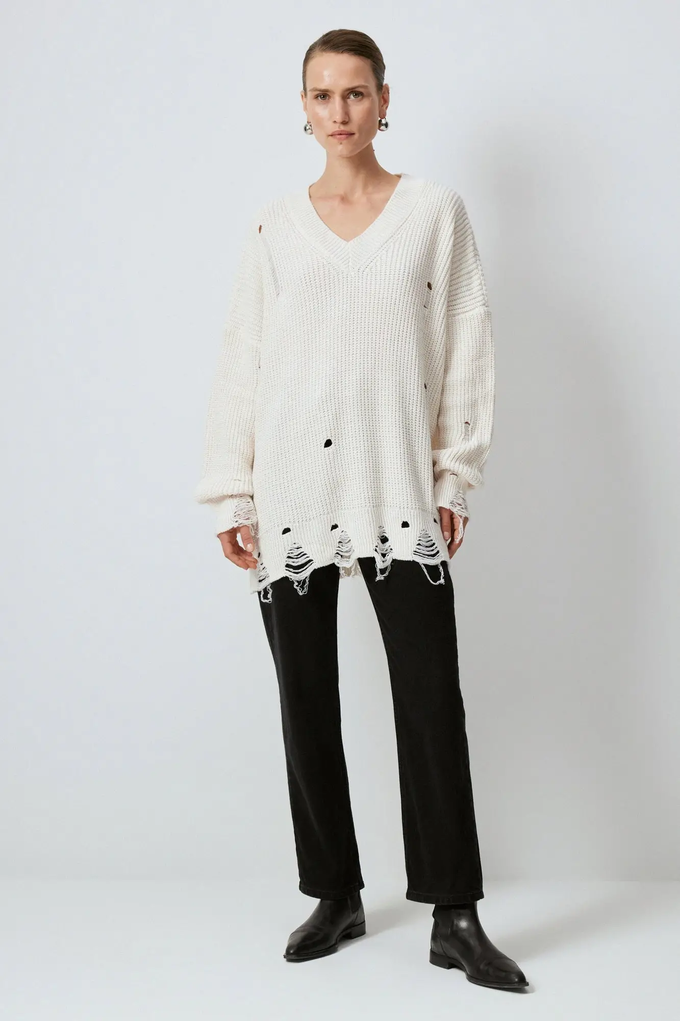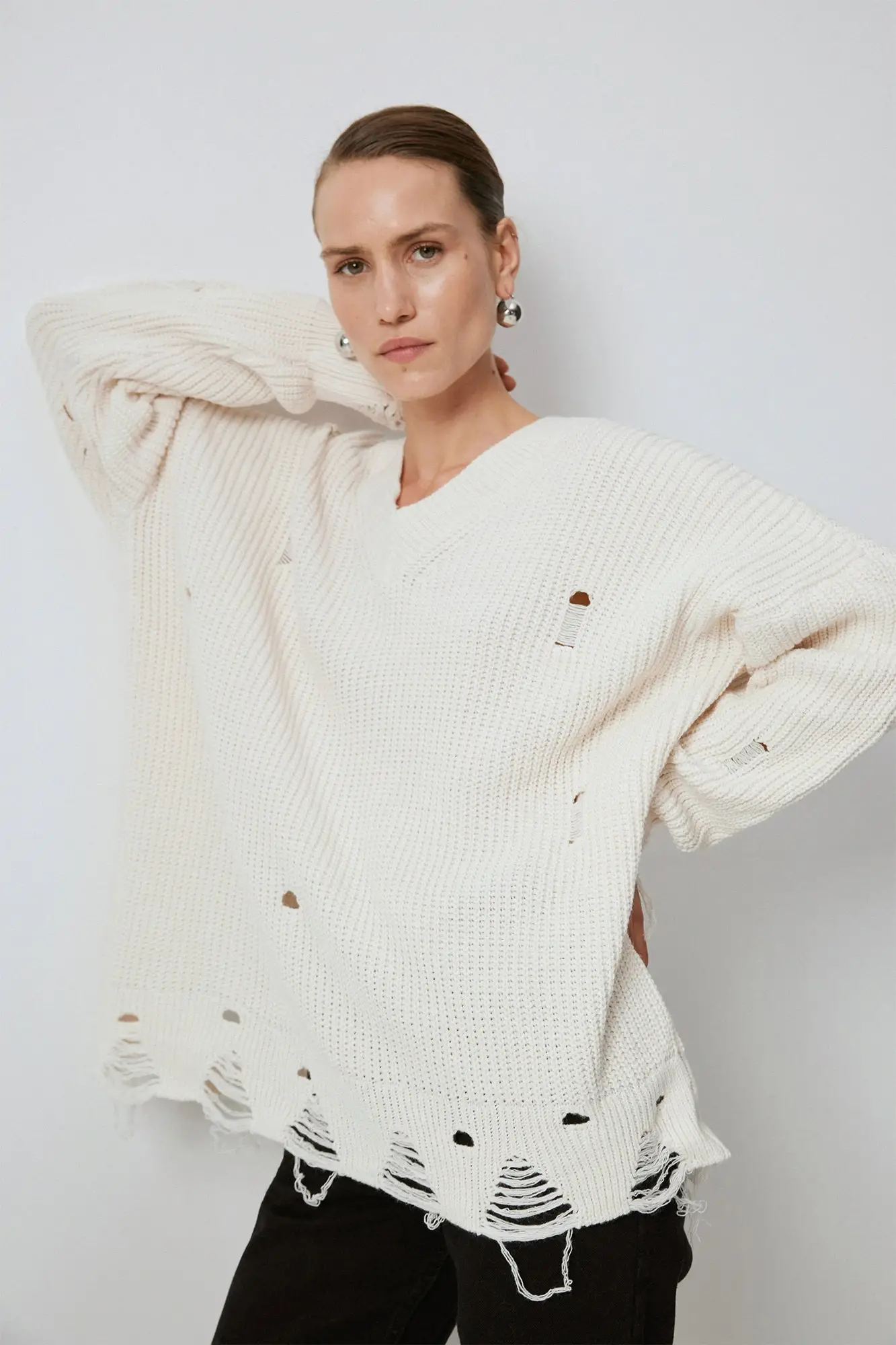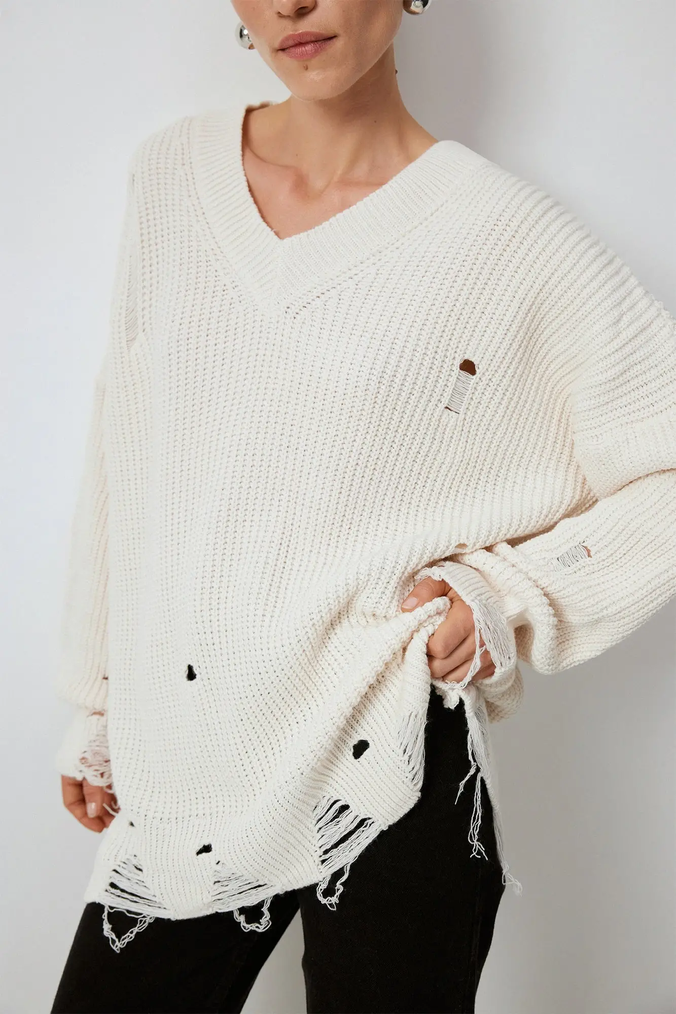 Touche V Yaka Yırtık Detaylı Kazak 24F1TD006