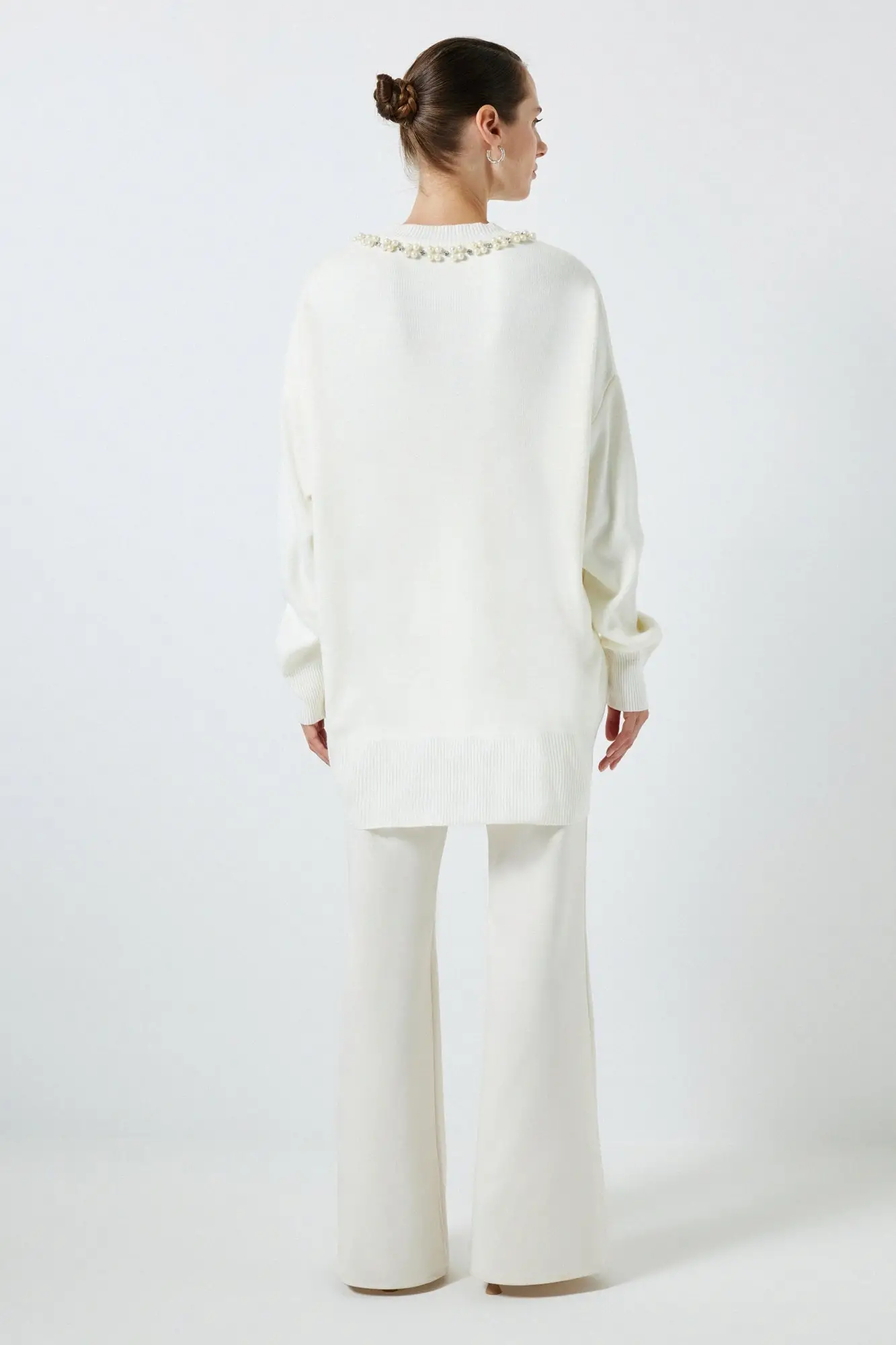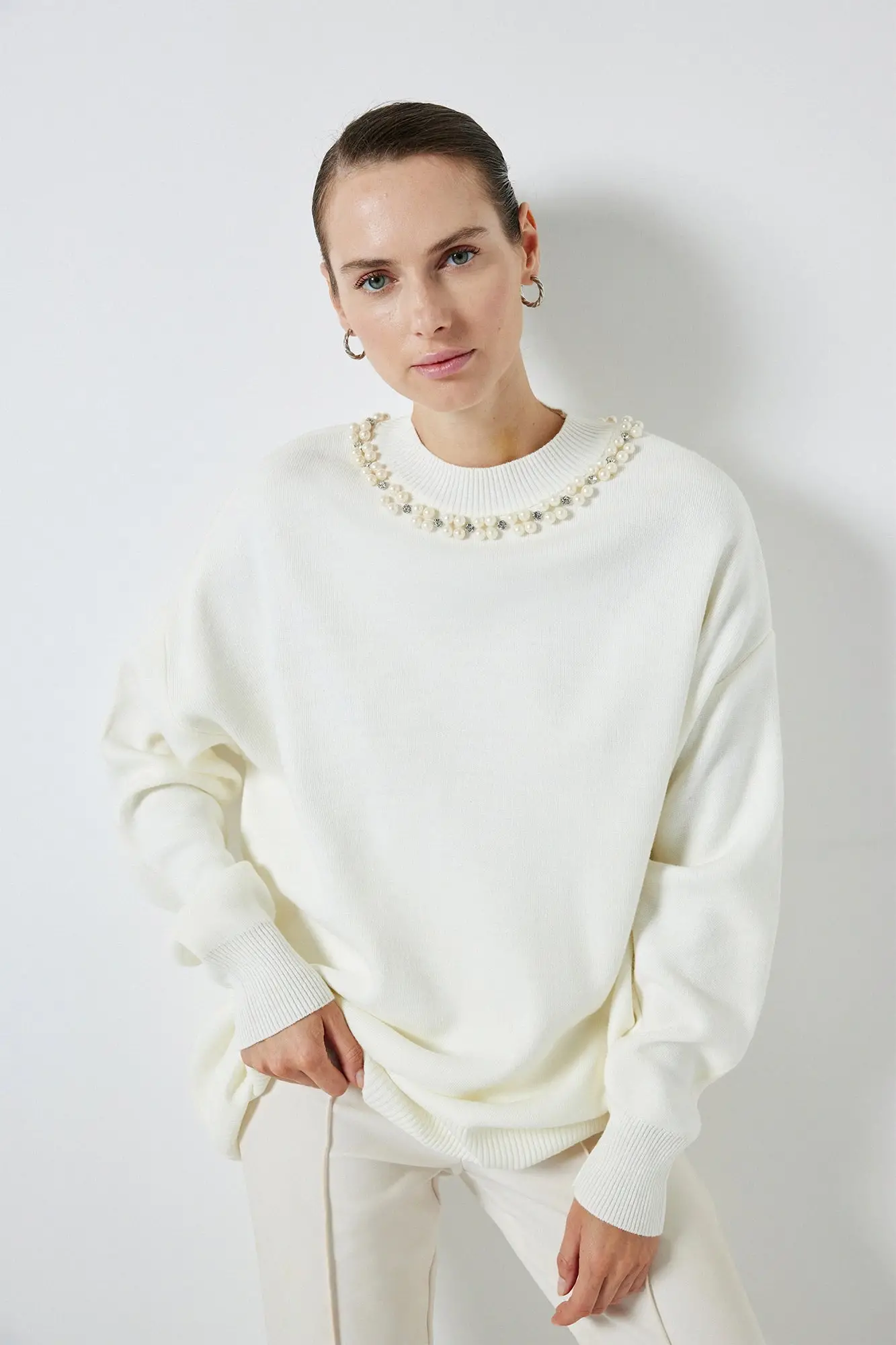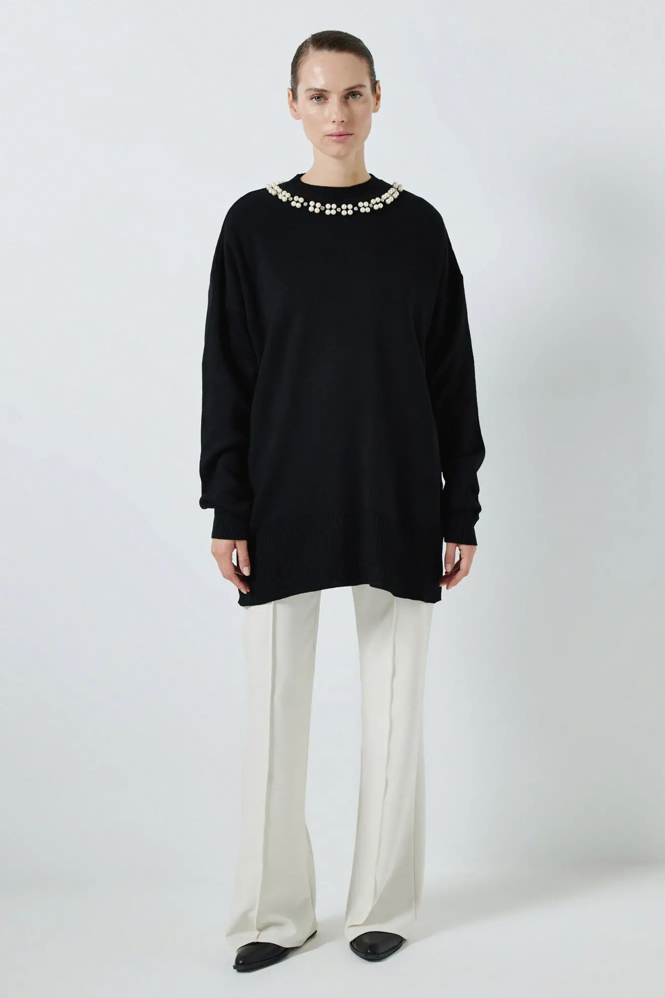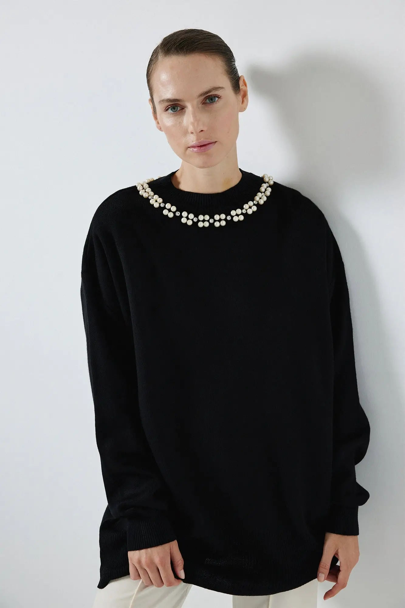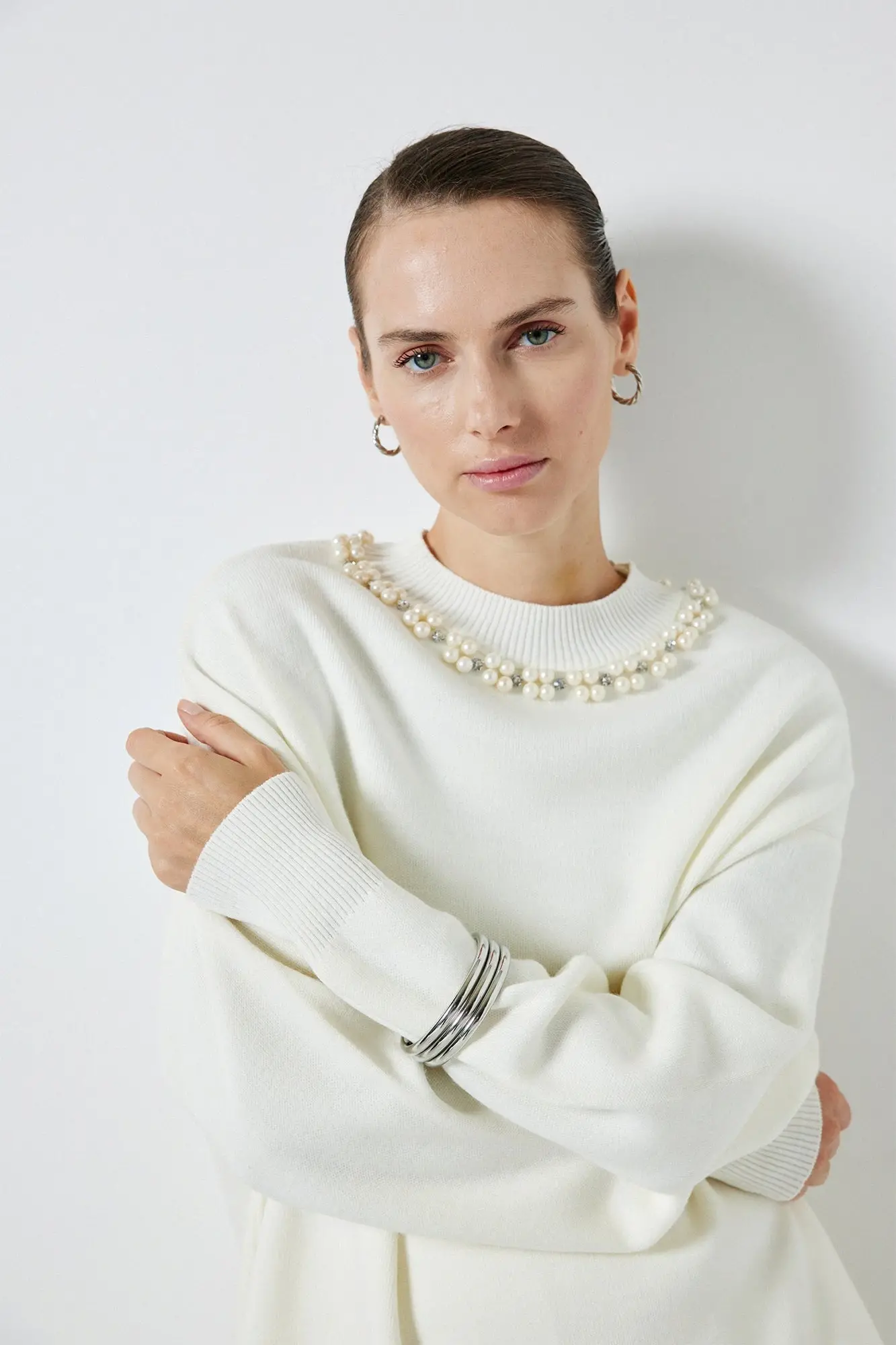 Touche Yakası İncili Triko Kazak 24F1XD053