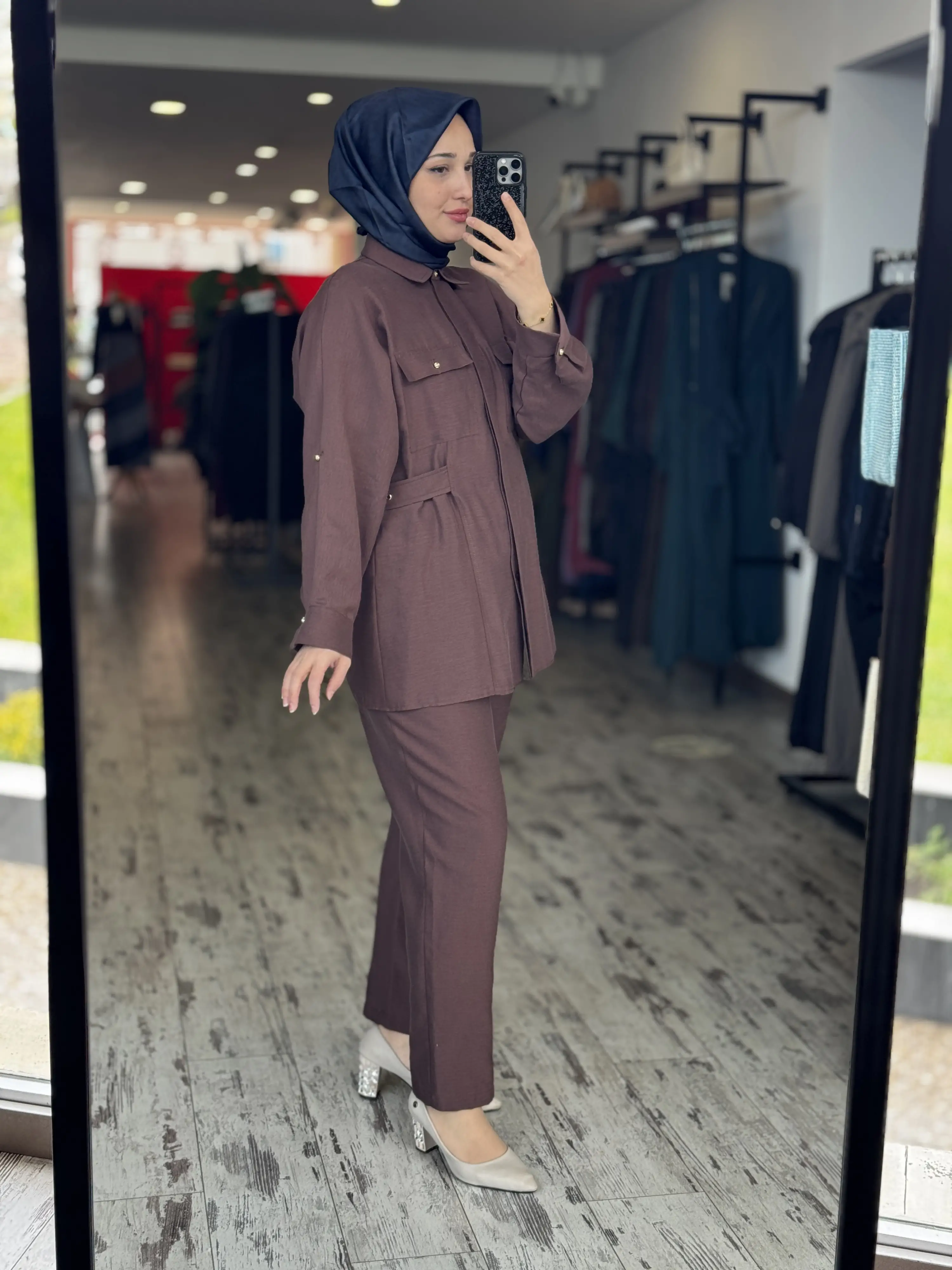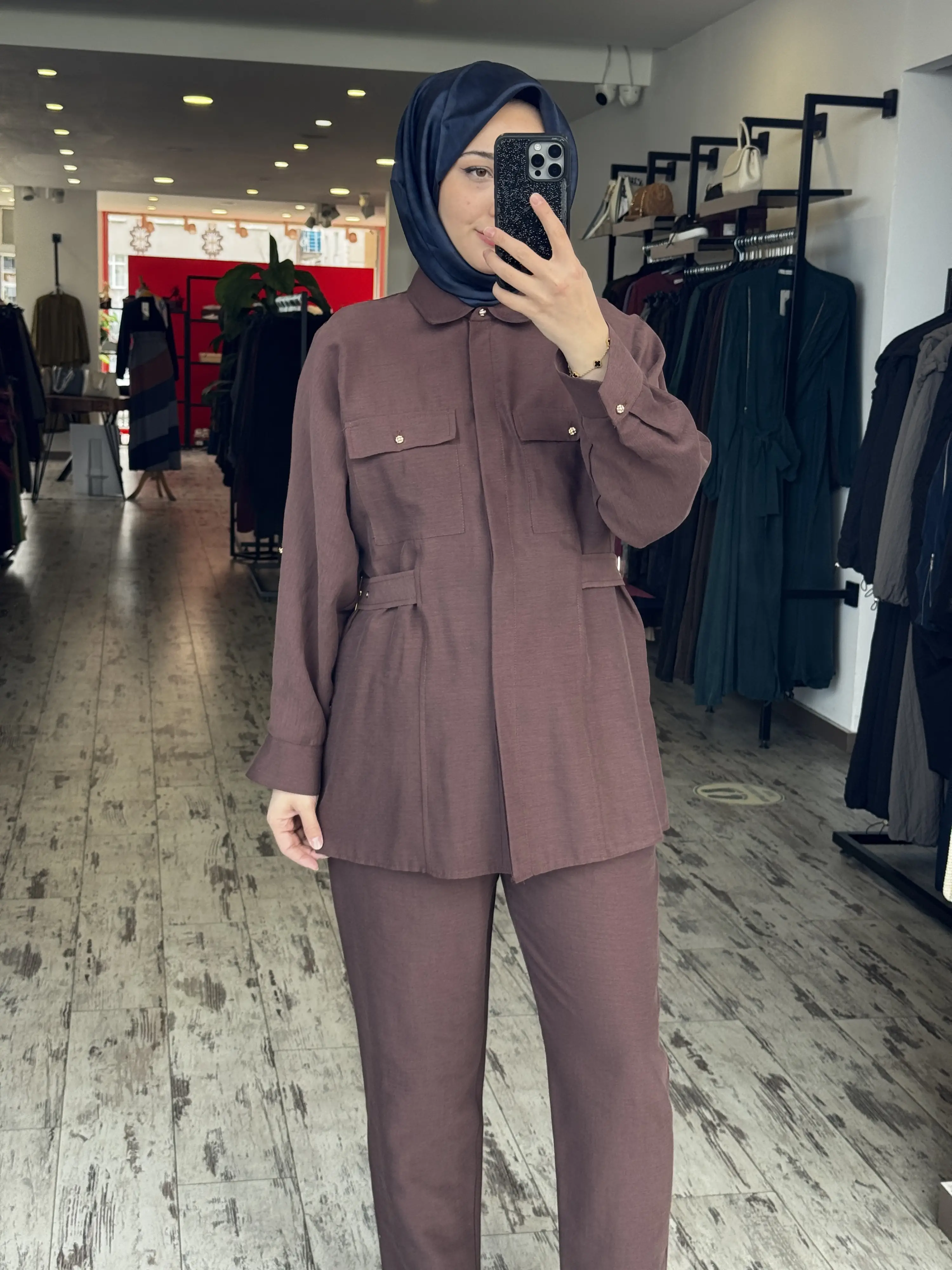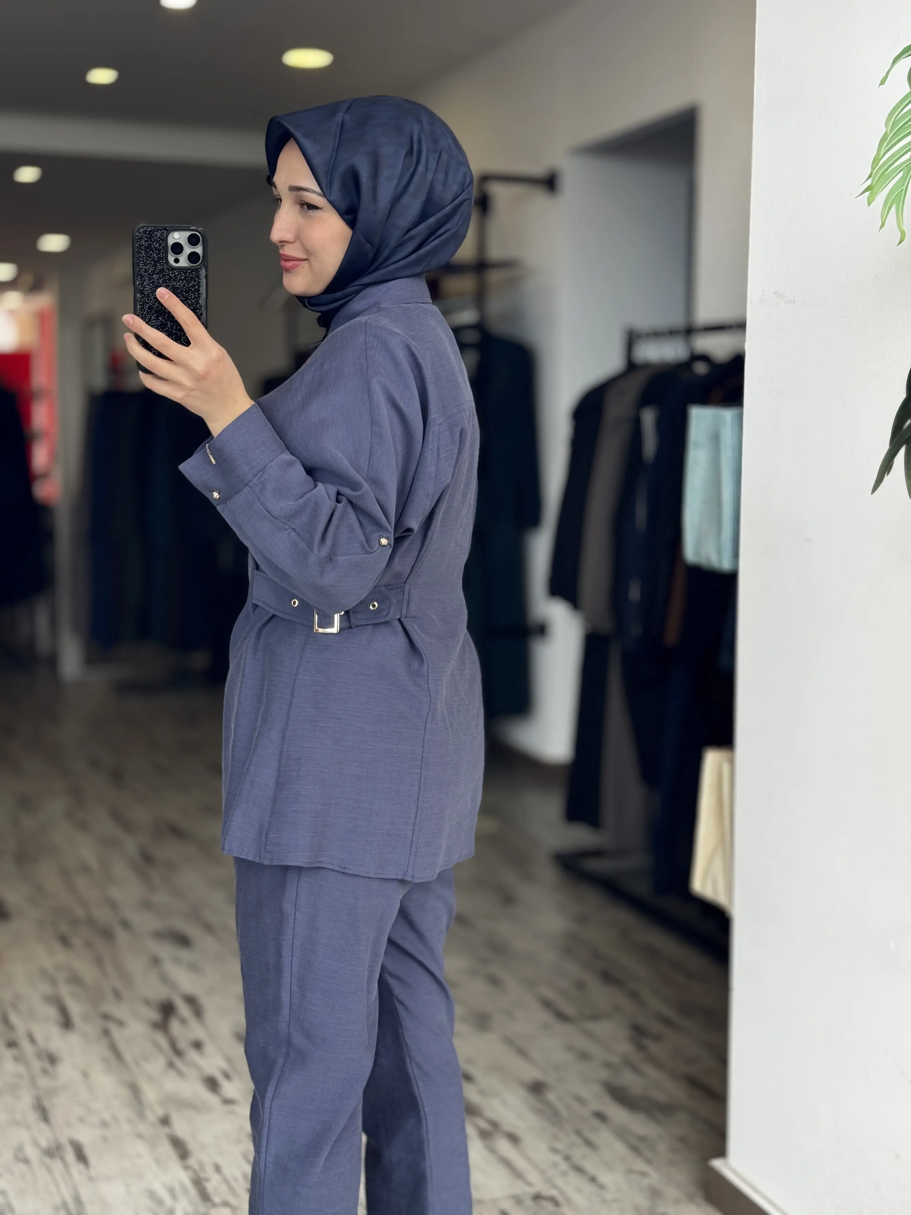 ÜRÜN BELİ KEMER DETAYLI KETEN CEKET PANTOLON TAKIMDIR