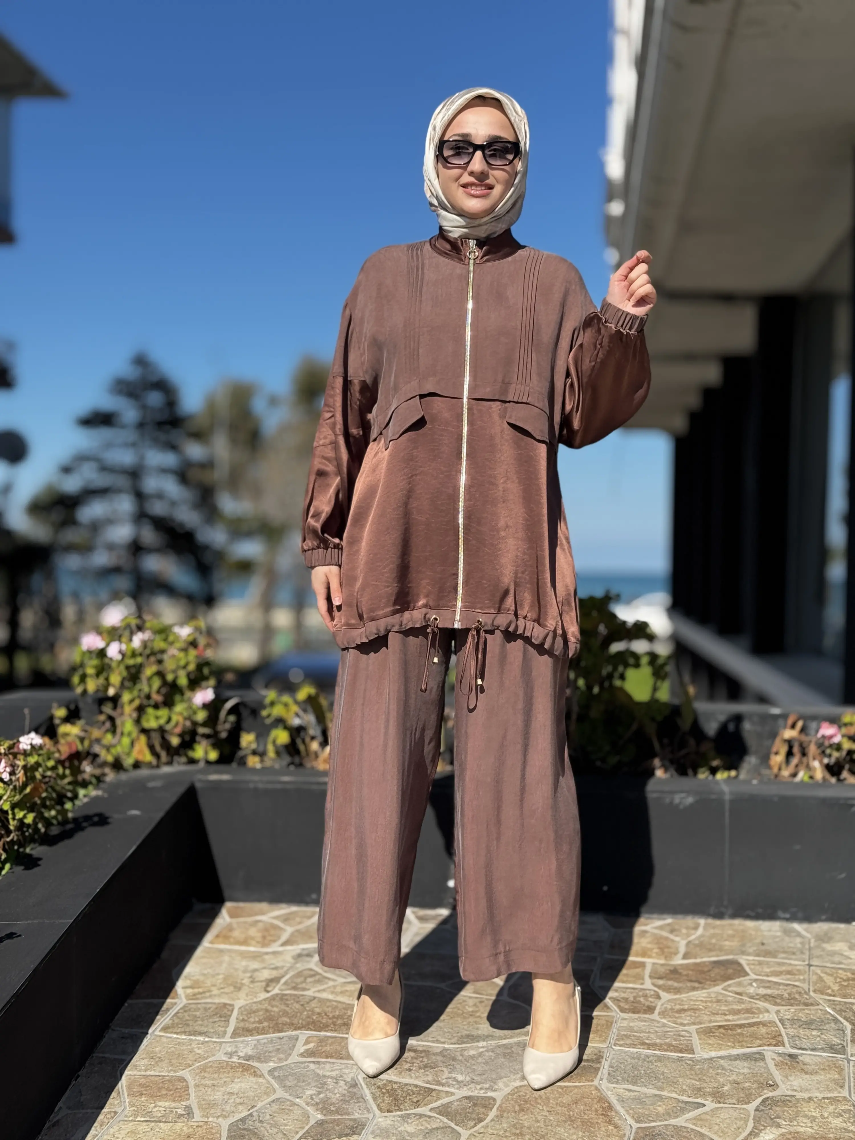Ghisa Saten Kumaş Parçalı Nervürlü Kap Pantolon Takım G9139