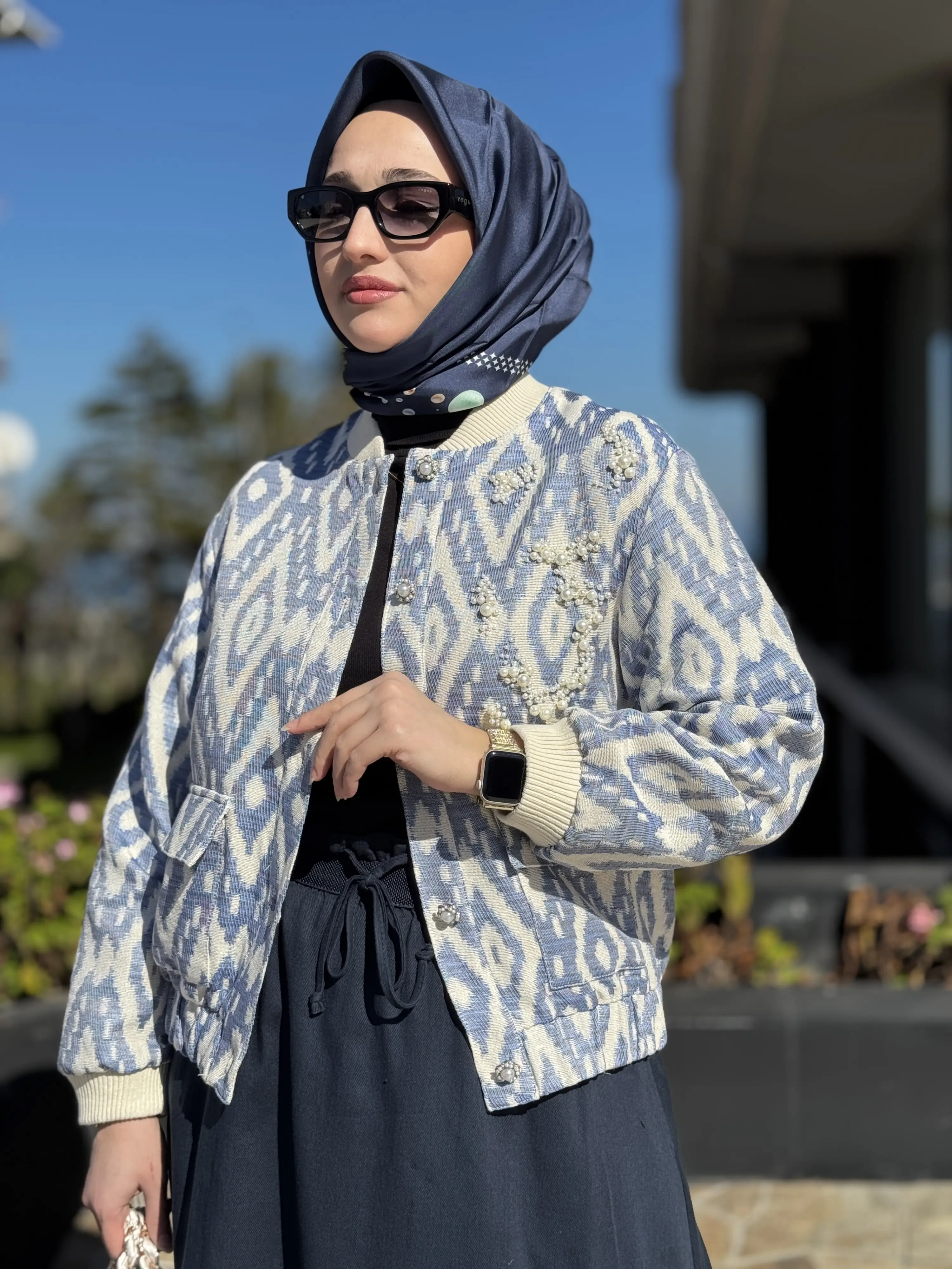 Kayra Boncuk İşlemeli Desenli Bumber Ceket