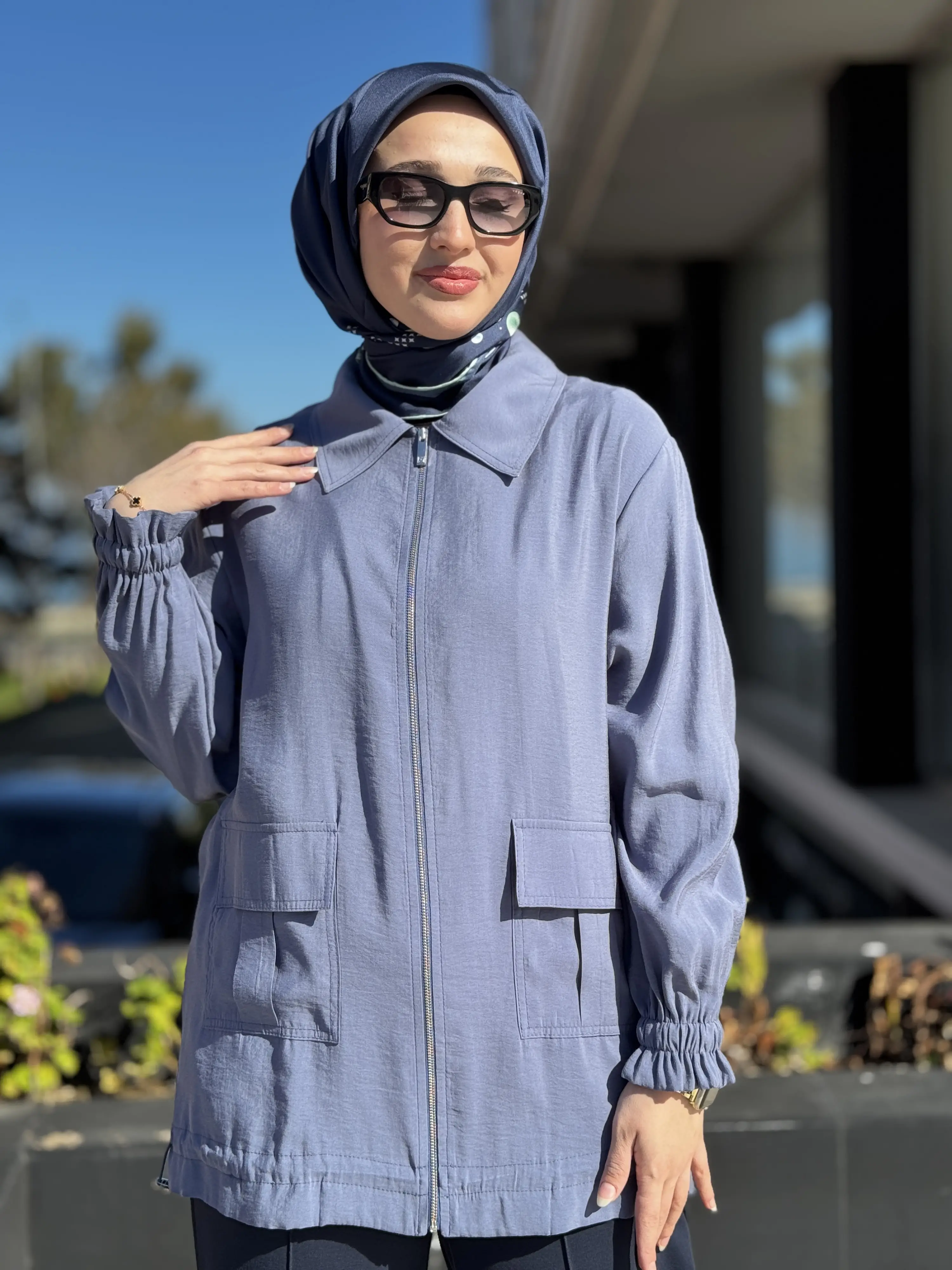 Kayra Kolları Büzgü Detaylı Cepli Modal Ceket