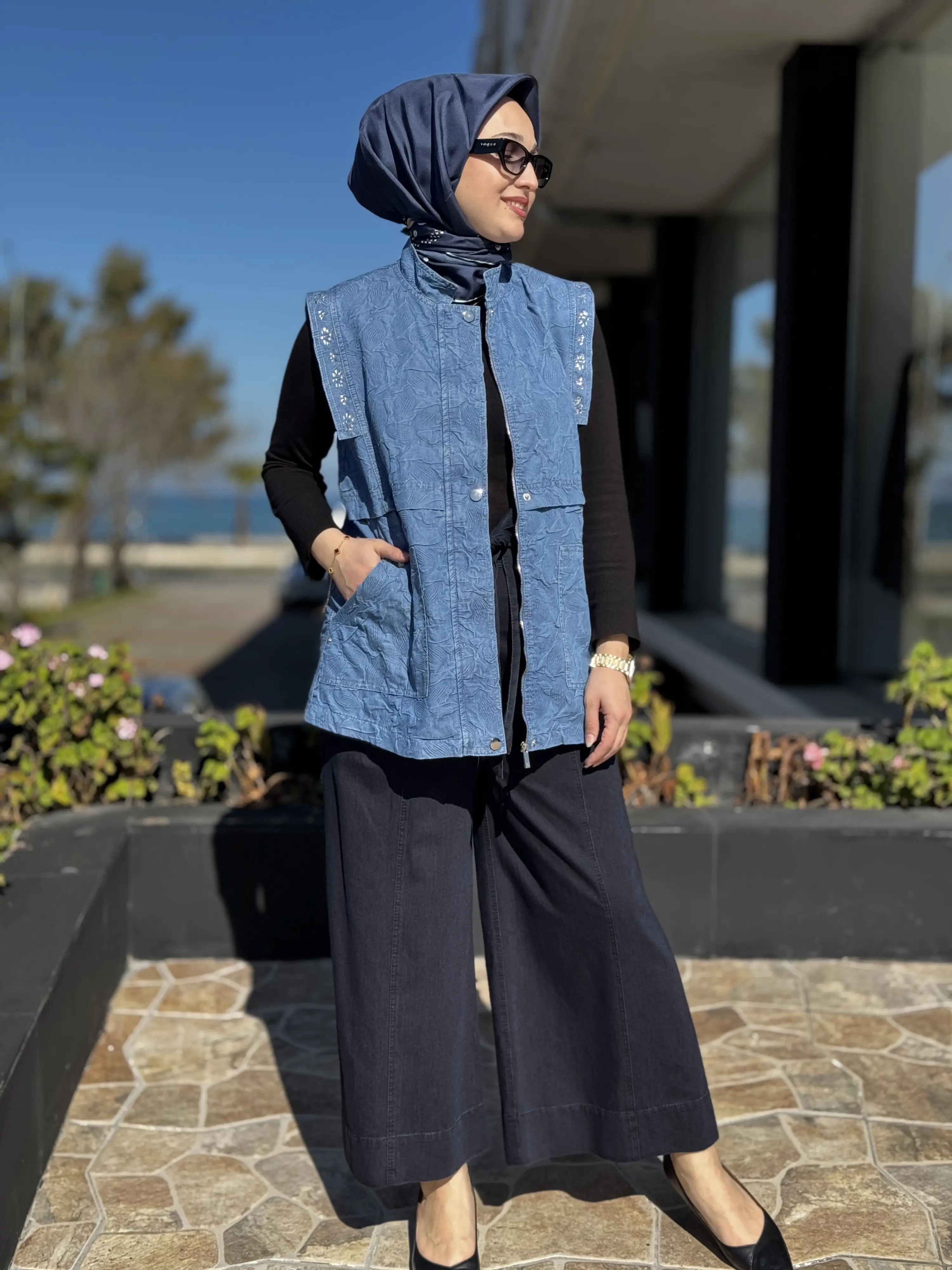 Kayra Taşlı Kabartmalı Denim Yelek KA20001