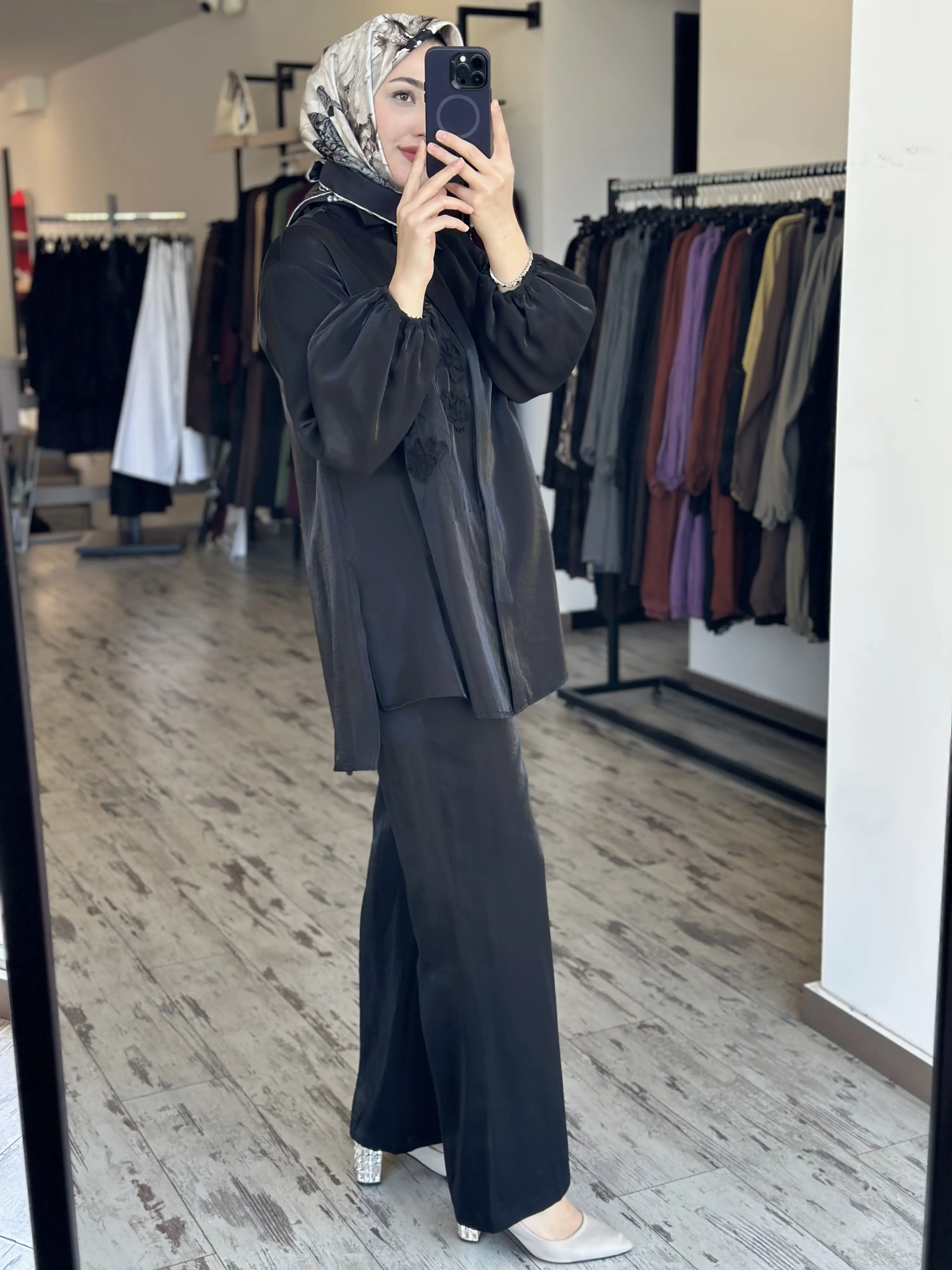 Kahma Sırtı ve Kolları Lazer Kesimli Ceket Pantolon Takım