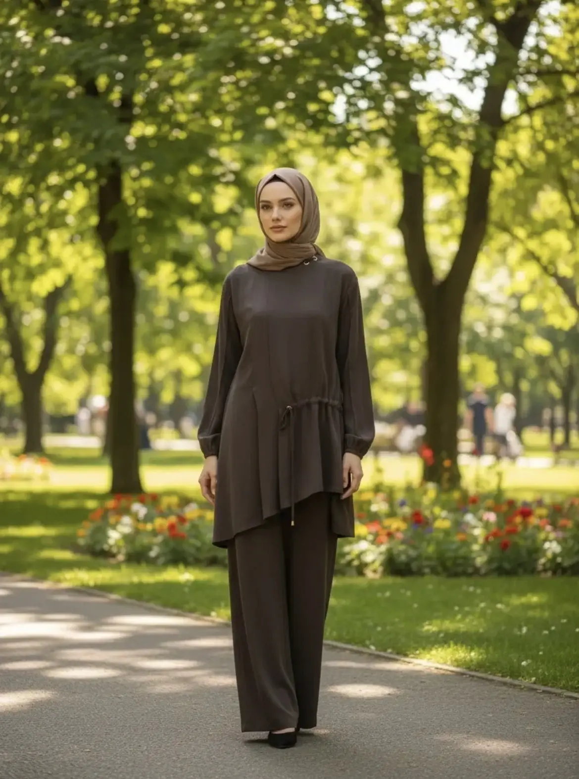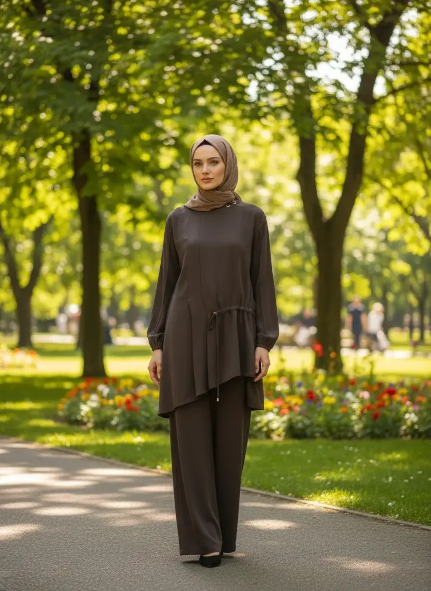 Clande Cupra İpek Asimetrik Kesim Bluz Havuç Pantolon Takım