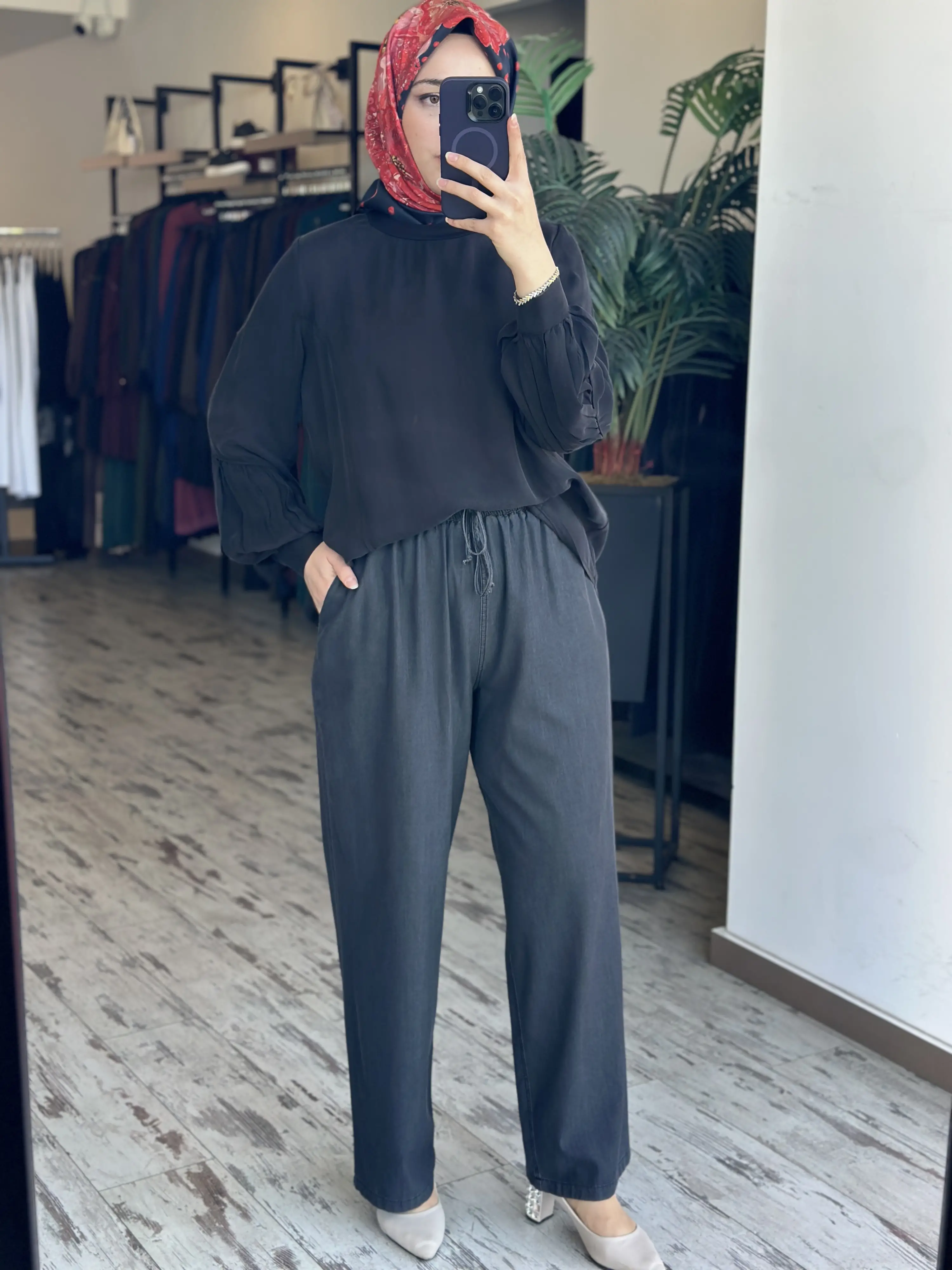 Kayra Beli Lastikli Tencel Kot Pantolon KA79055