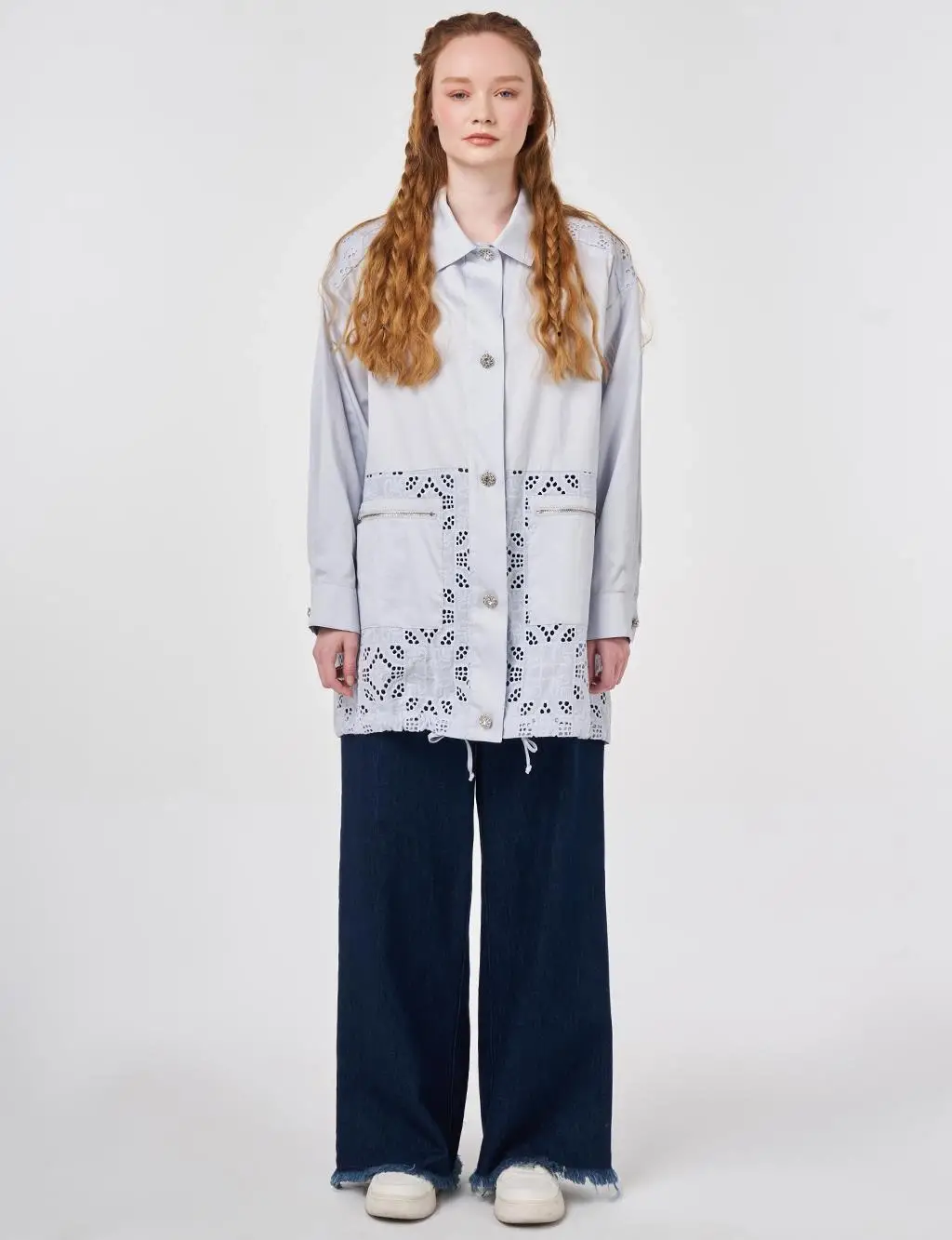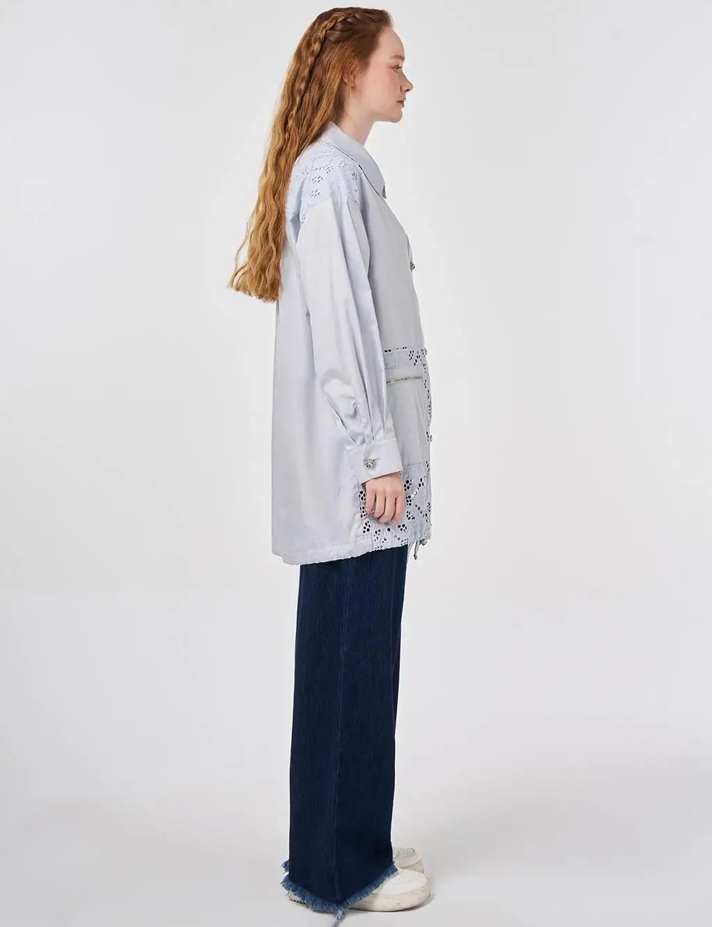 Kayra Dantel Detaylı Gömlek Yaka Düğmeli Ceket KA13043