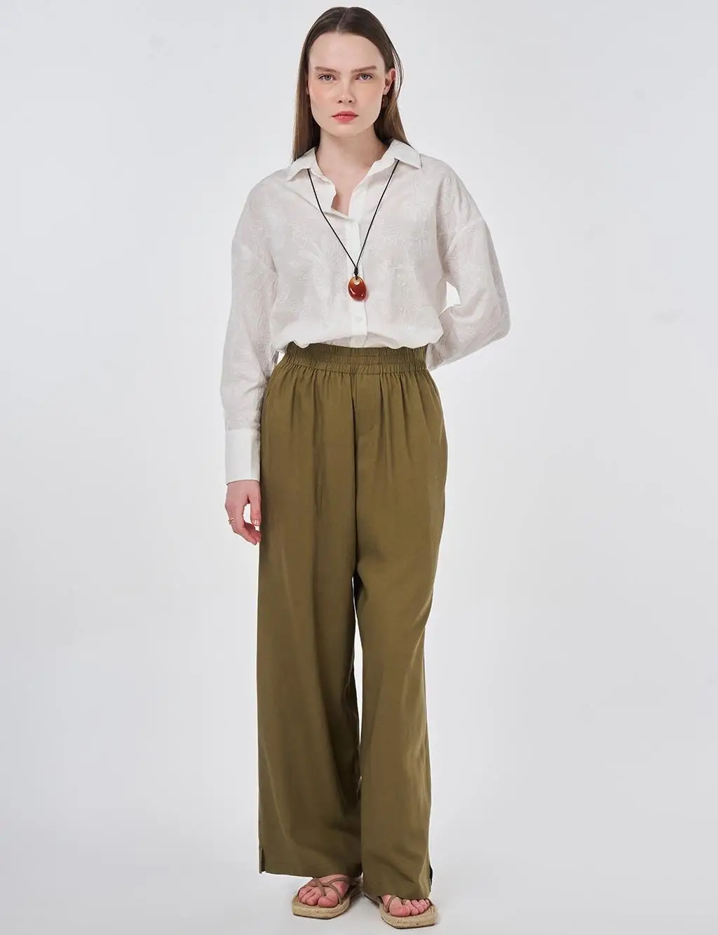 Kayra Beli Lastikli Keten Pantolon KA19026