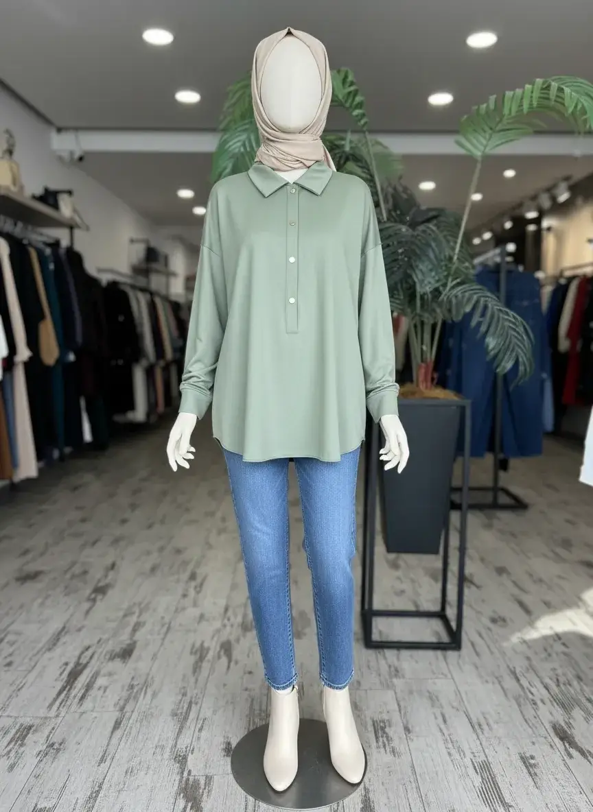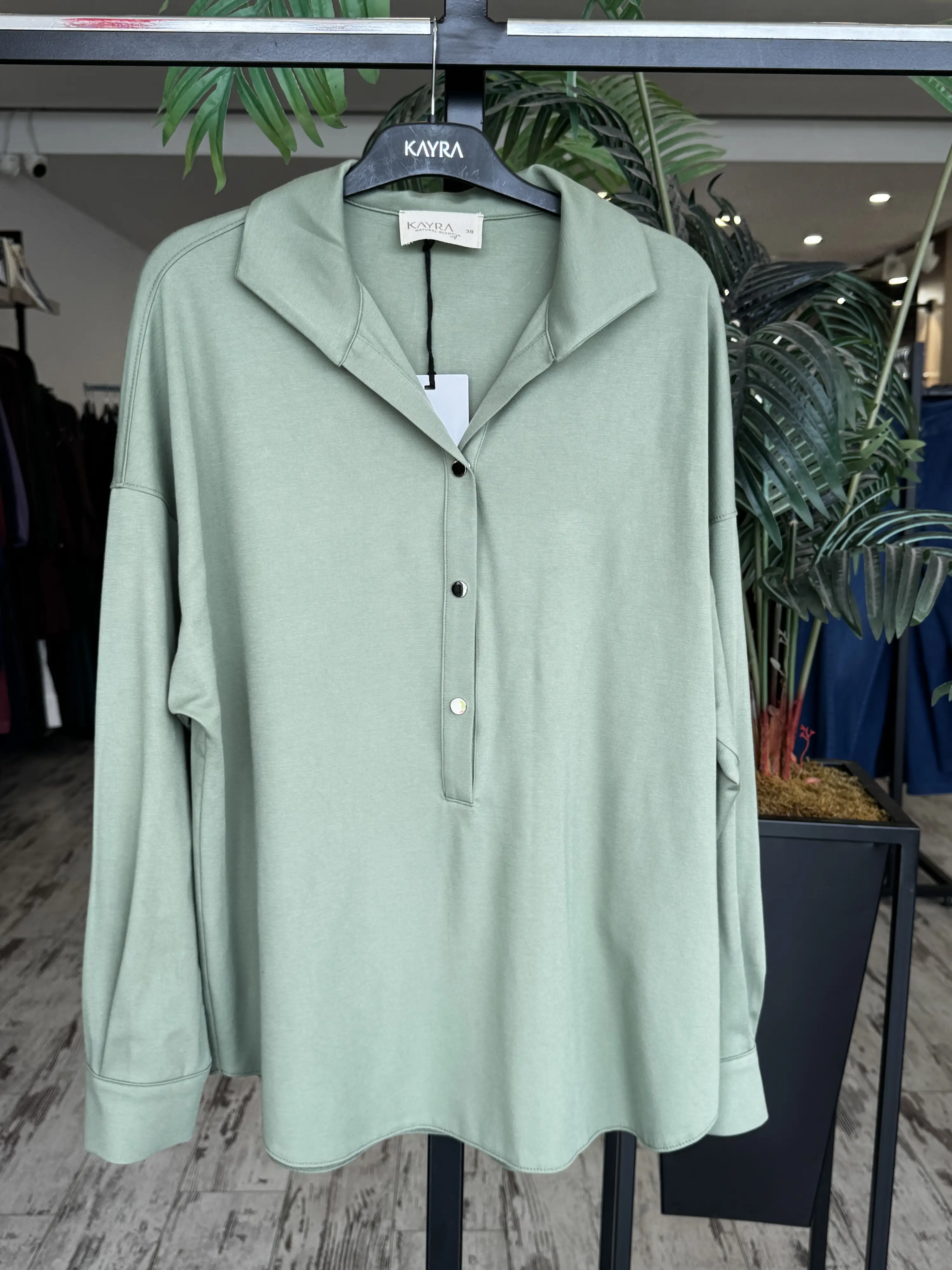 Kayra Önü Çıtçıtlı Gömlek Yaka Penye Bluz KA31010