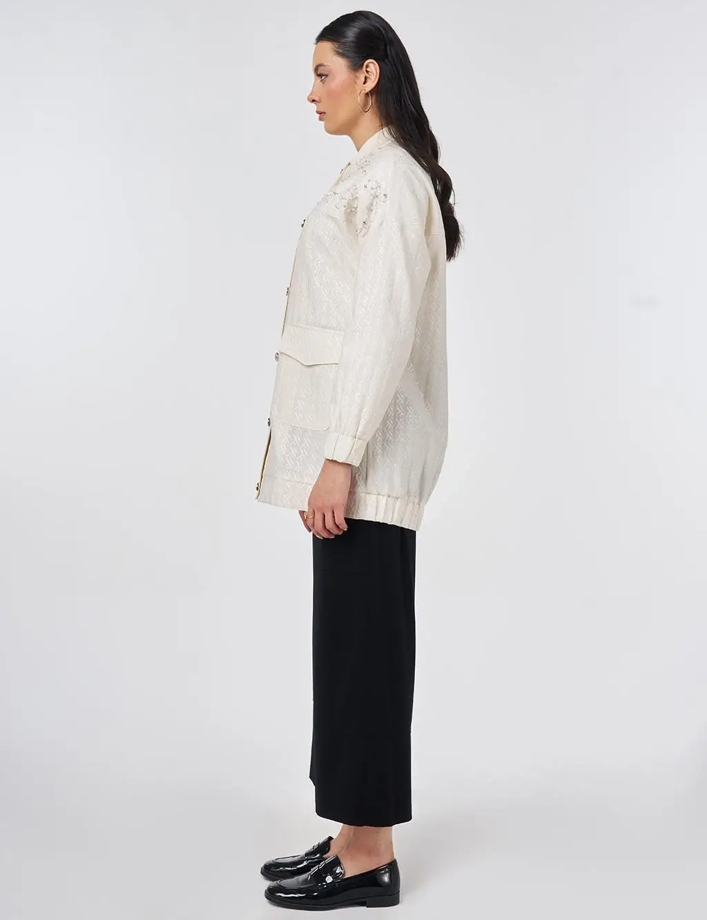 Kayra Taş Detaylı Jakarlı Düğmeli Şık Ceket KA13012
