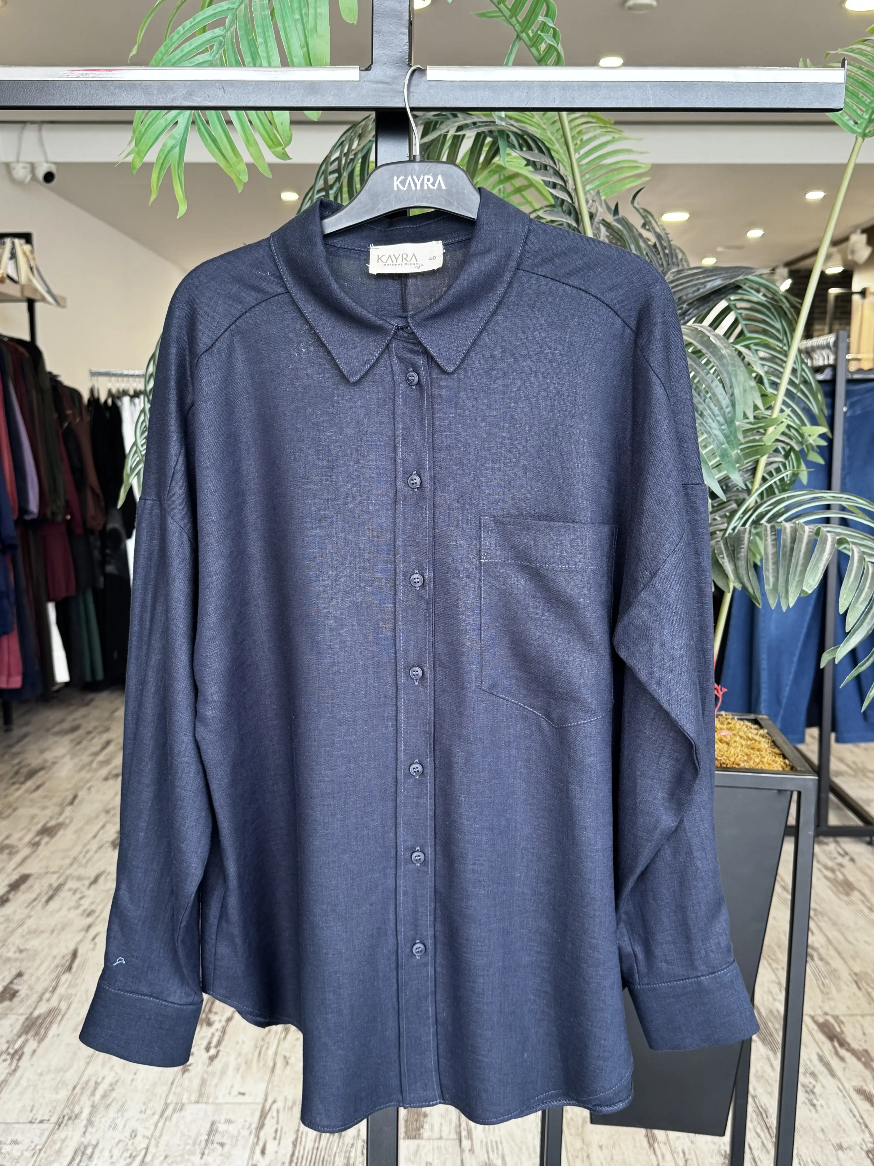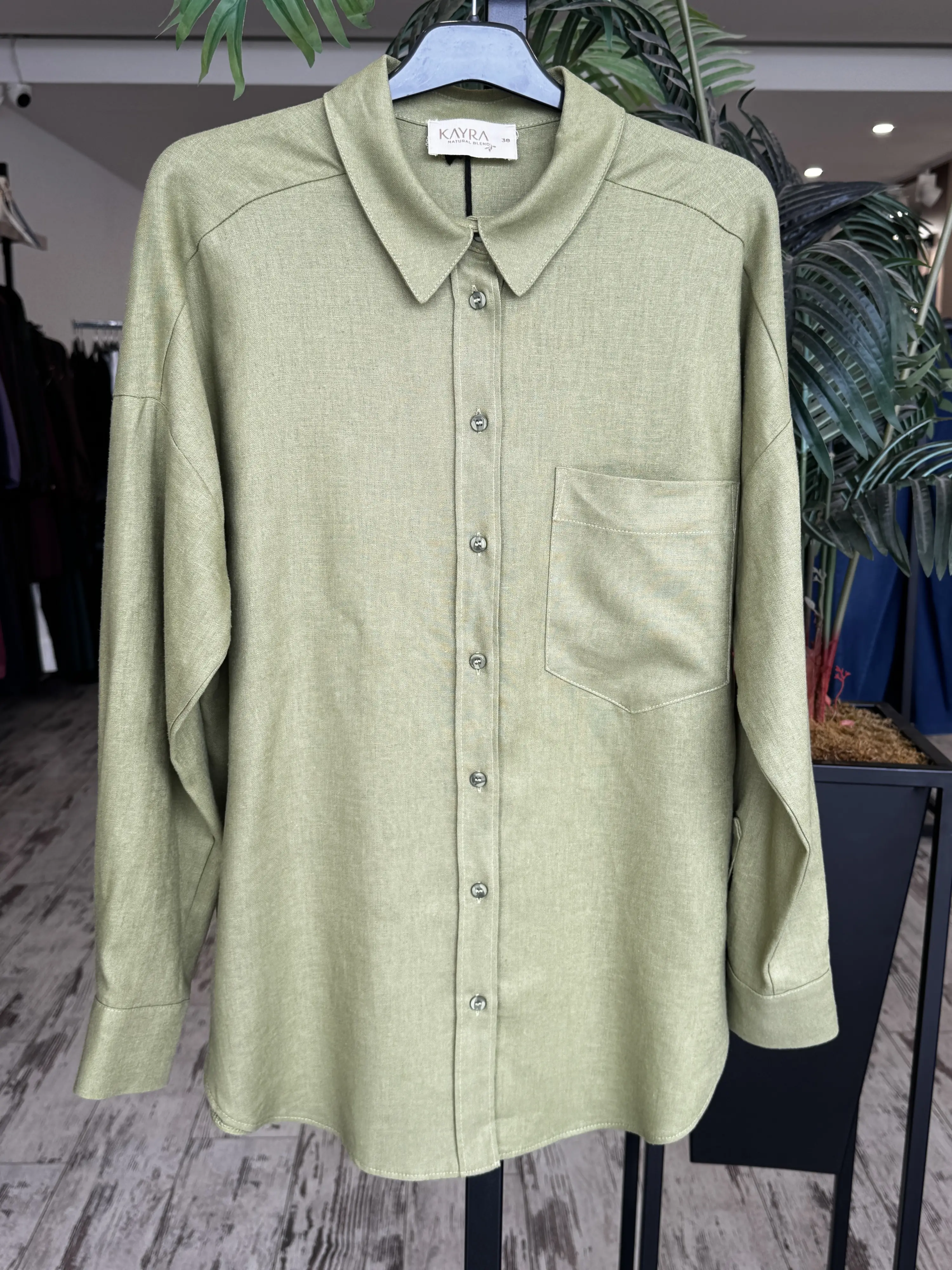Kayra Yaka Cepli Basic Keten Gömlek KA21134