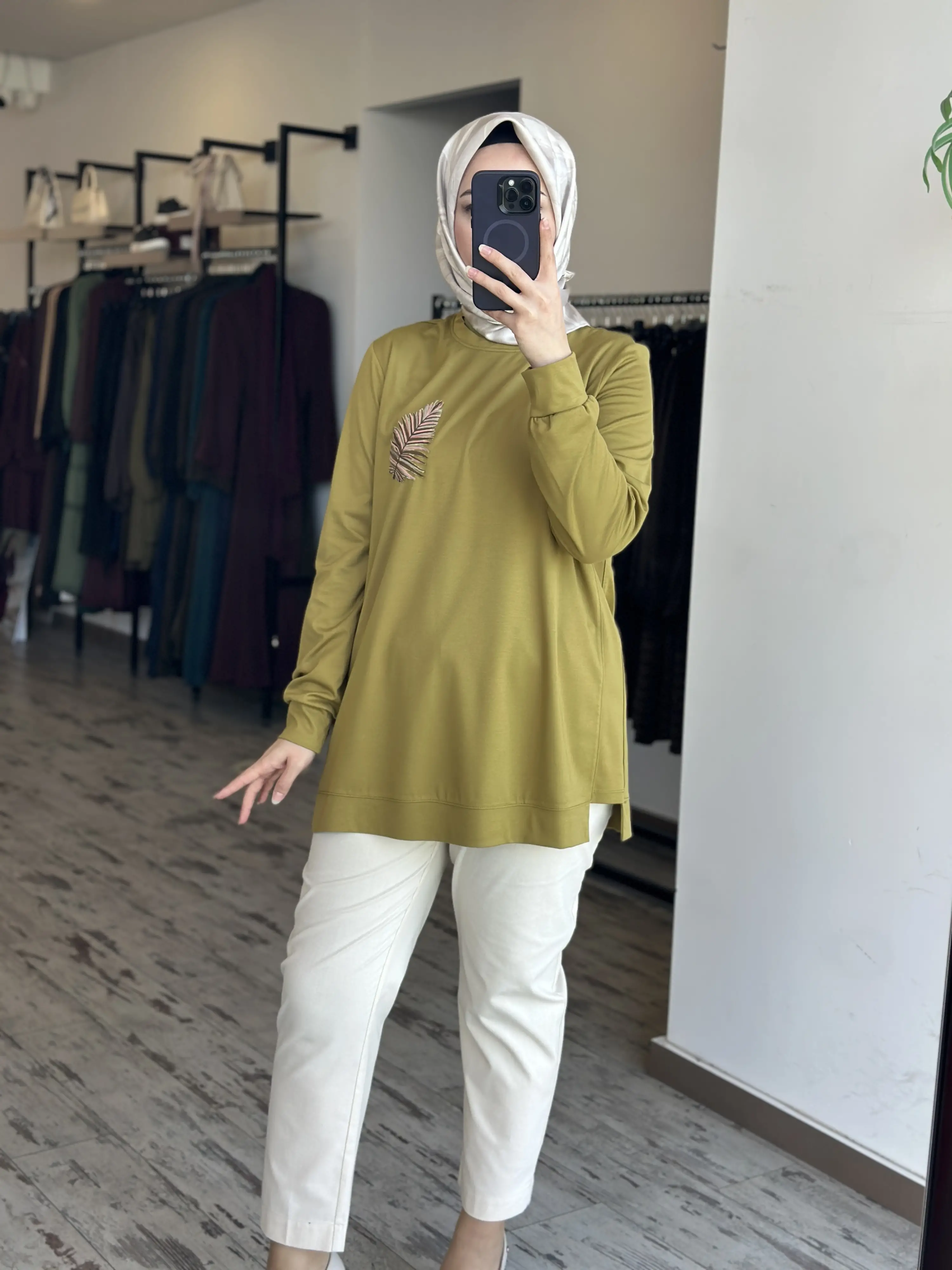 Kayra Yakası Nakış Detaylı Basic SweatShirt KA31019