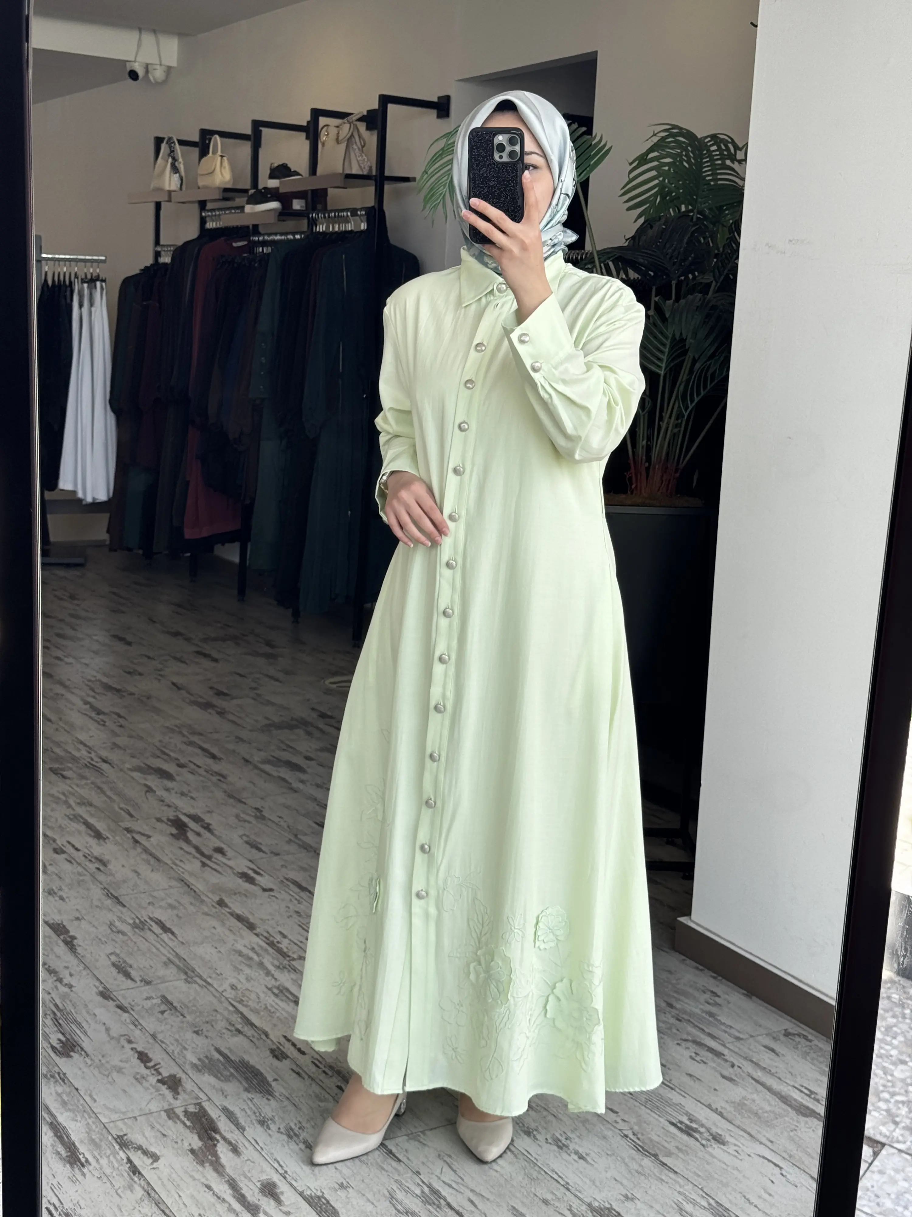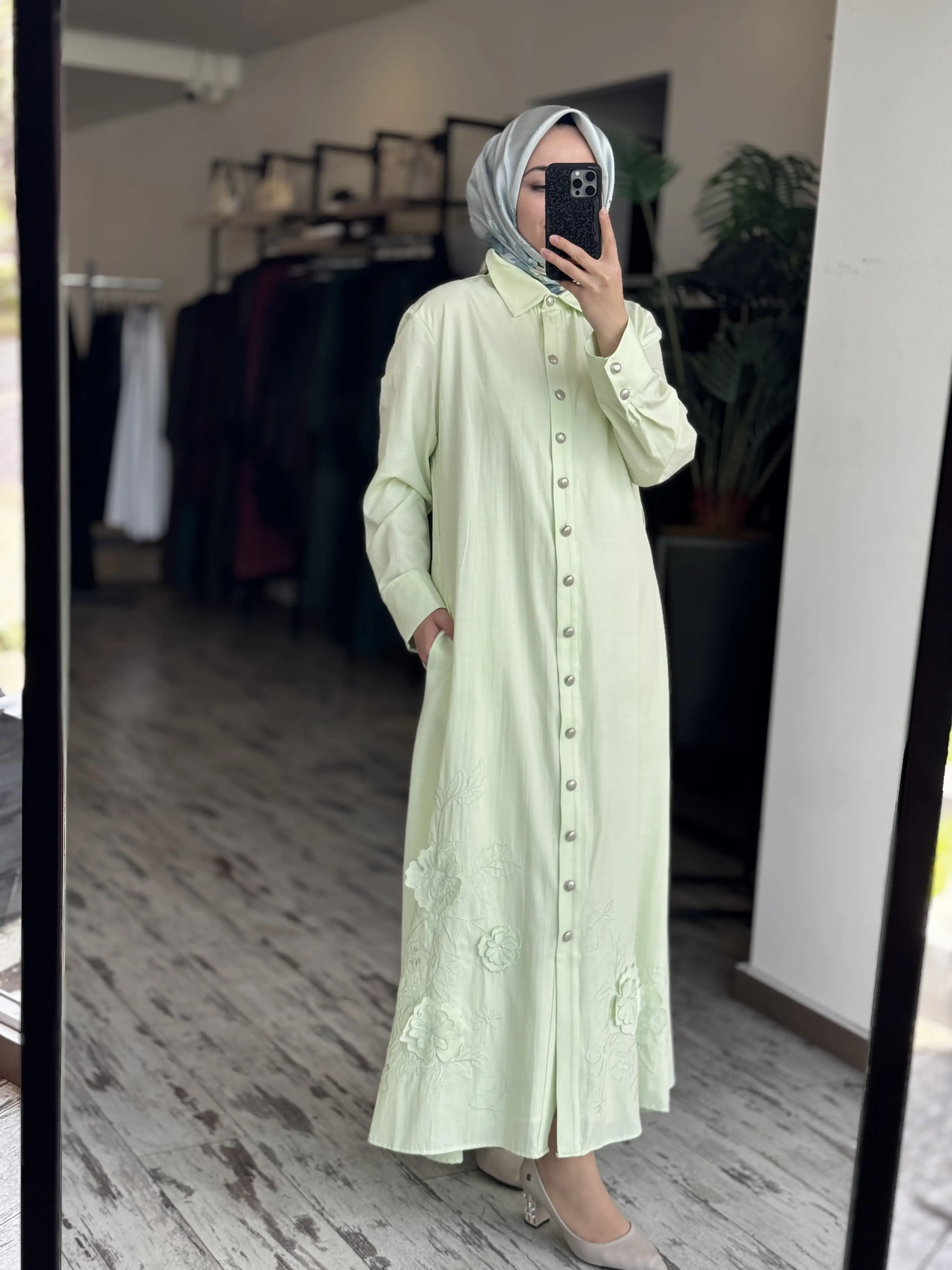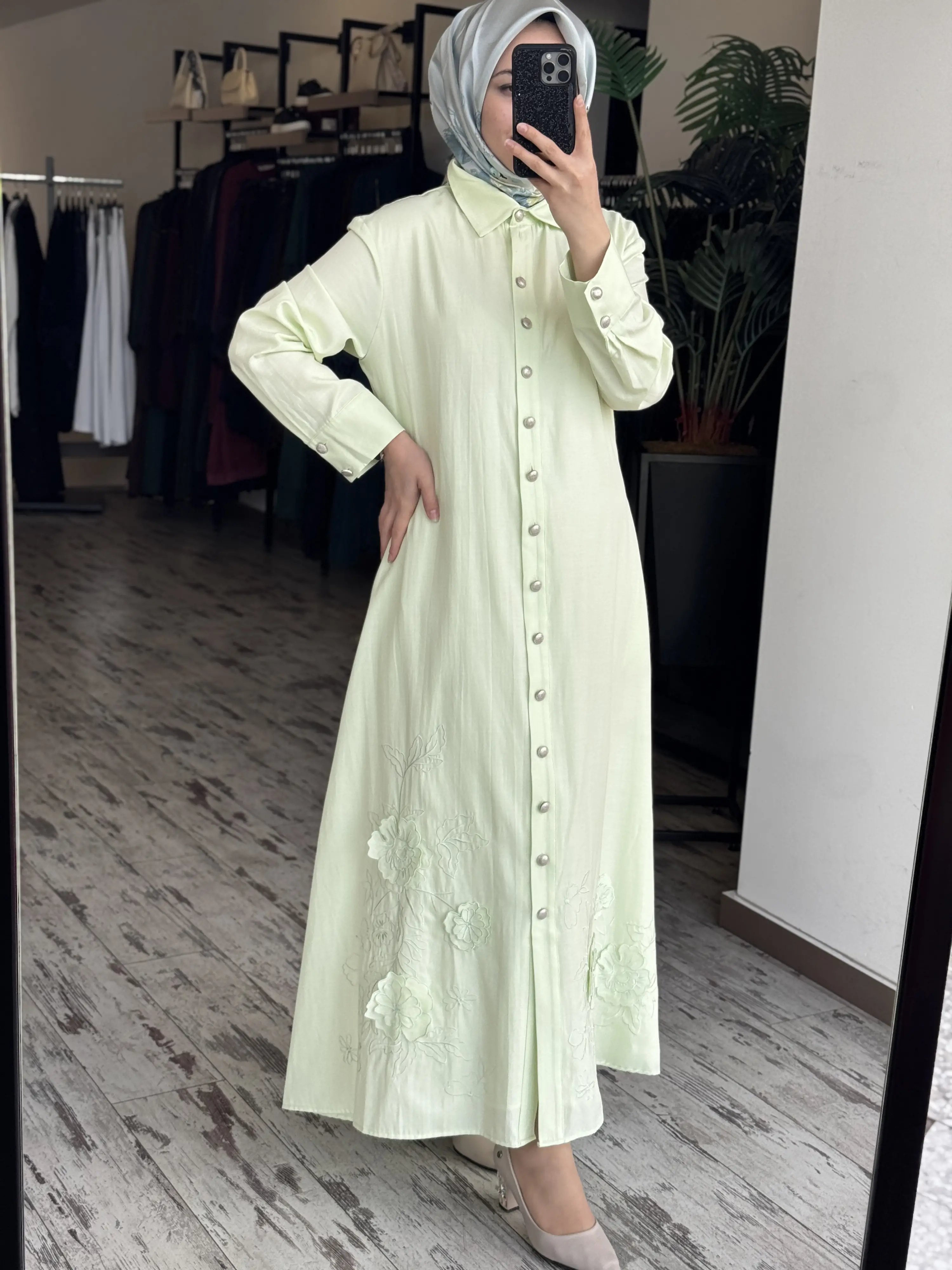 MAQ Etek Ucu Nakışlı Düğmeli Poplin Gömlek Elbise