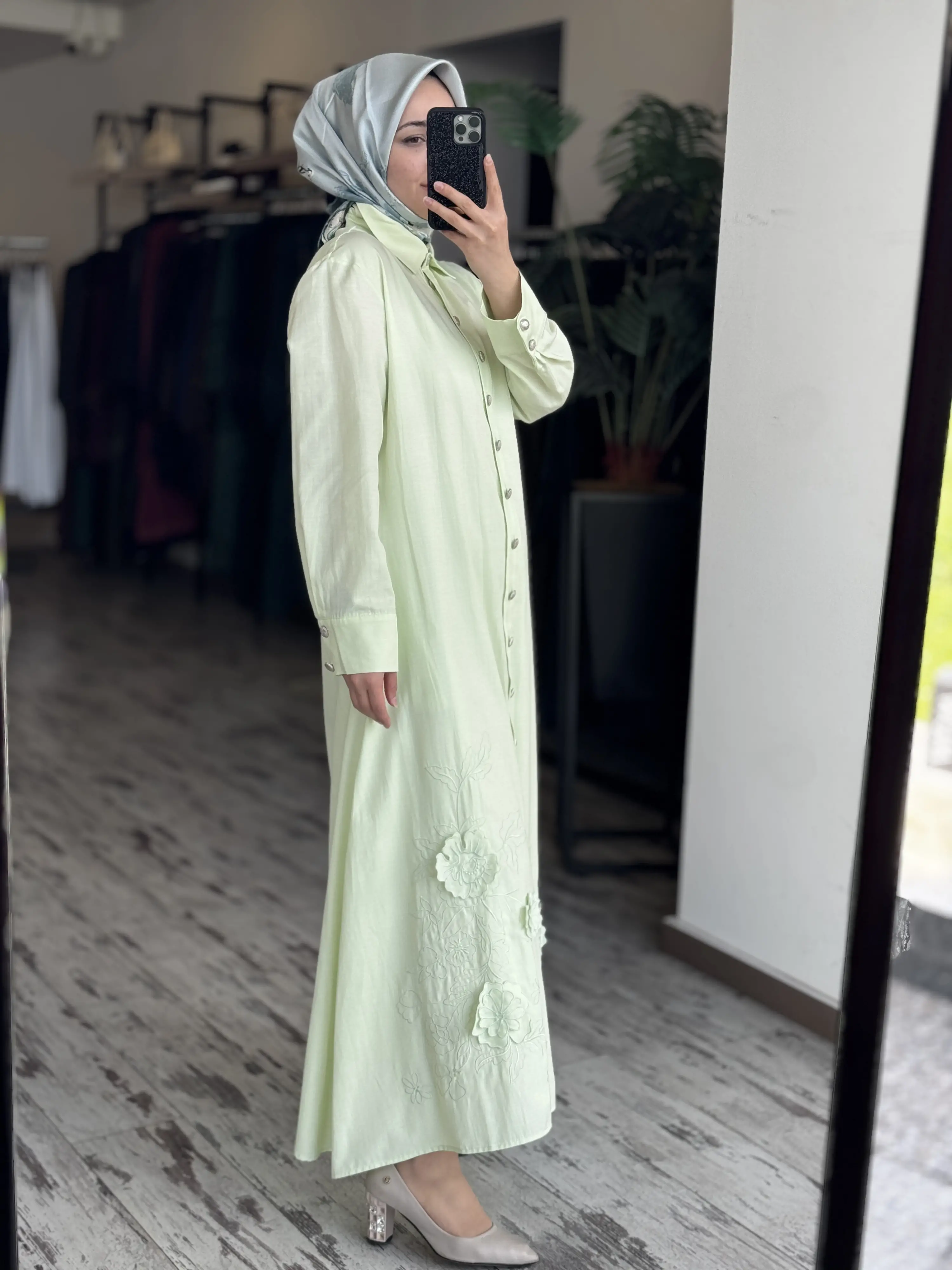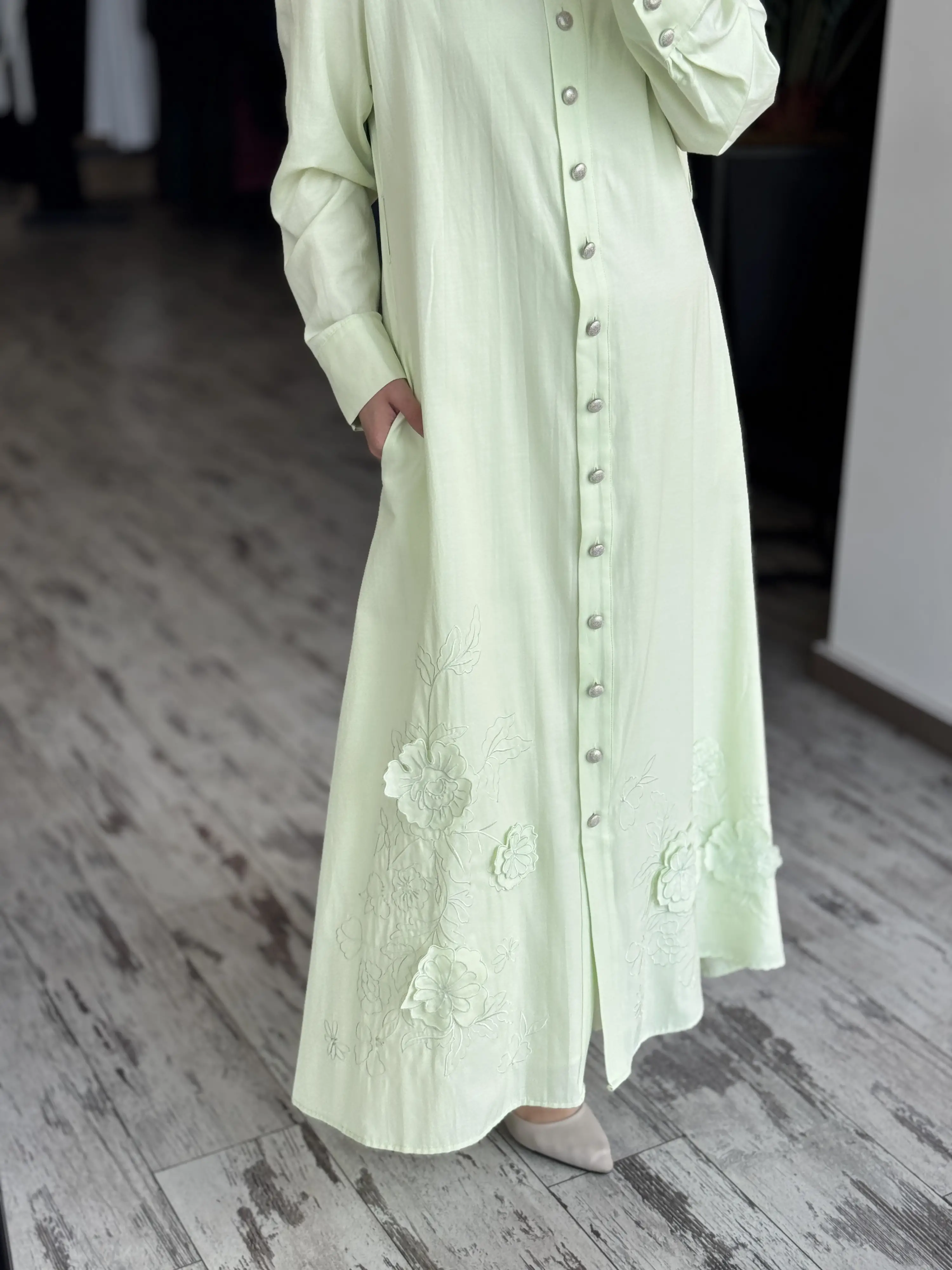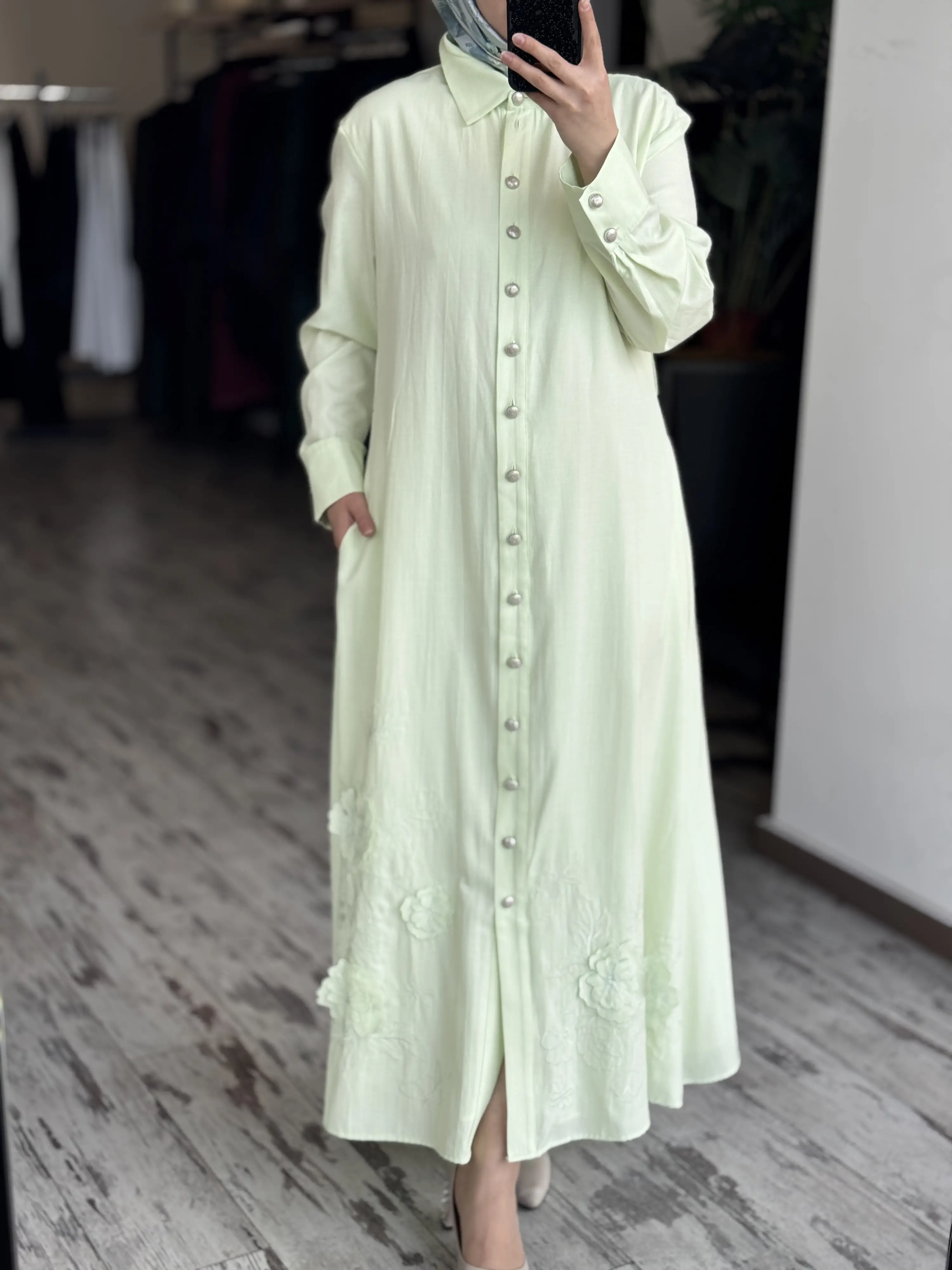 MAQ Etek Ucu Nakışlı Düğmeli Poplin Gömlek Elbise