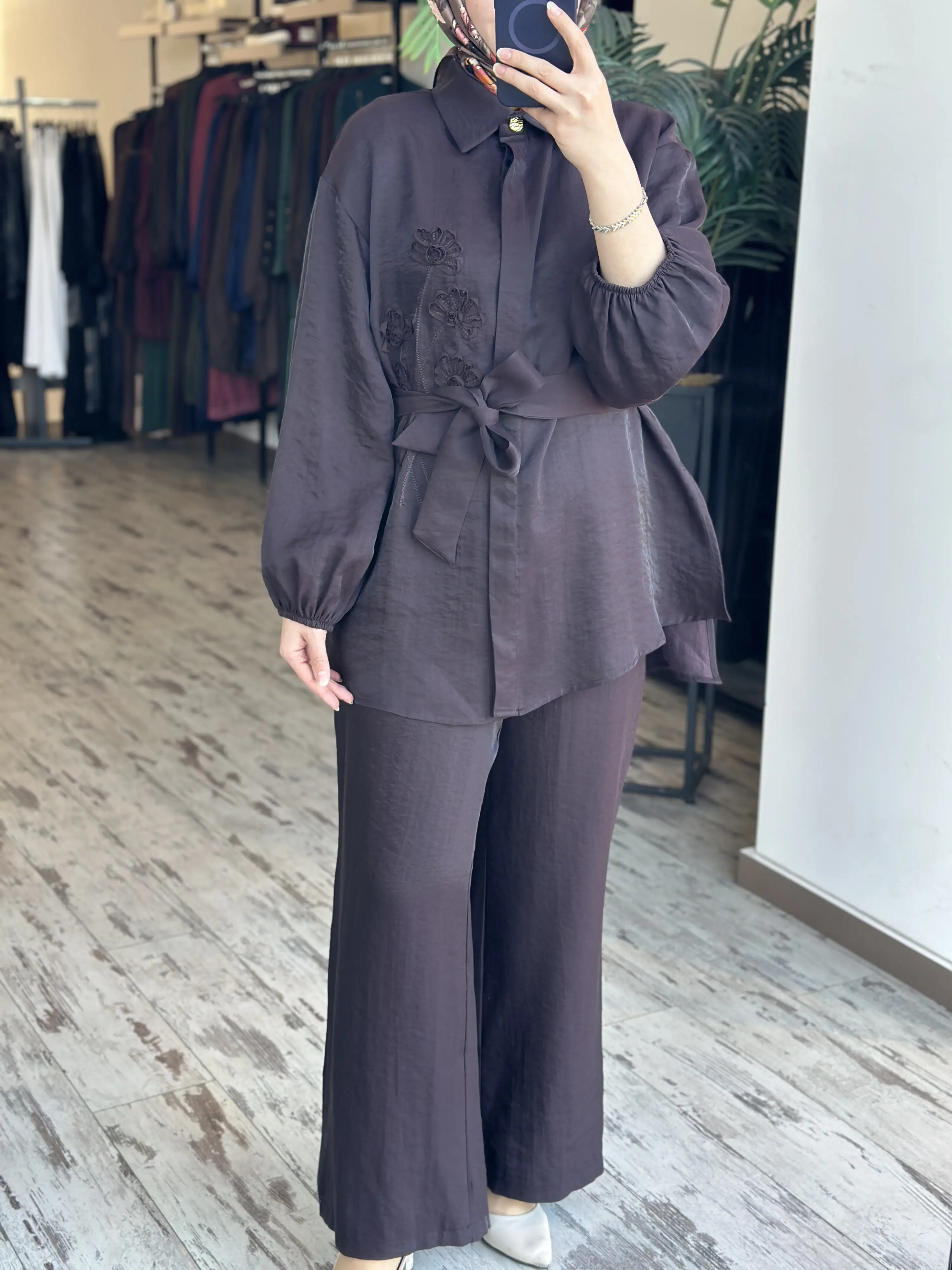 MAQ Organze Nakış İşlemeli Gömlek Pantolon Takım