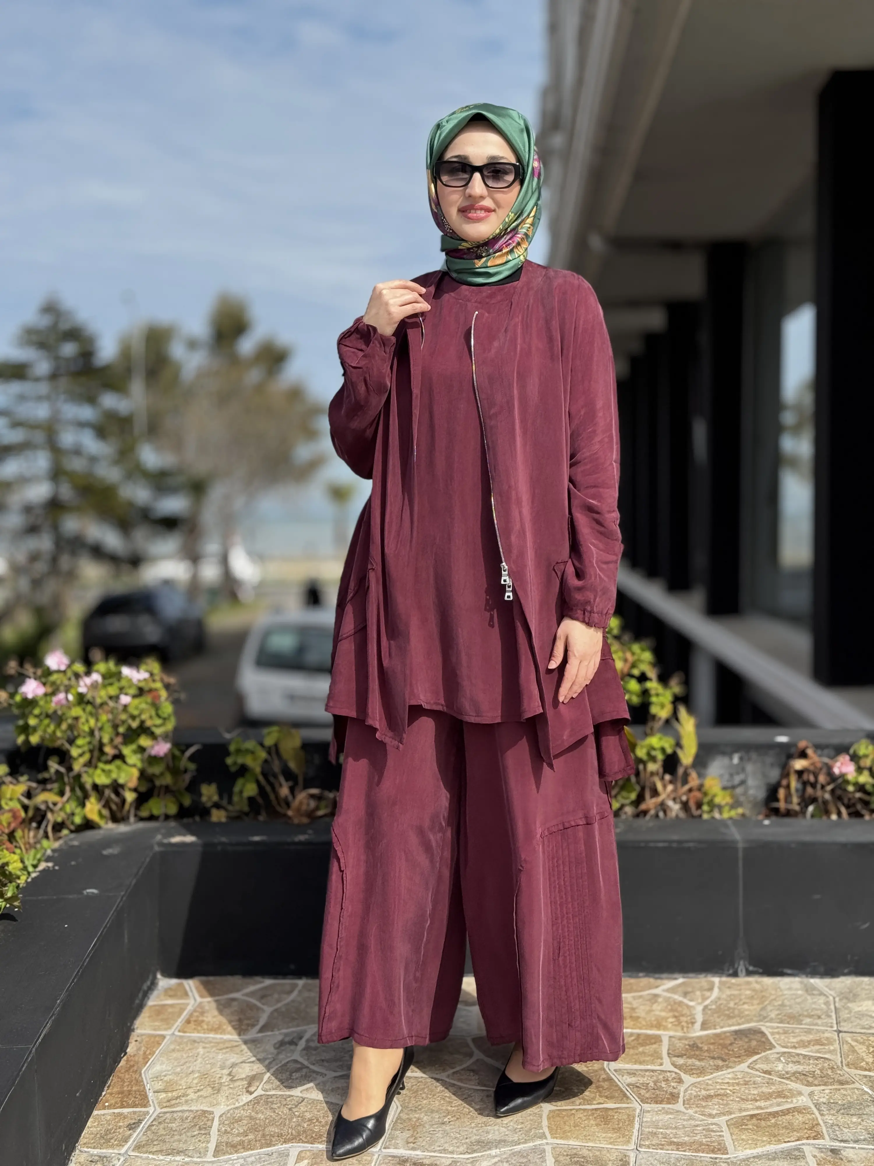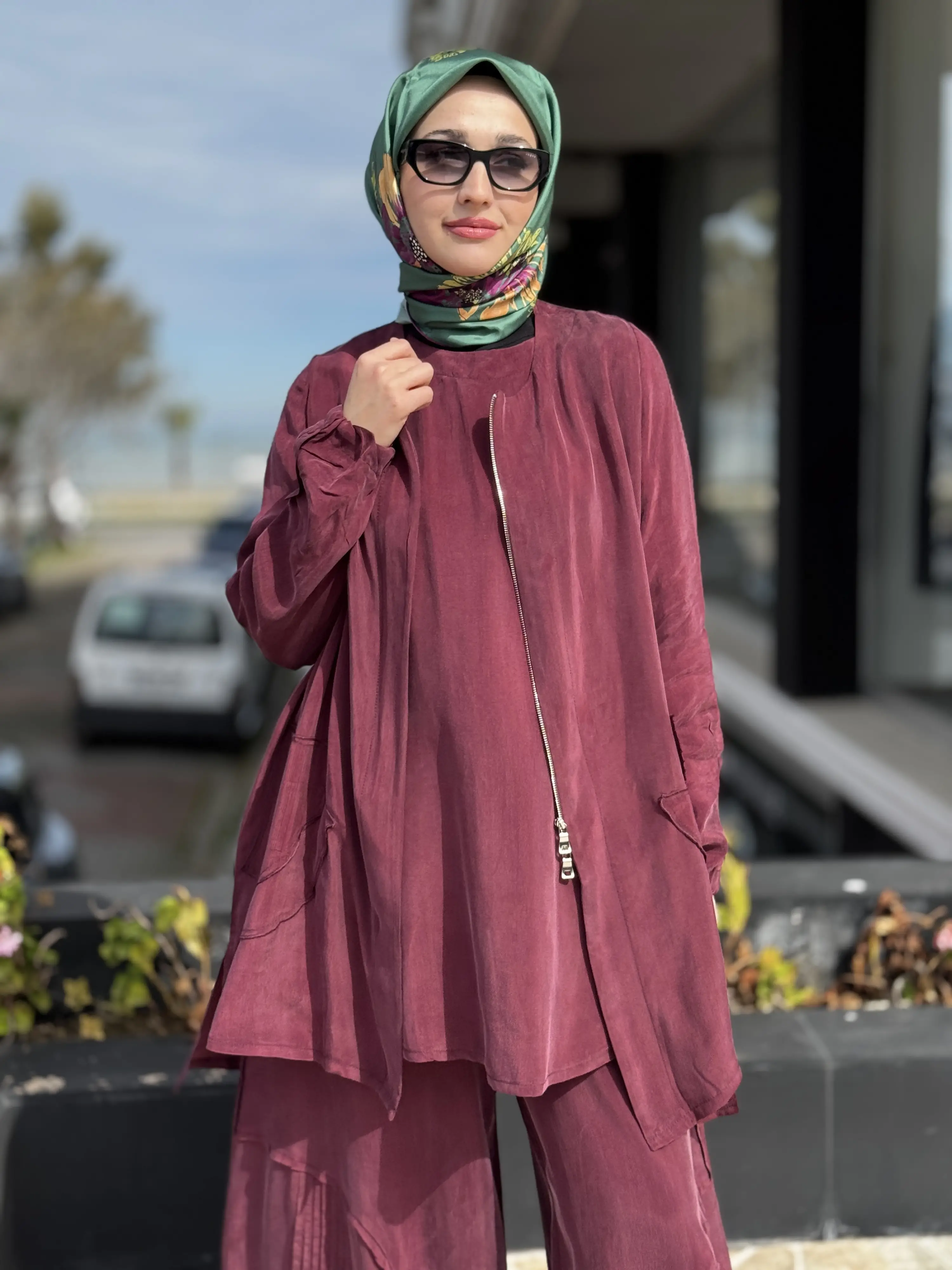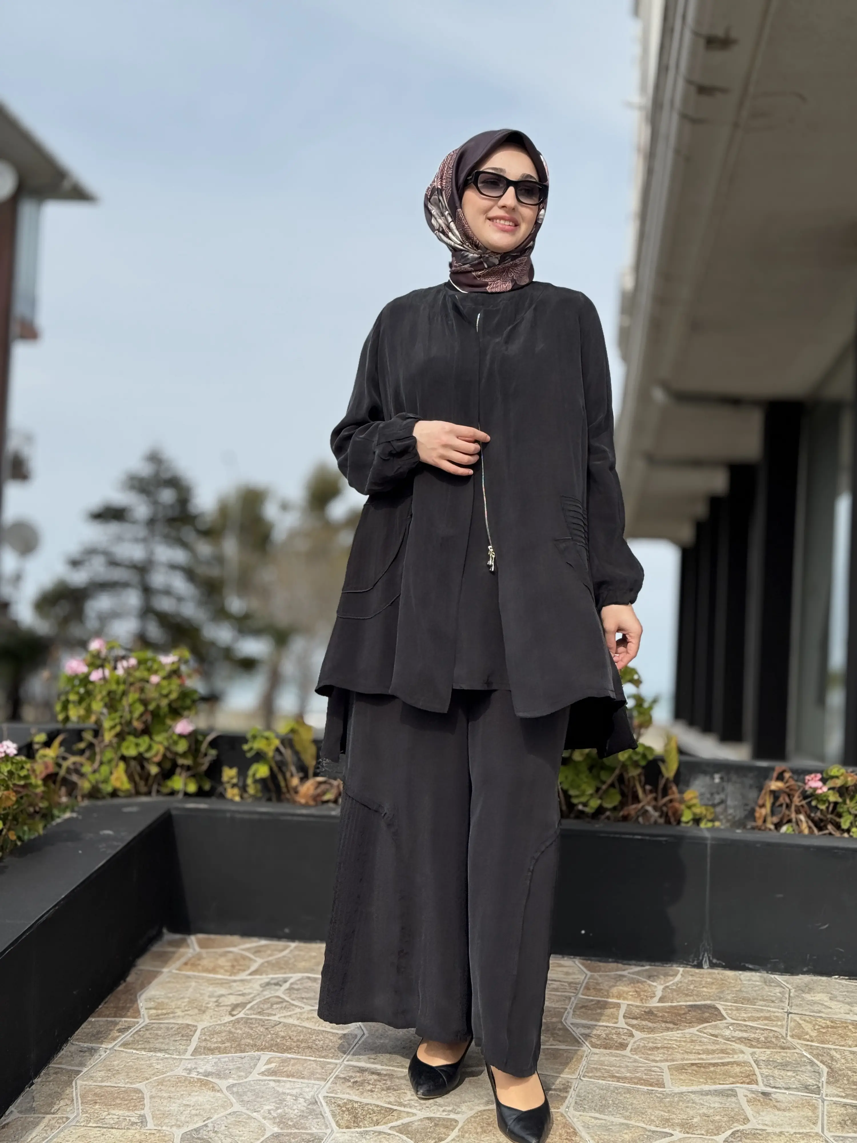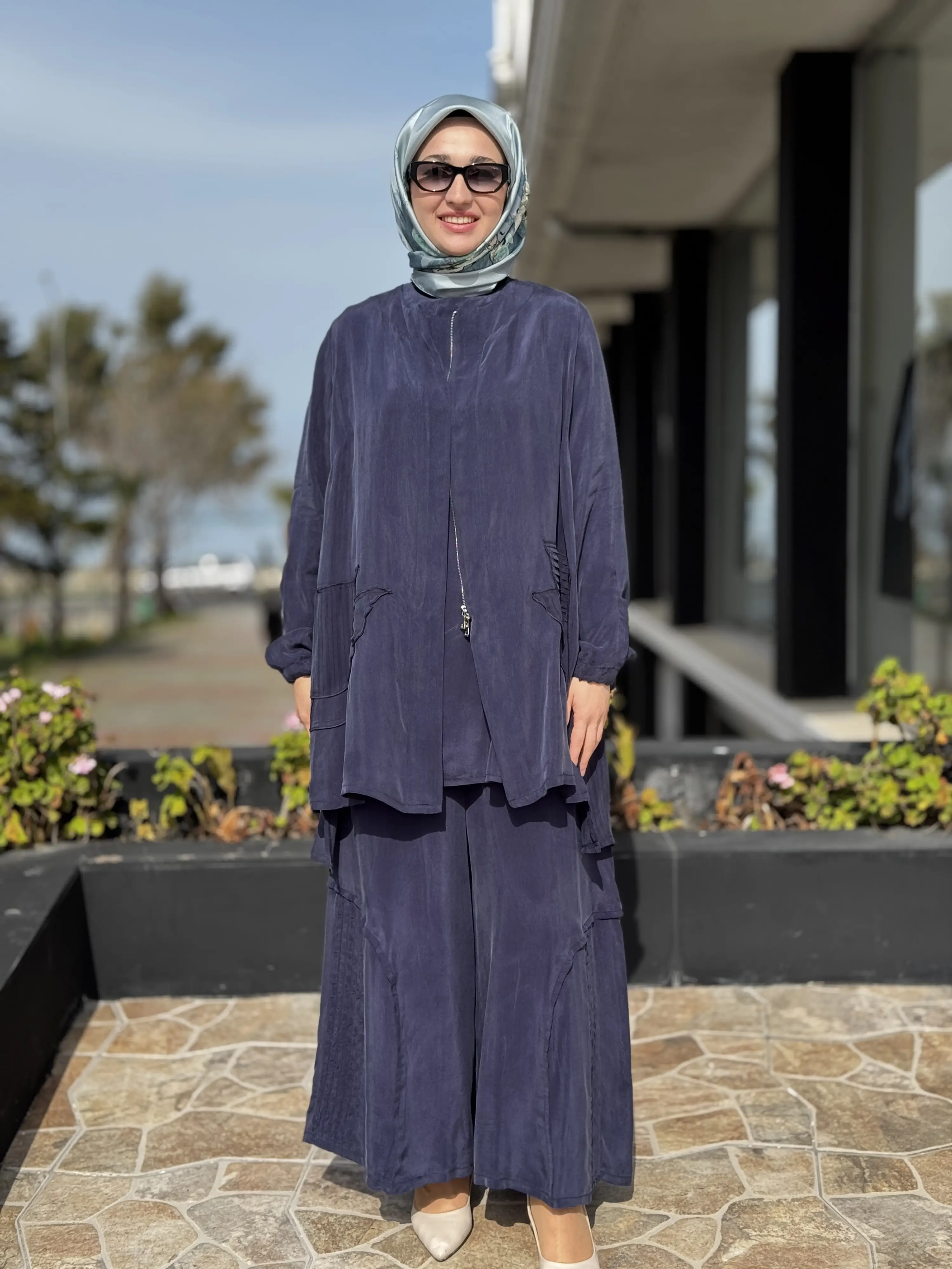 ÜRÜN İPEK ÜÇLÜ CEKET TUNİK PANTOLON TAKIMDIR