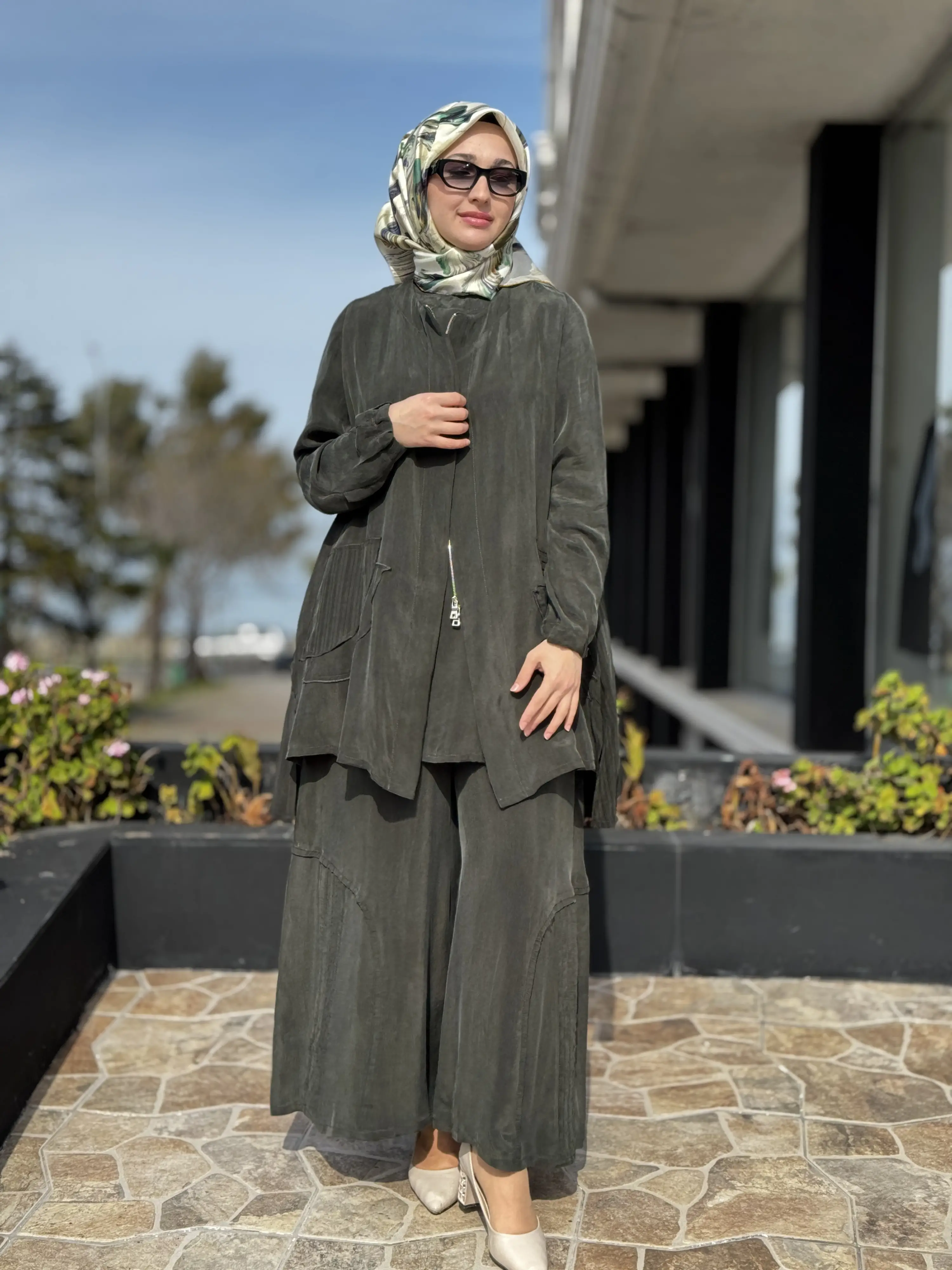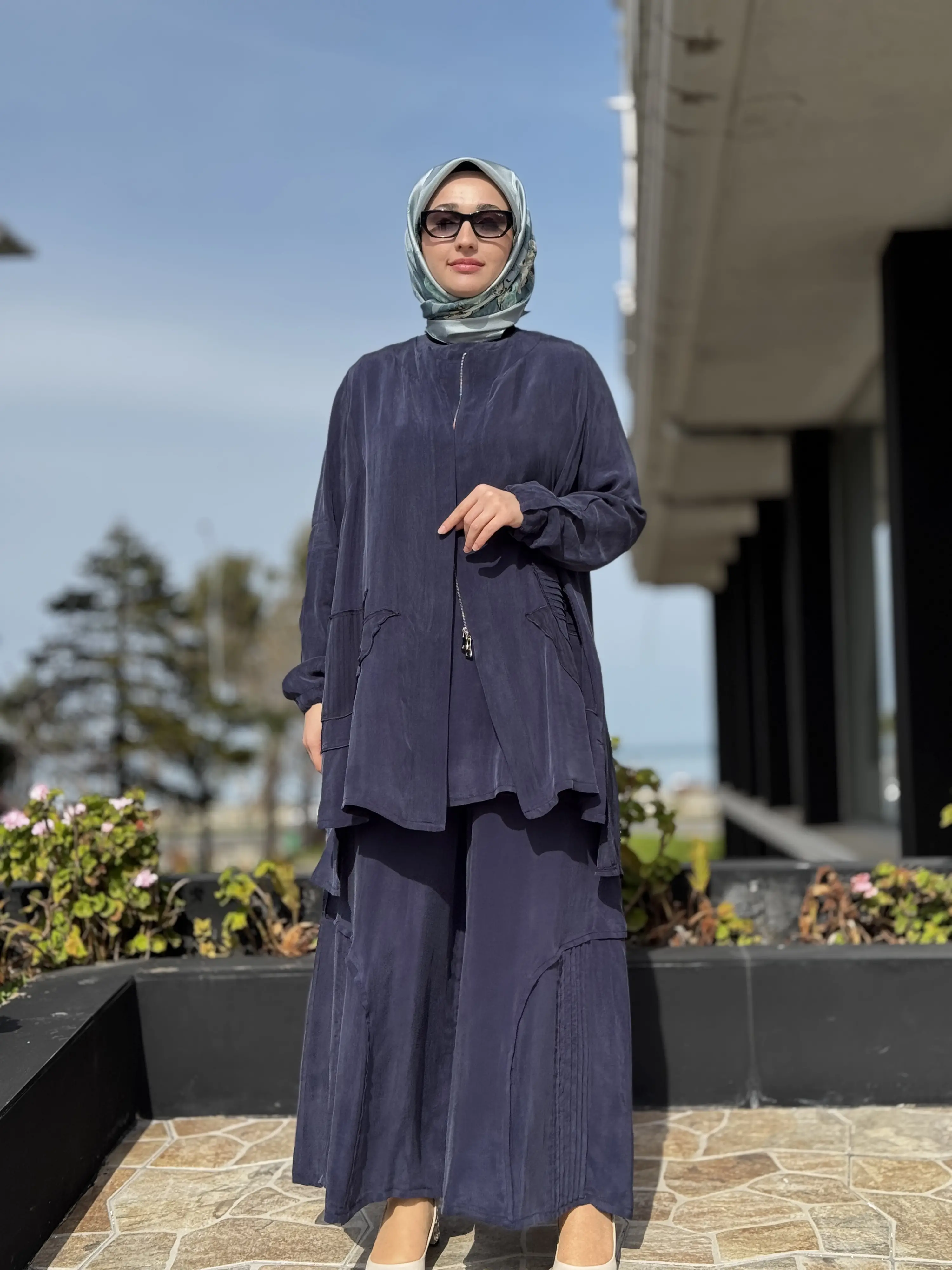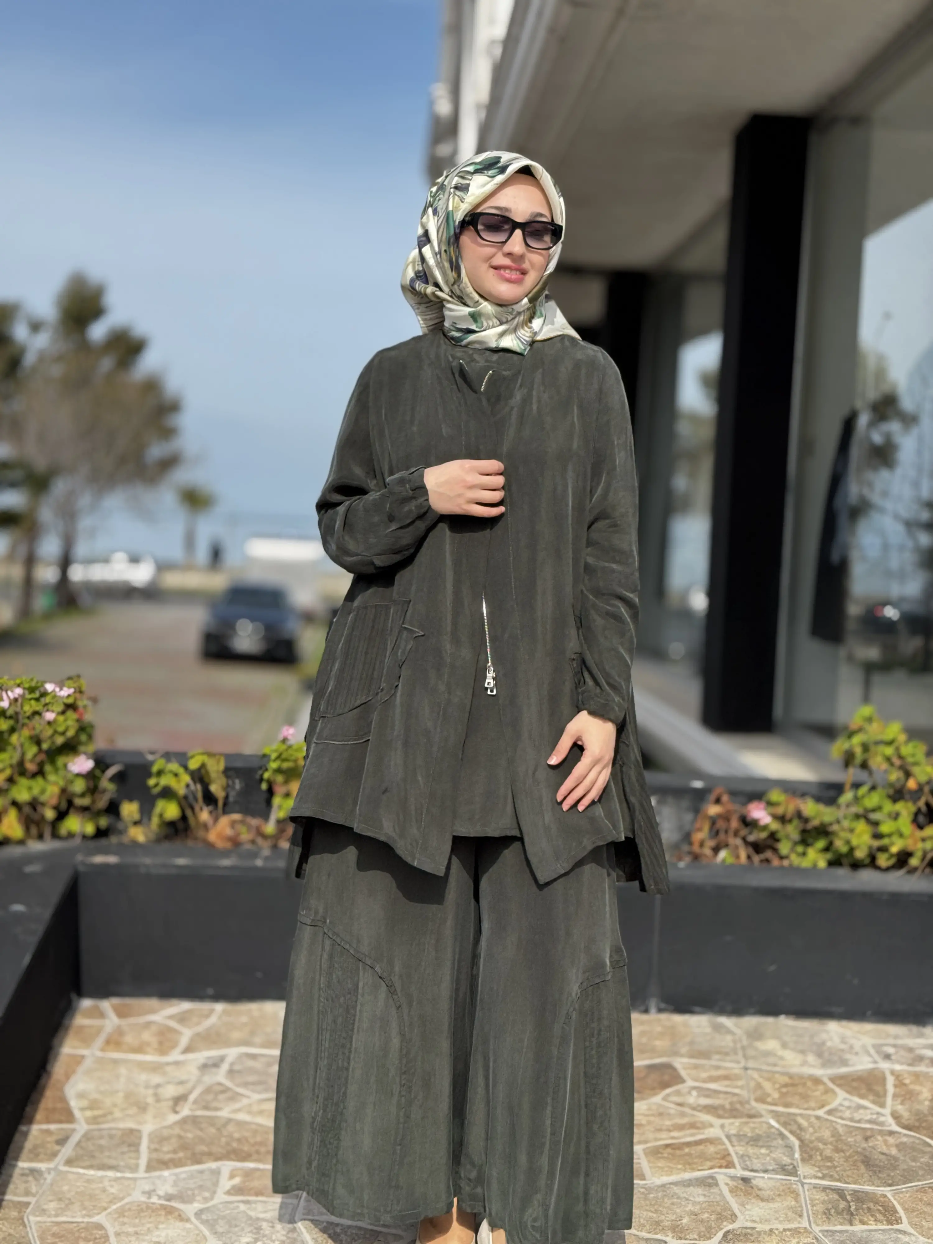 ÜRÜN İPEK ÜÇLÜ CEKET TUNİK PANTOLON TAKIMDIR