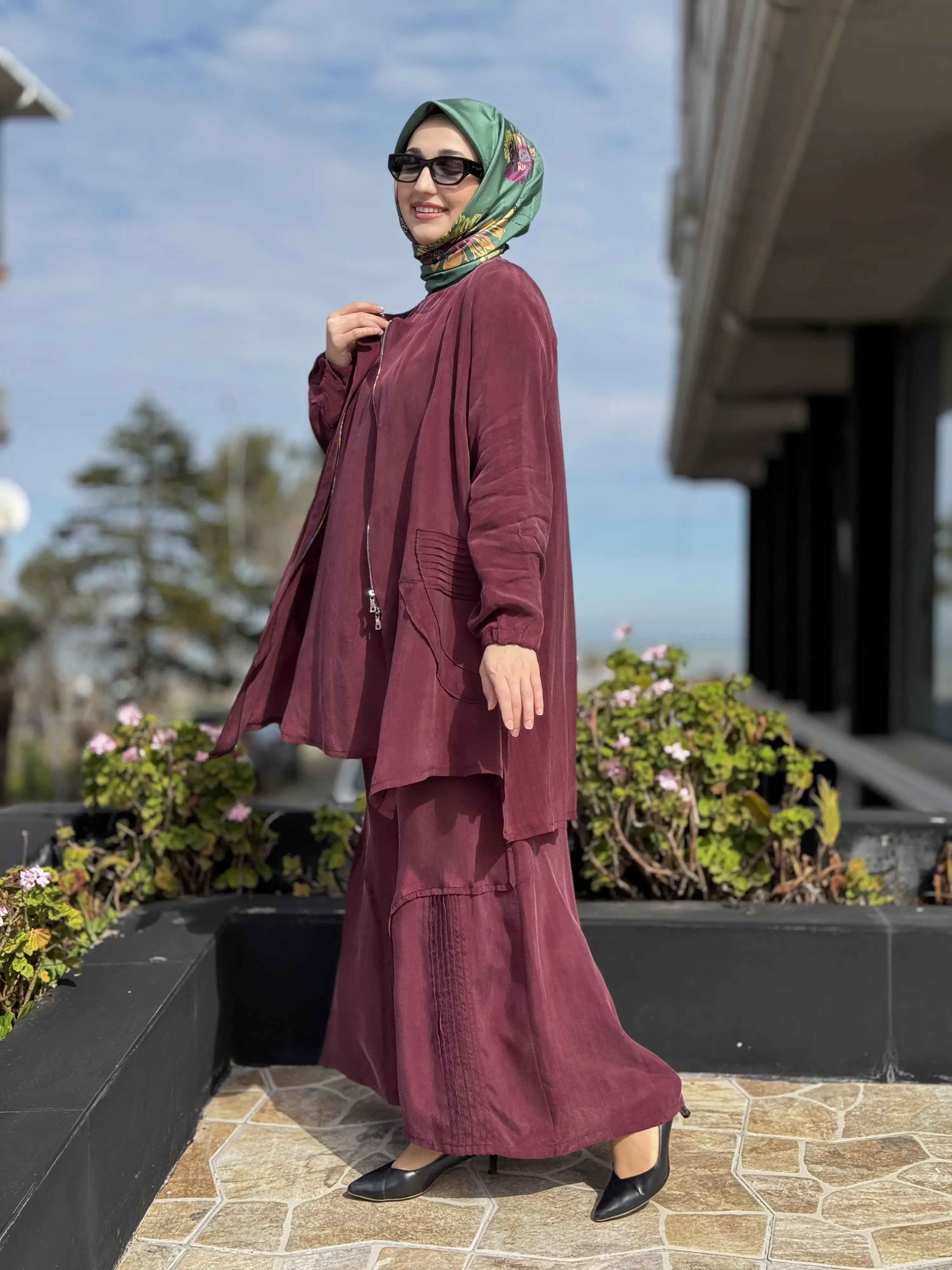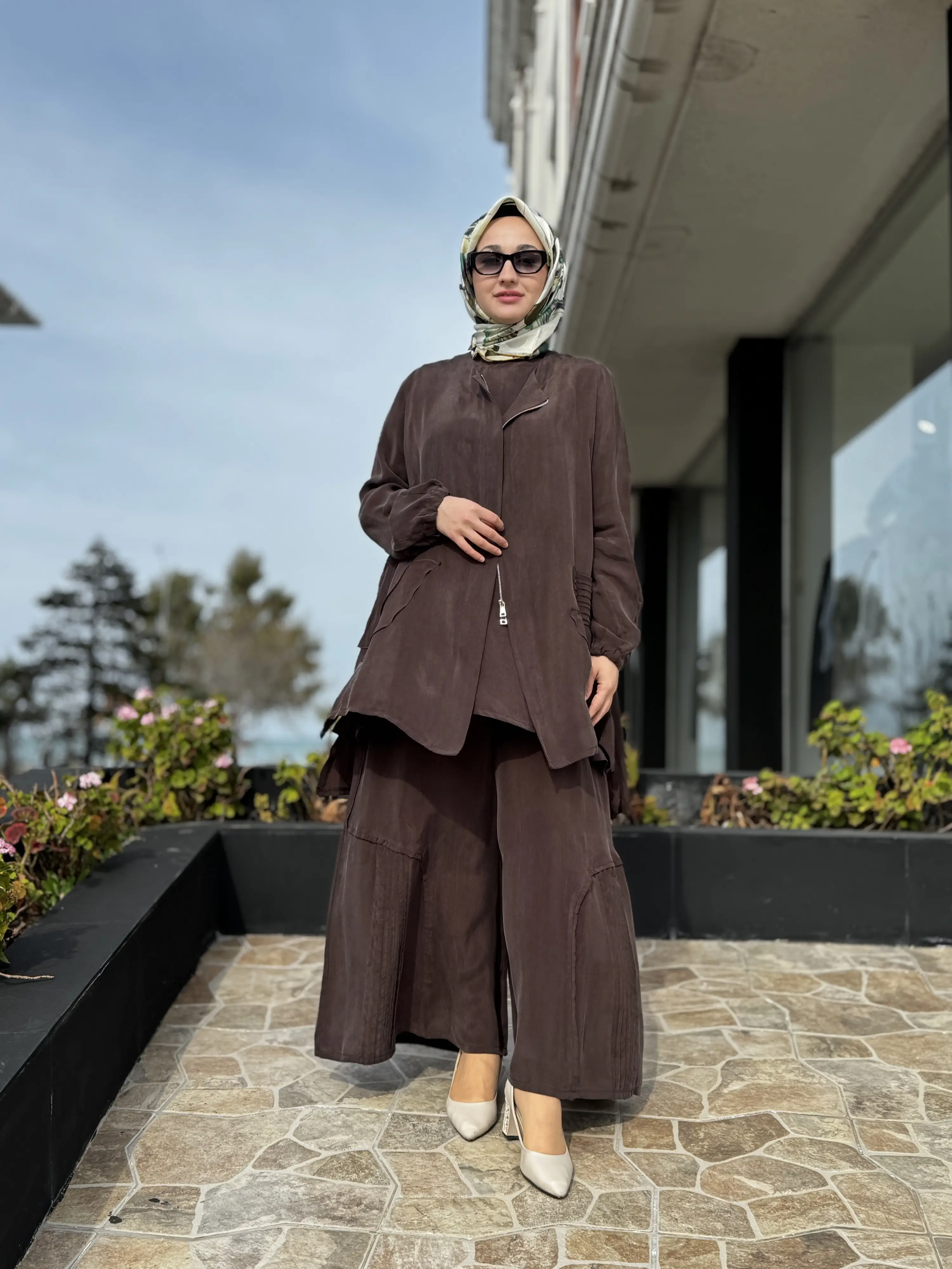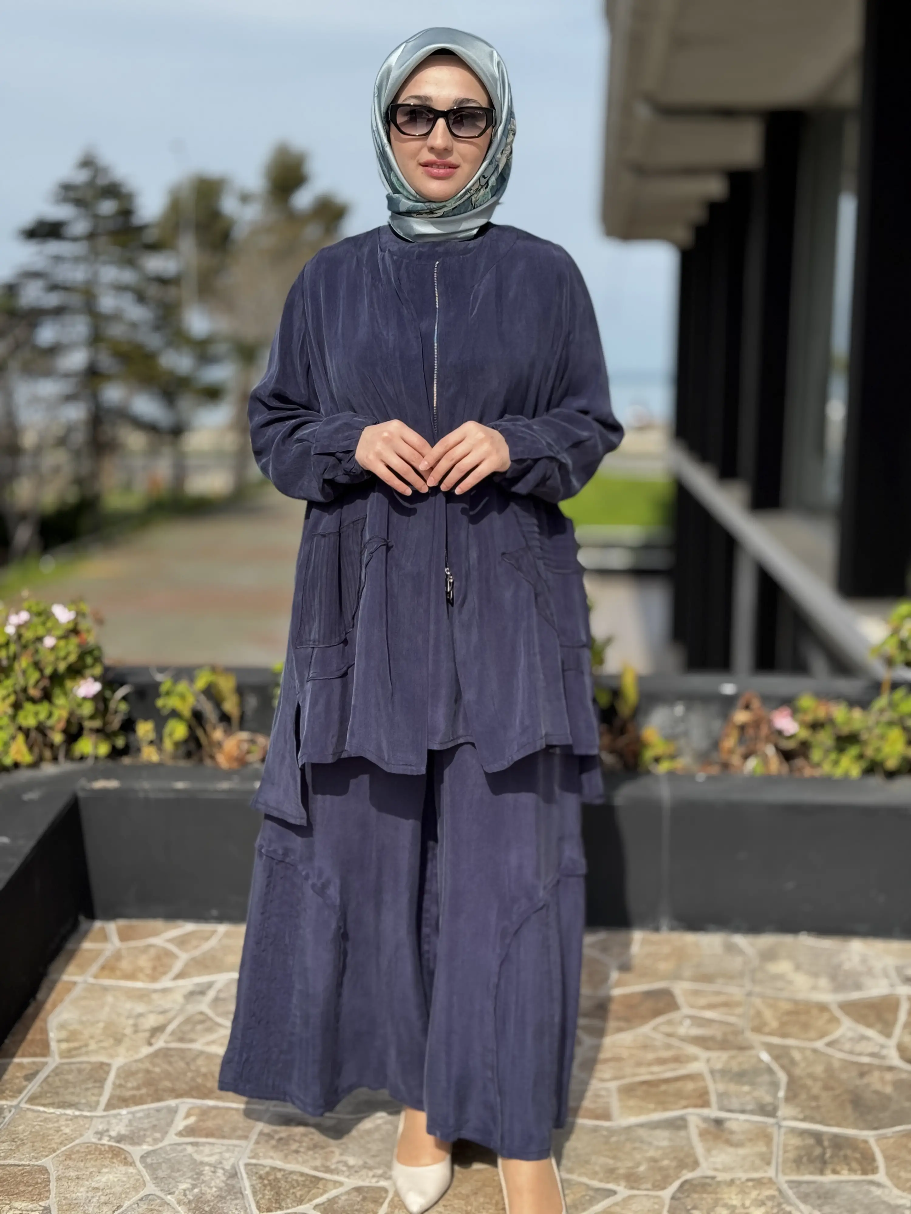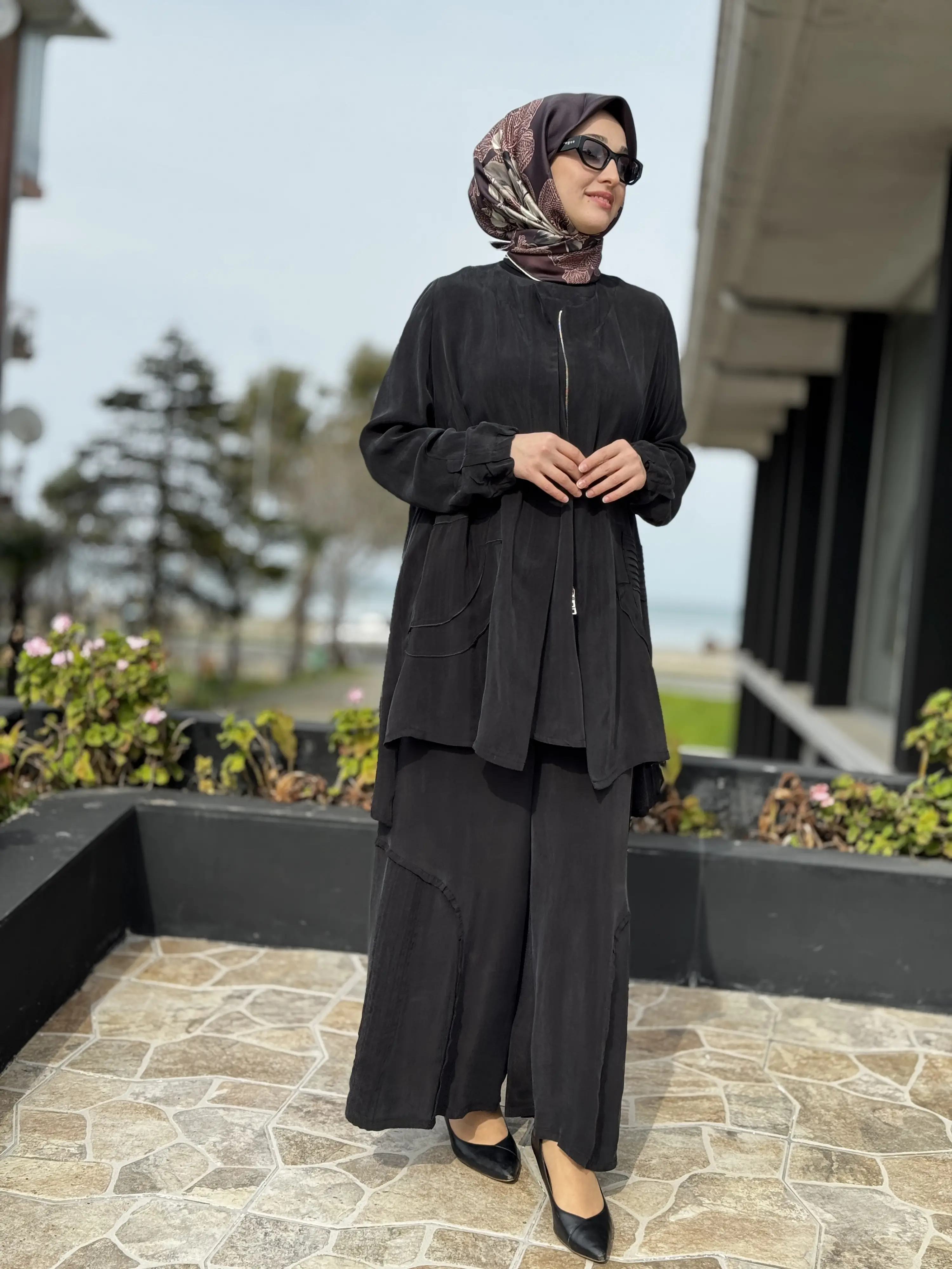 ÜRÜN İPEK ÜÇLÜ CEKET TUNİK PANTOLON TAKIMDIR
